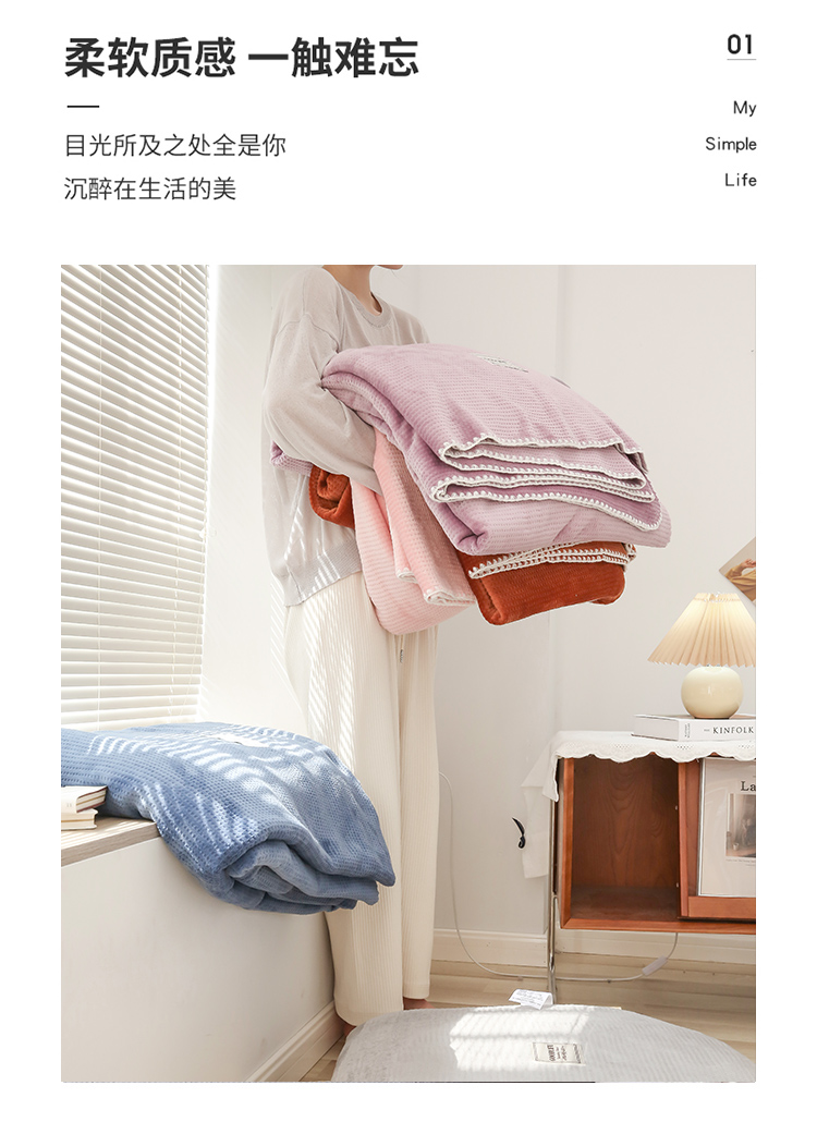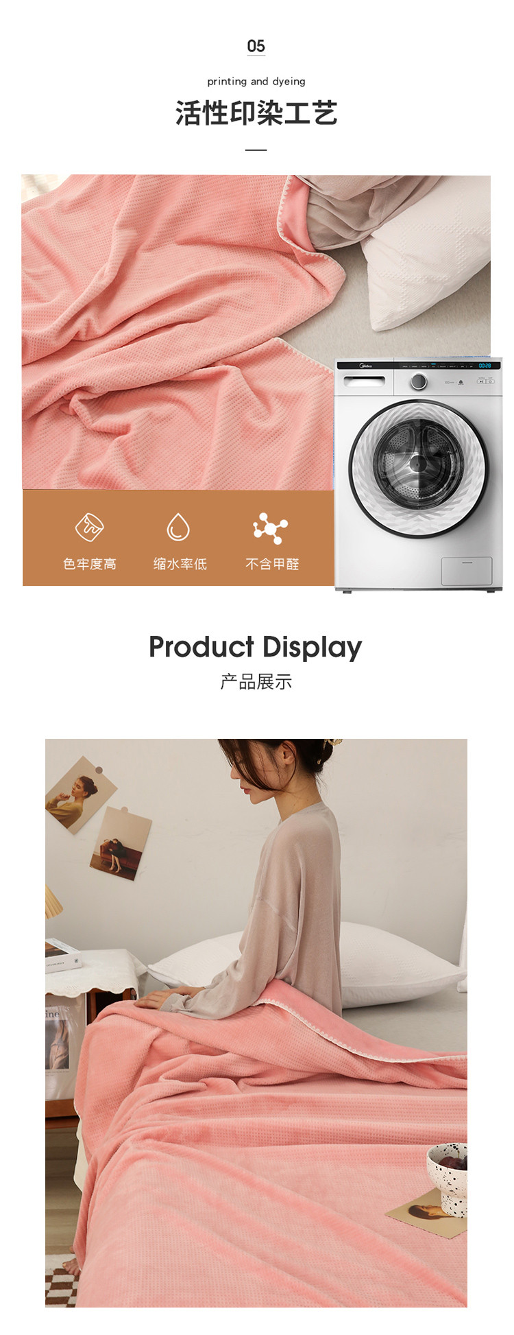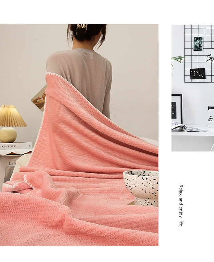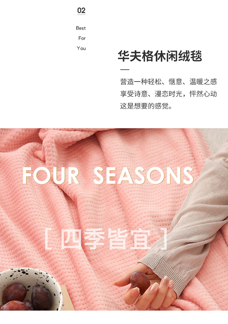 绫韵家纺 牛奶绒双层复合盖毯华夫格毛毯子绒毯休闲毯多功能 蜜糖粉