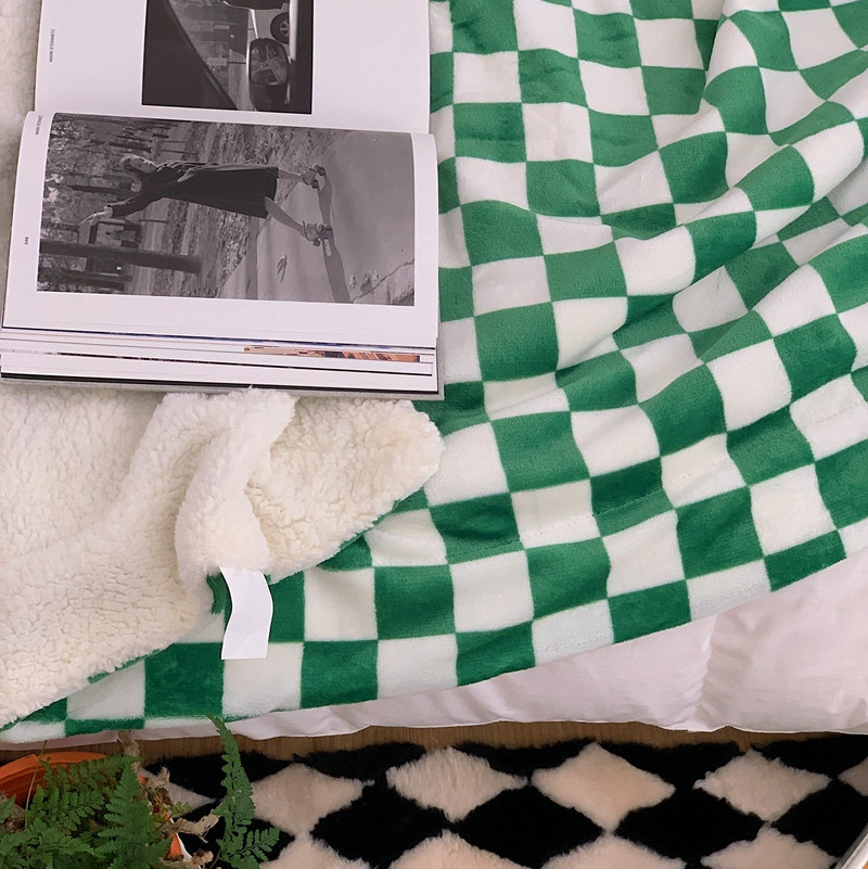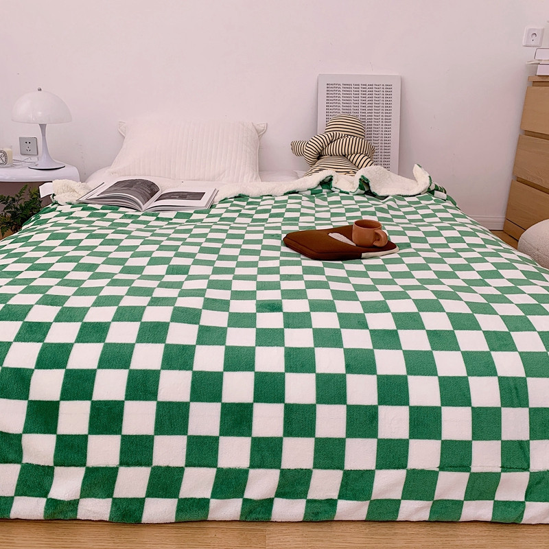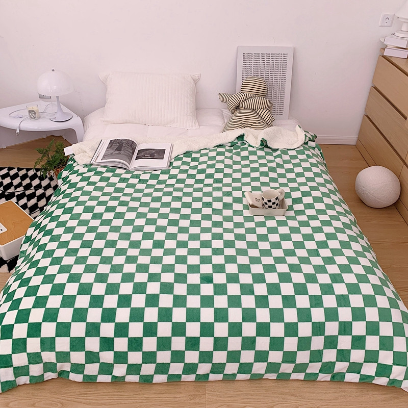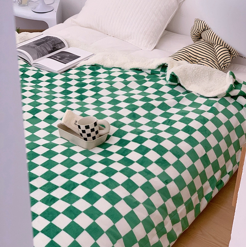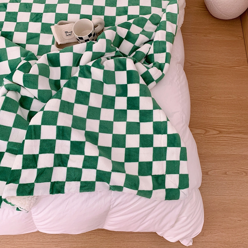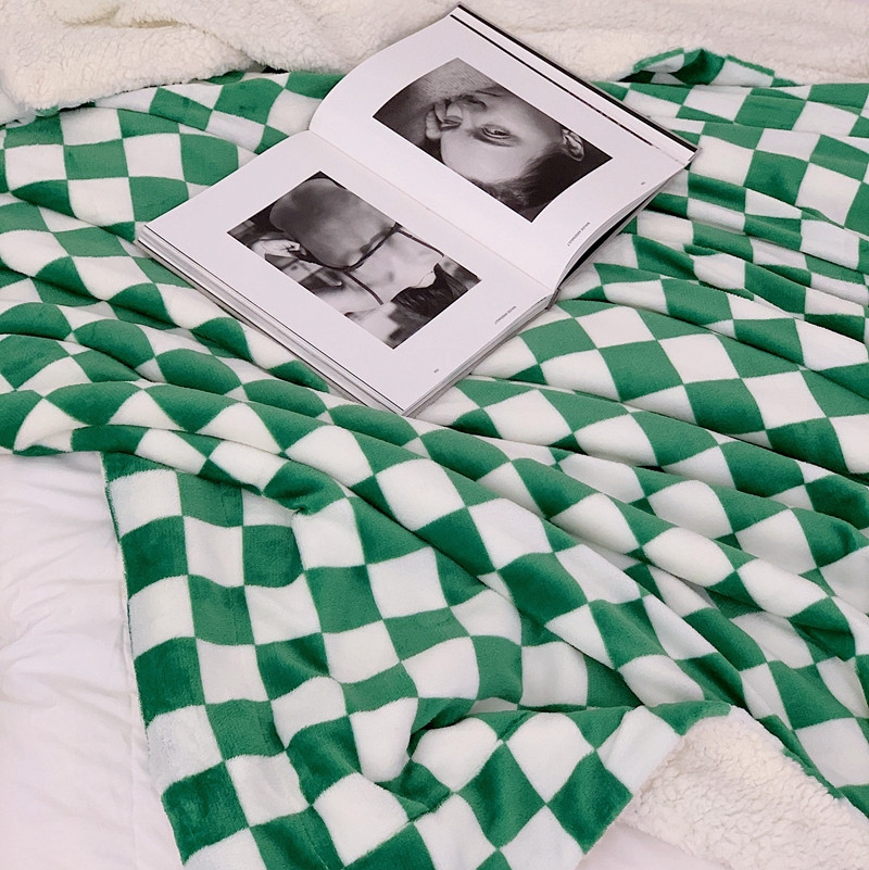 昔可家纺 2021新款牛奶羊羔绒印花毛毯 棋盘格-绿色