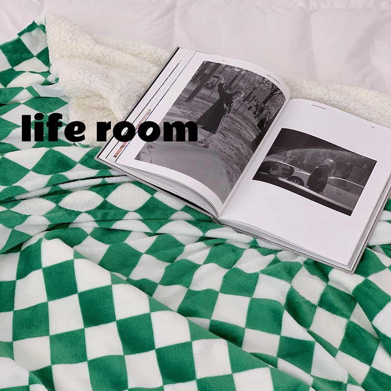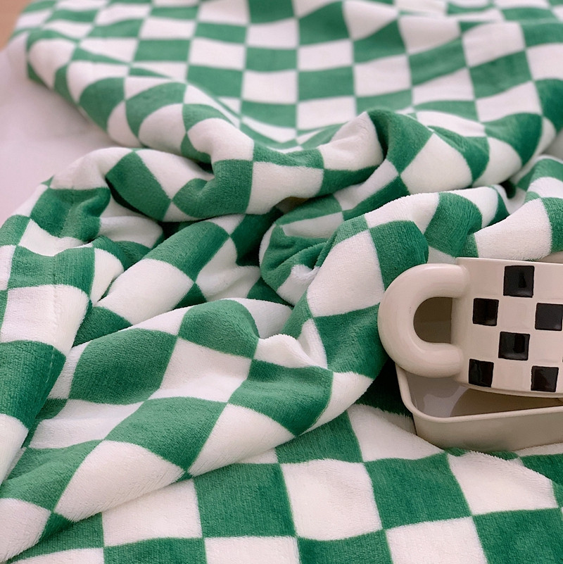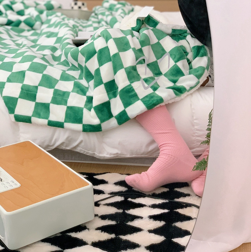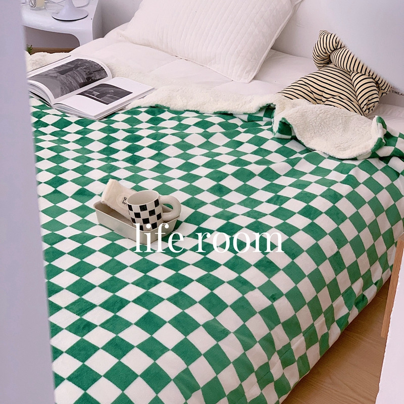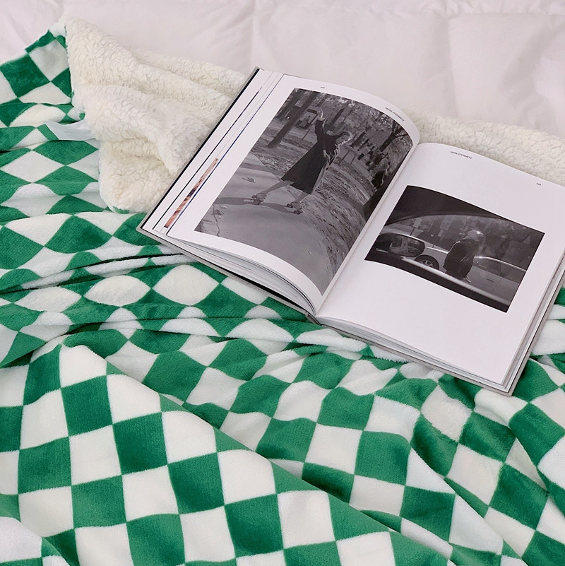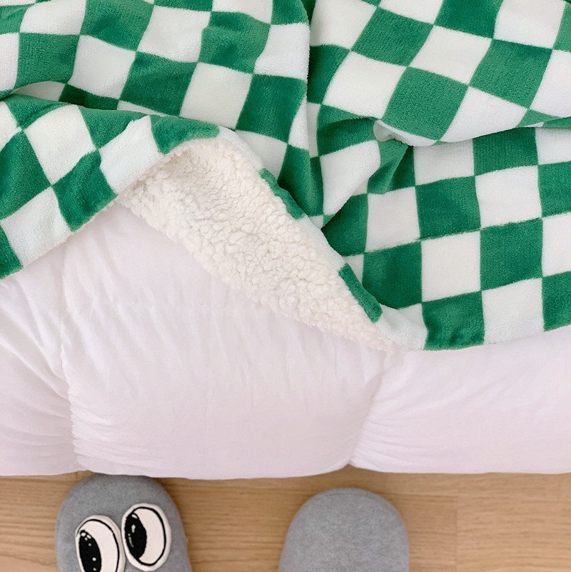昔可家纺 2021新款牛奶羊羔绒印花毛毯 棋盘格-绿色