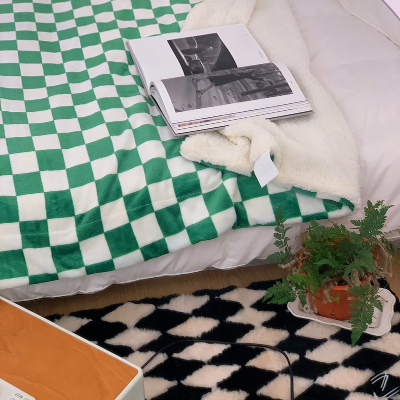 商品名称:昔可家纺 2021新款牛奶羊羔绒印花毛毯 棋盘格-绿色
