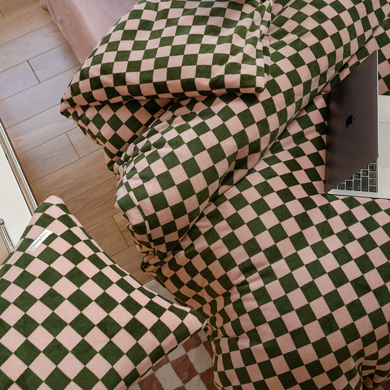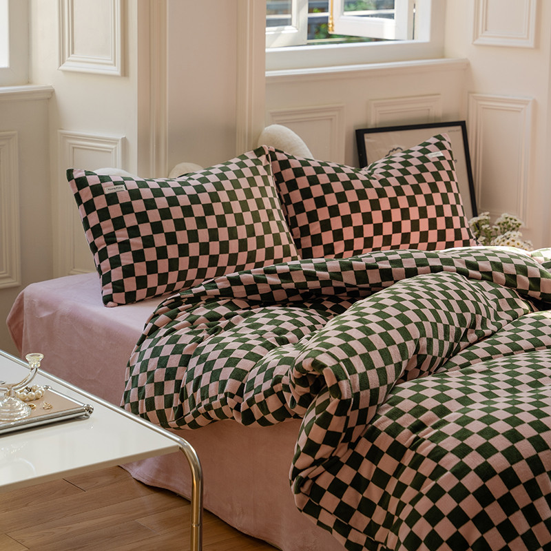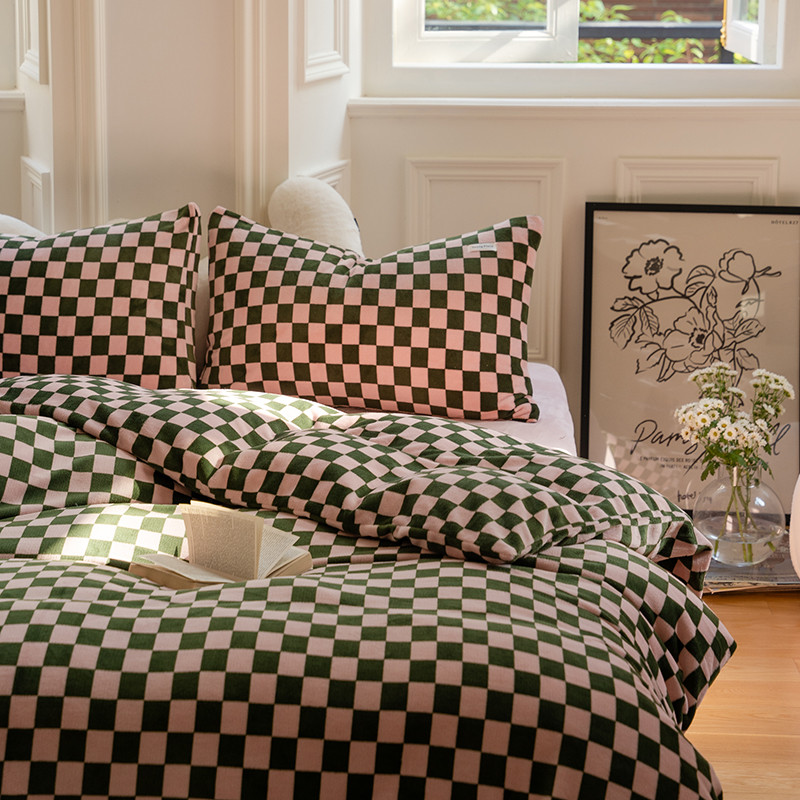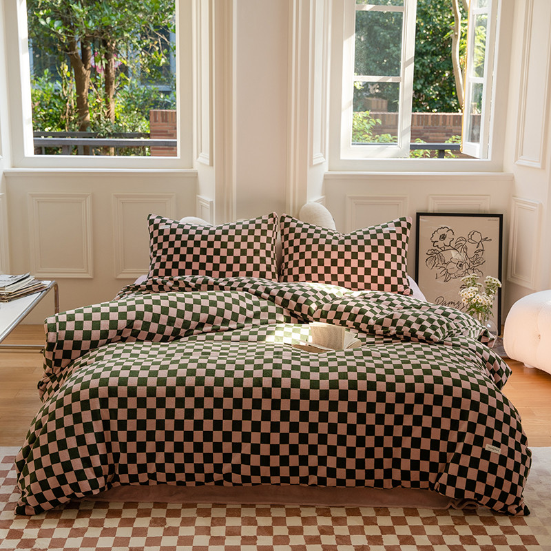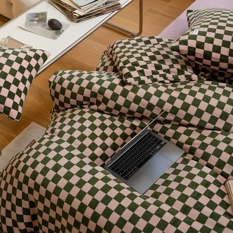 洋铭区 2022新款双色棋盘格四件套 庄园咖格