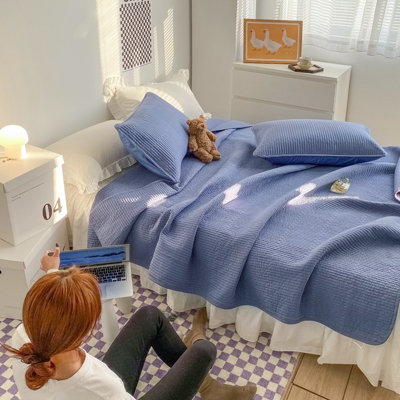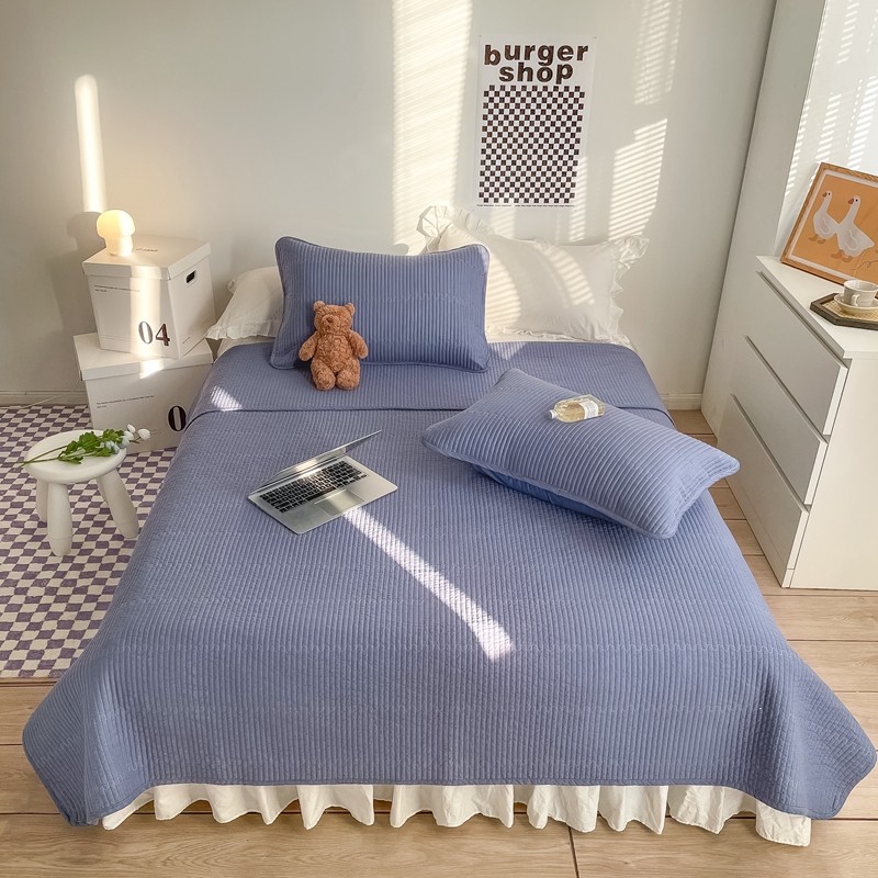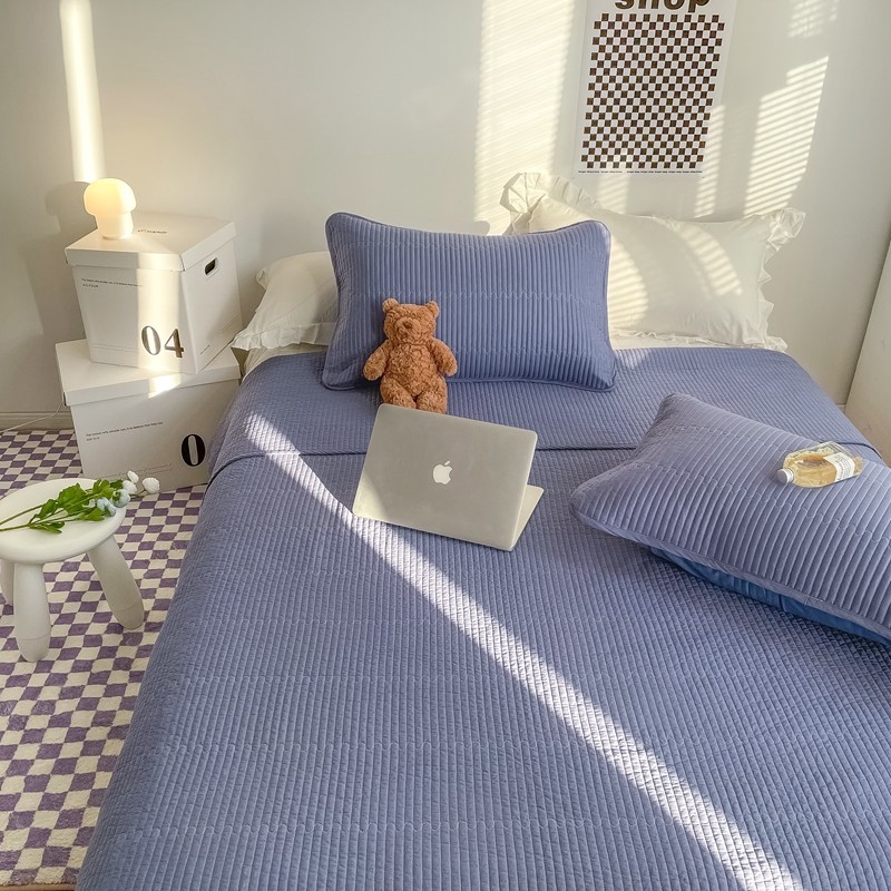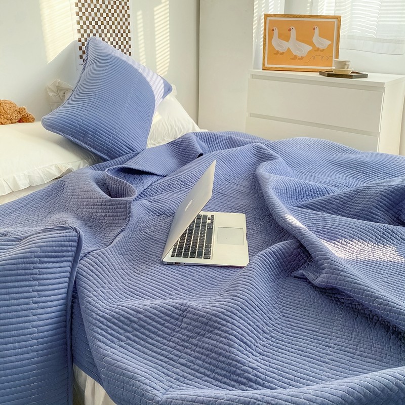 茉夕家纺 2022新款纯色床盖 宾利蓝