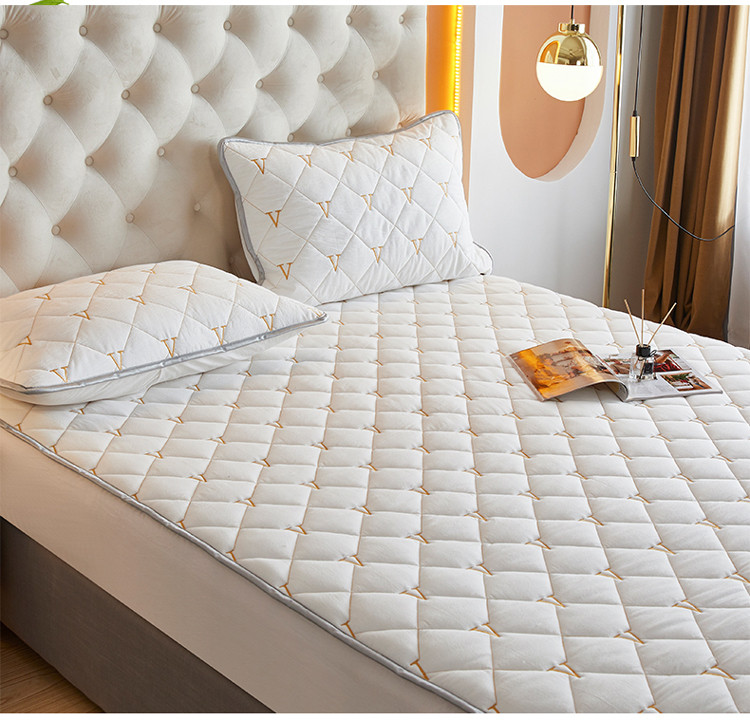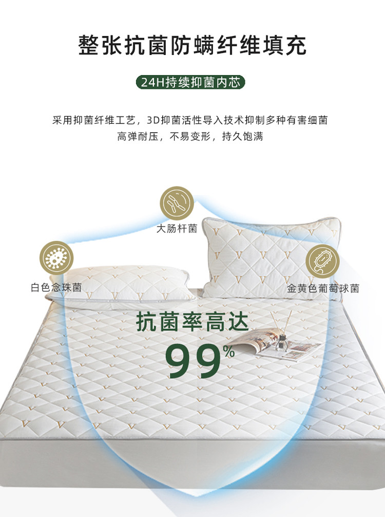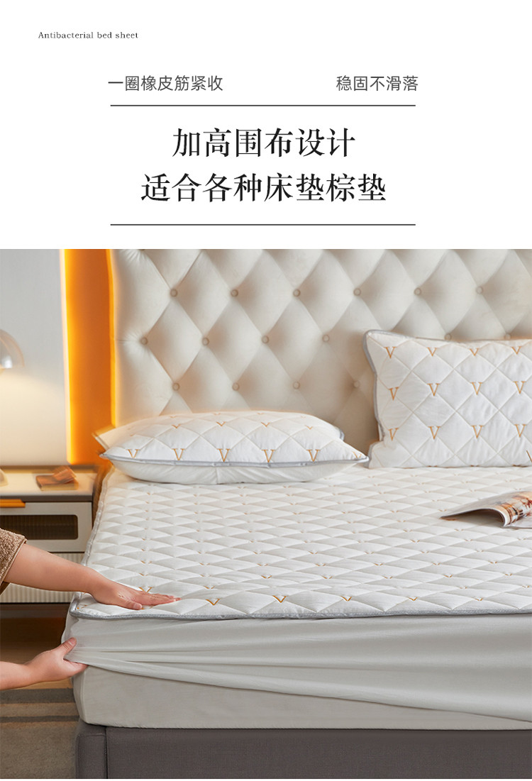 商品名称:久典 2022新款A类全棉色织水洗棉刺绣抗菌防螨夹棉床笠 纯白