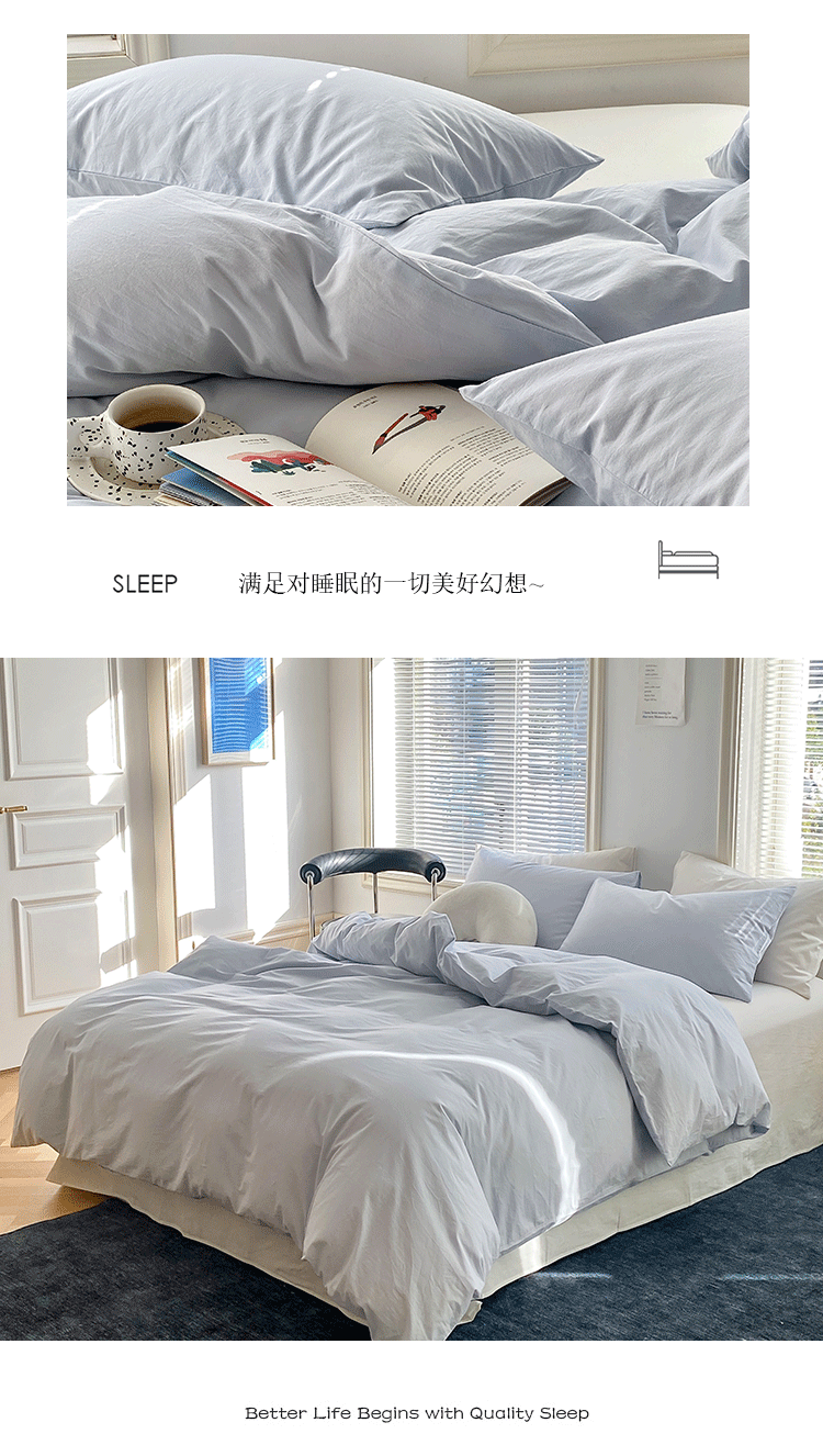 北欧风ins纯棉水洗棉床四件套全棉简约被套床单上三件套床笠