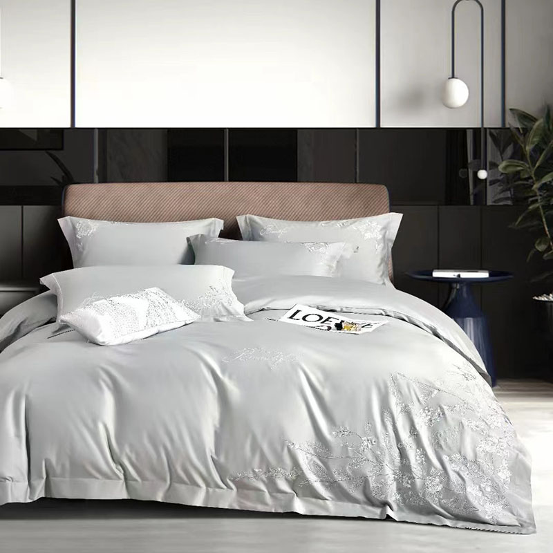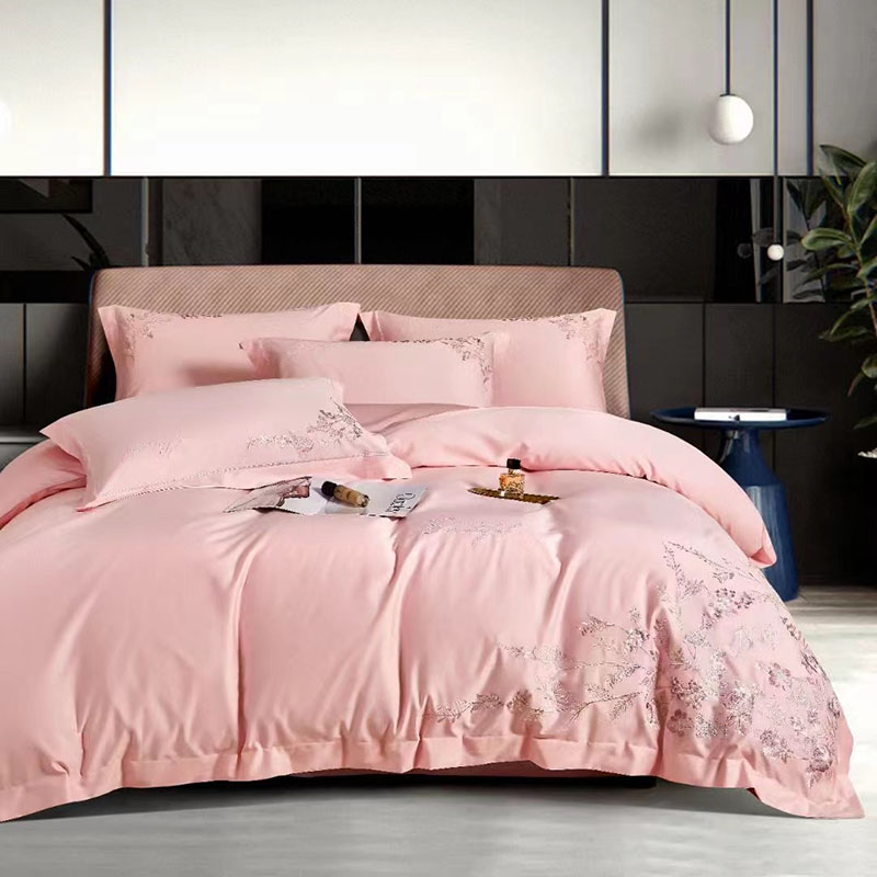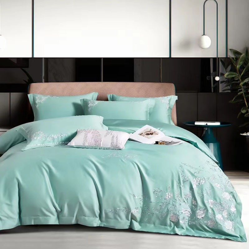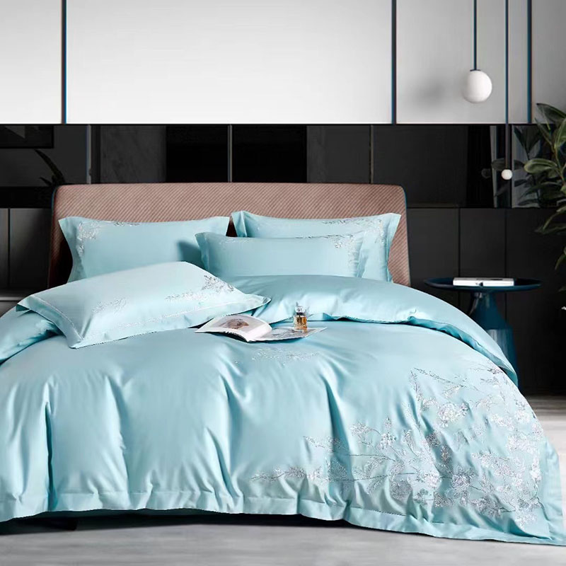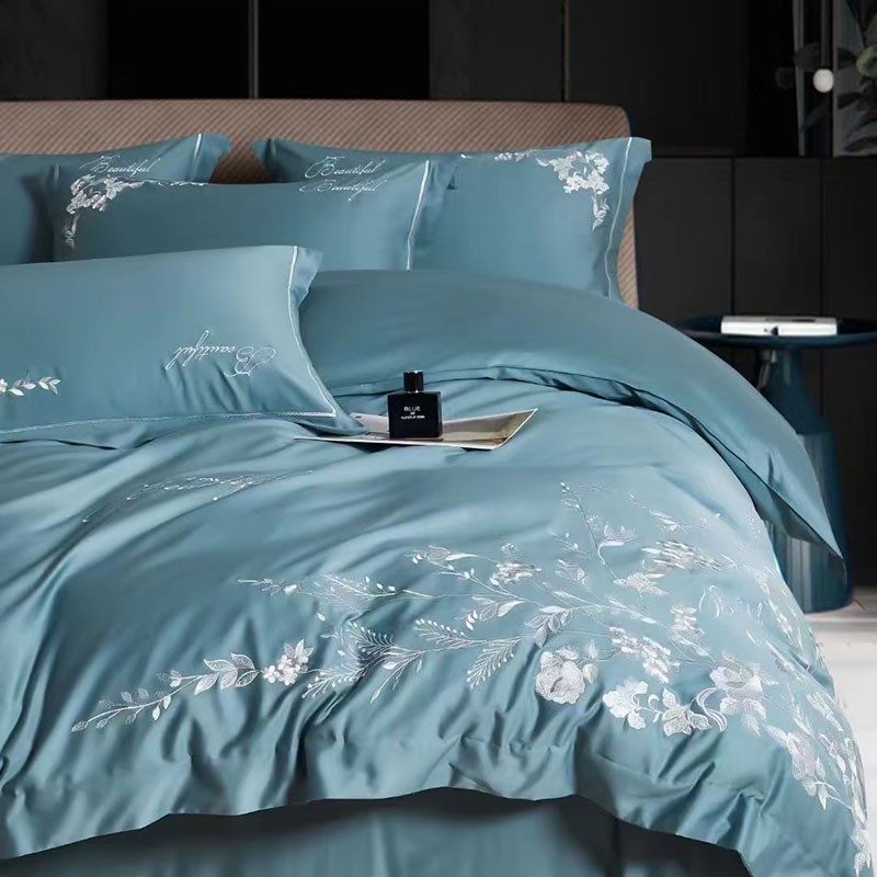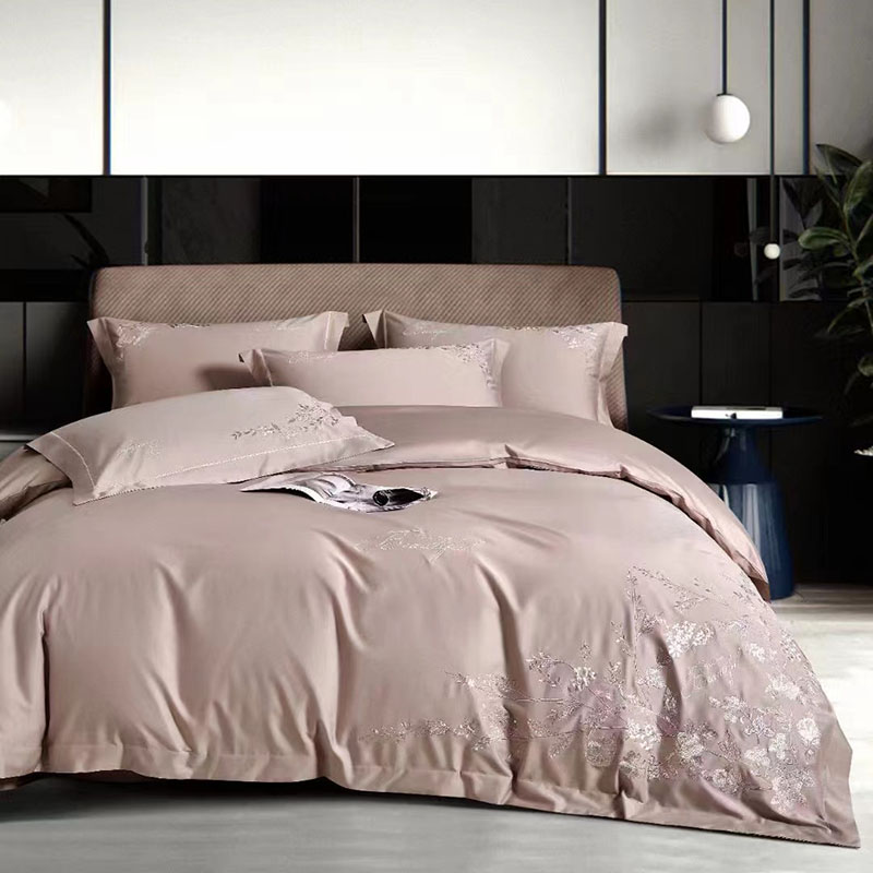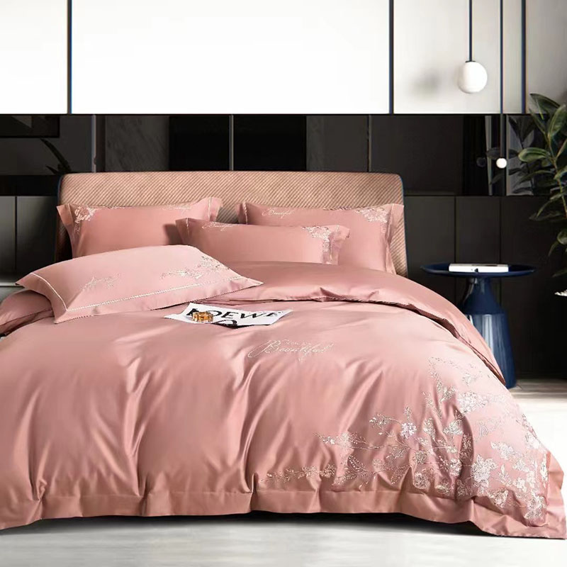 (总)玖玖爱家纺 2023新款120支贡缎长绒棉刺绣梦柔系列四件套,梦柔-香槟金,梦柔-香橙桔,梦柔-高级灰,梦柔-水蓝,梦柔-芙蓉玉
