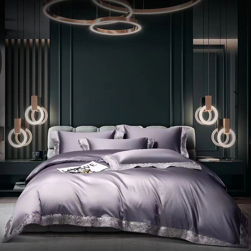 玖玖爱家纺 2022新款奢华160支四件套罗芙卡 罗卡芙紫色