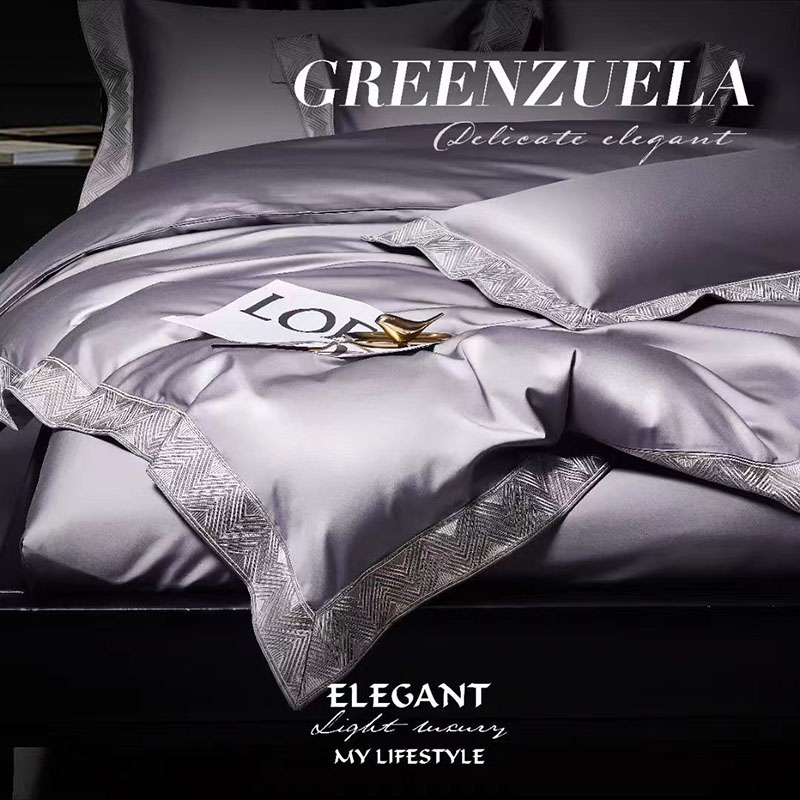 总玖玖爱家纺 纯棉100支贡缎长绒棉刺绣被套三件套四件套加大四件套,白色,高级灰,卡其,蓝灰,绿色,浅桔,深蓝,紫豆沙