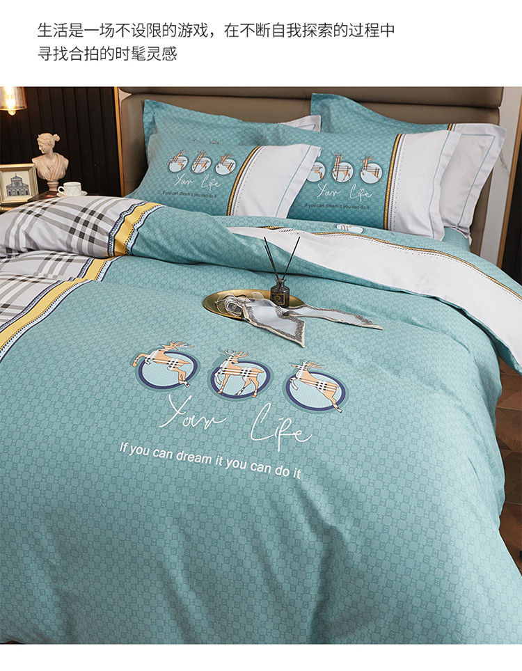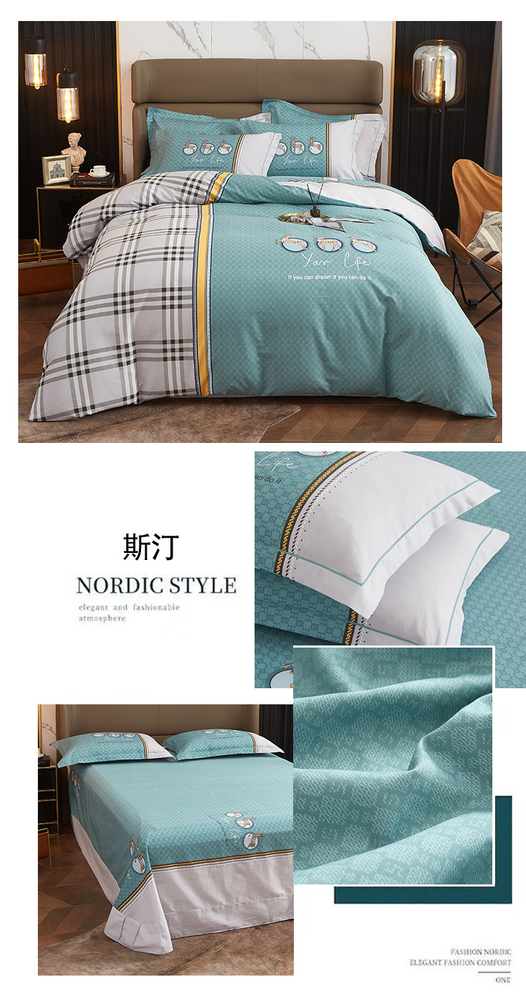 商品名称:金纱玉纺 2022新款全棉大版印花13372四件套 斯汀