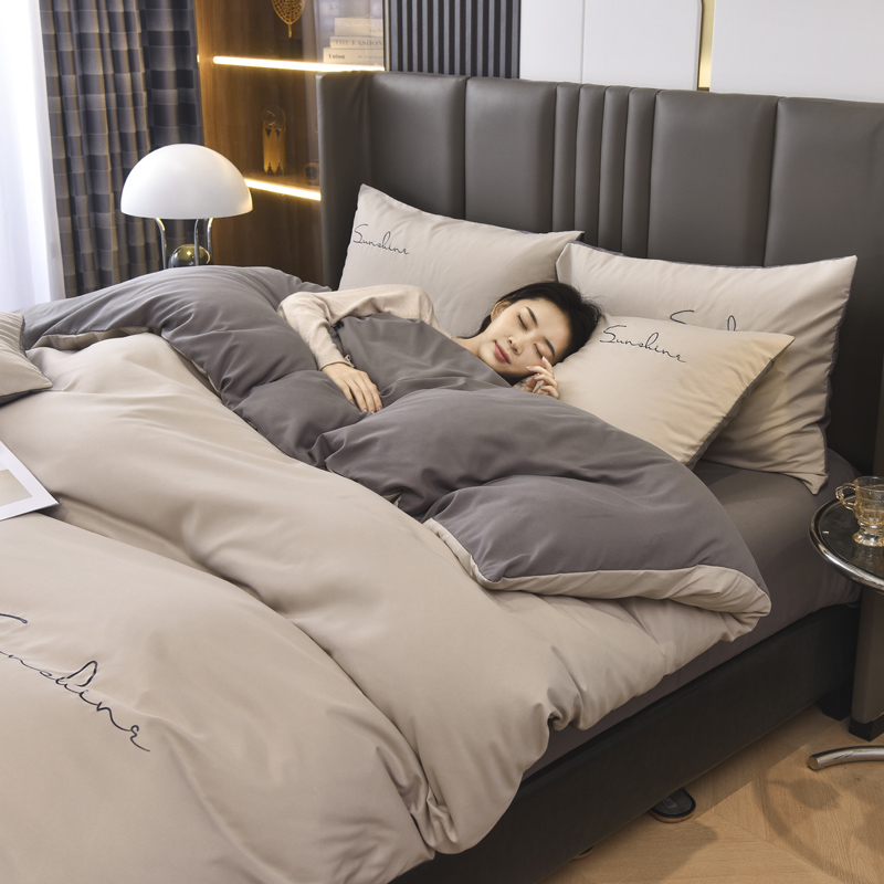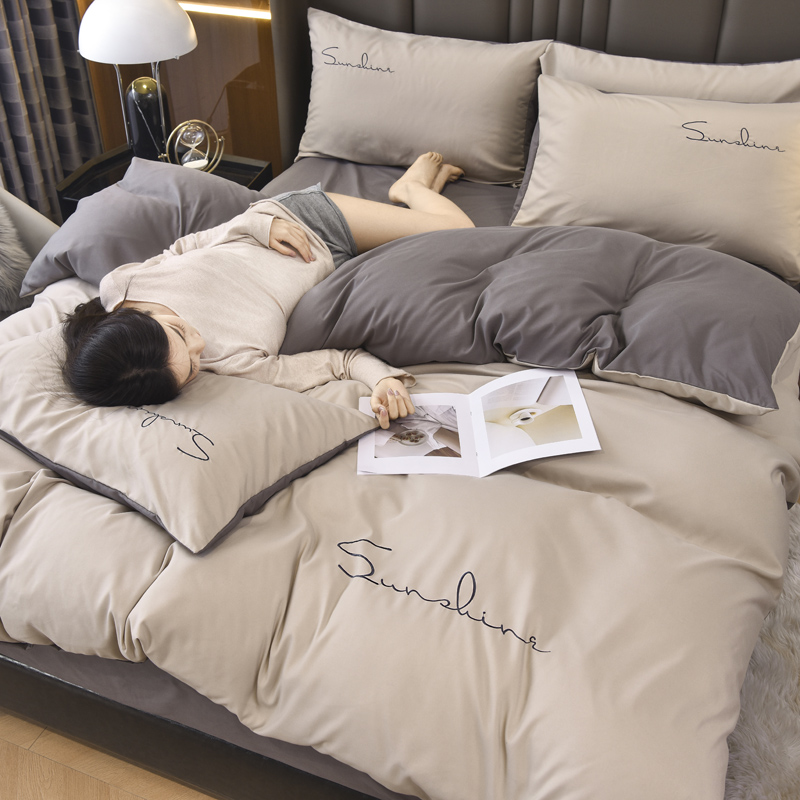 当前位置: 91家纺网 > 商品网购 > 床品套件 > 四件套 > 普通磨毛四件套 > 七仙女家纺 2025新款亲肤磨毛绣花款四件套直播供货 奶茶+浅灰