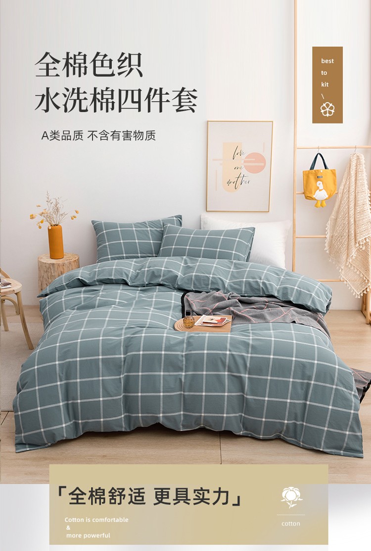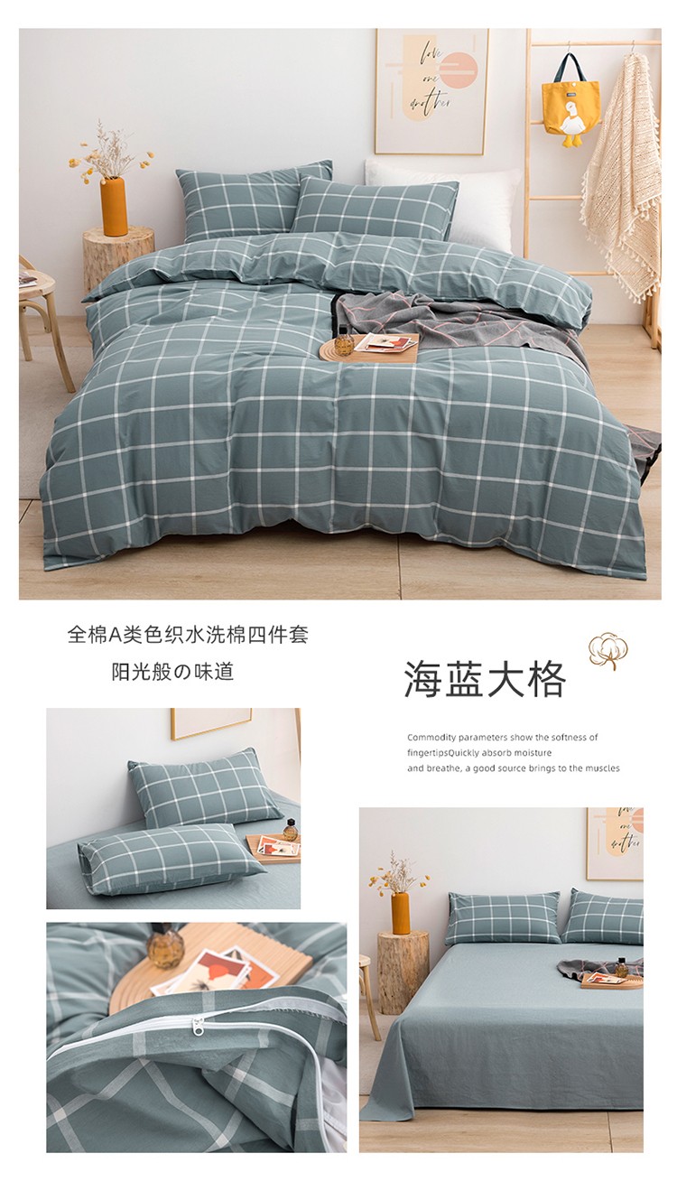 当前位置: 91家纺网 > 商品网购 > 床品套件 > 四件套 > 水洗棉四件套 > 柠萌家居 2022新款无印良品全棉色织水洗棉四件套 海蓝大格
