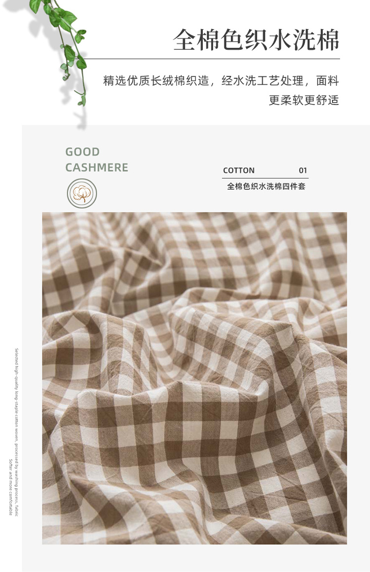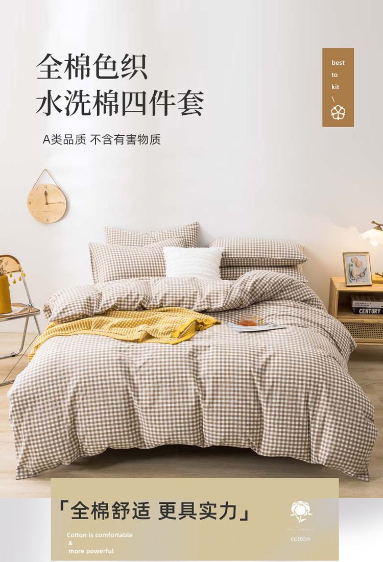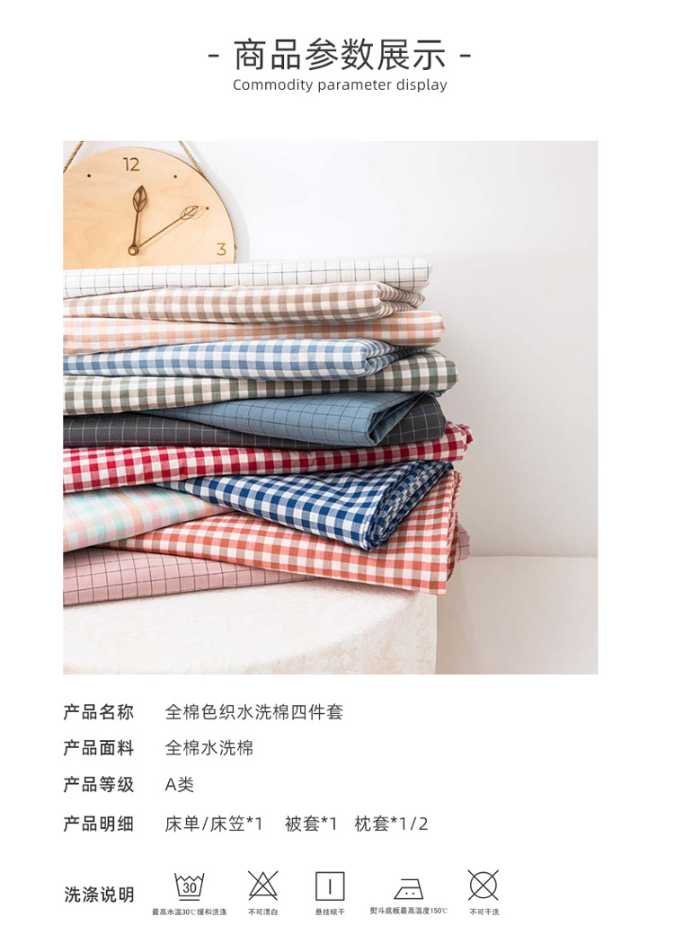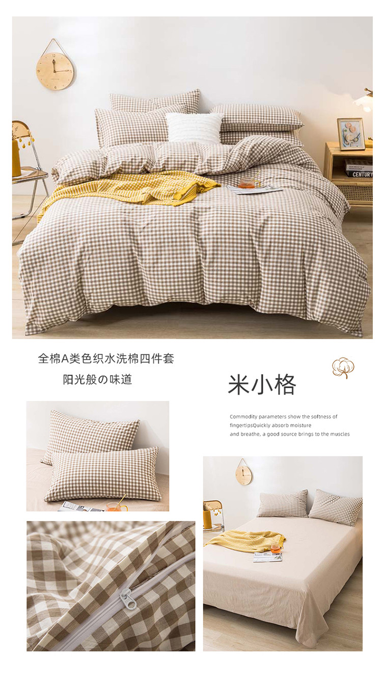 当前位置: 91家纺网 > 商品网购 > 床品套件 > 四件套 > 水洗棉四件套 > 柠萌家居 2022年新款无印良品全棉色织水洗棉四件套 米小格