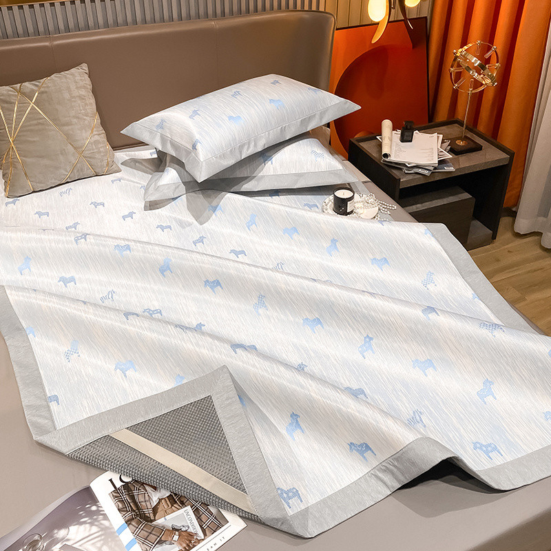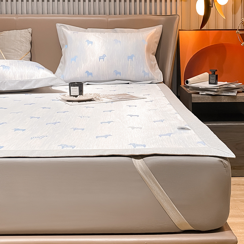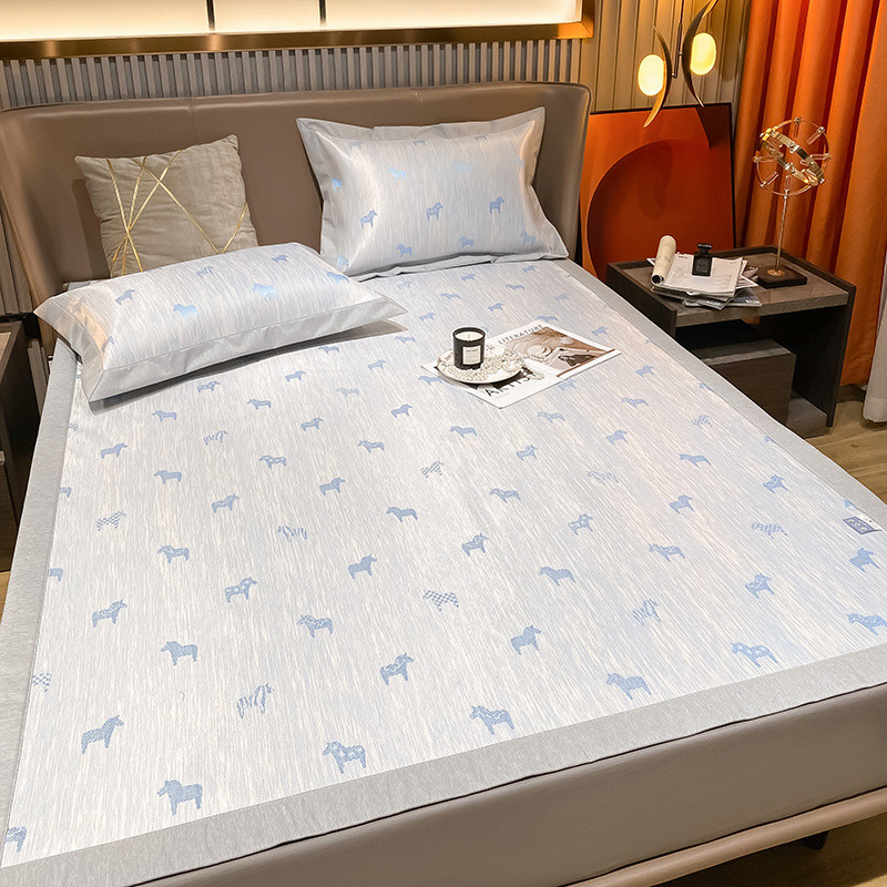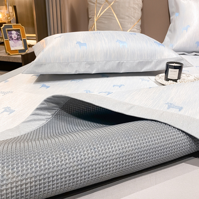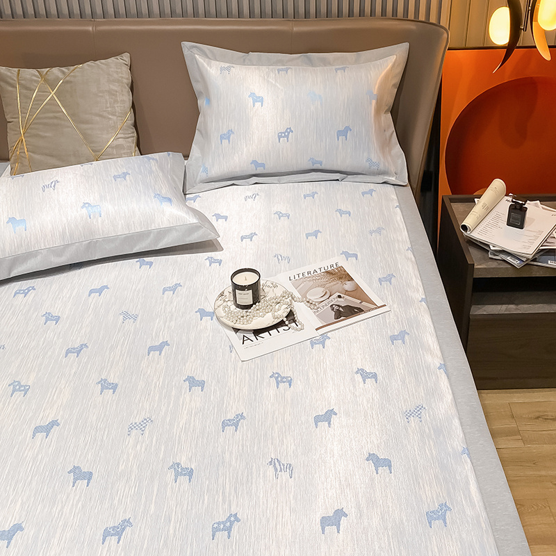 商品名称:懒猫 2022新款800D全工艺提花冰丝凉席床笠床垫款 路易斯-蓝