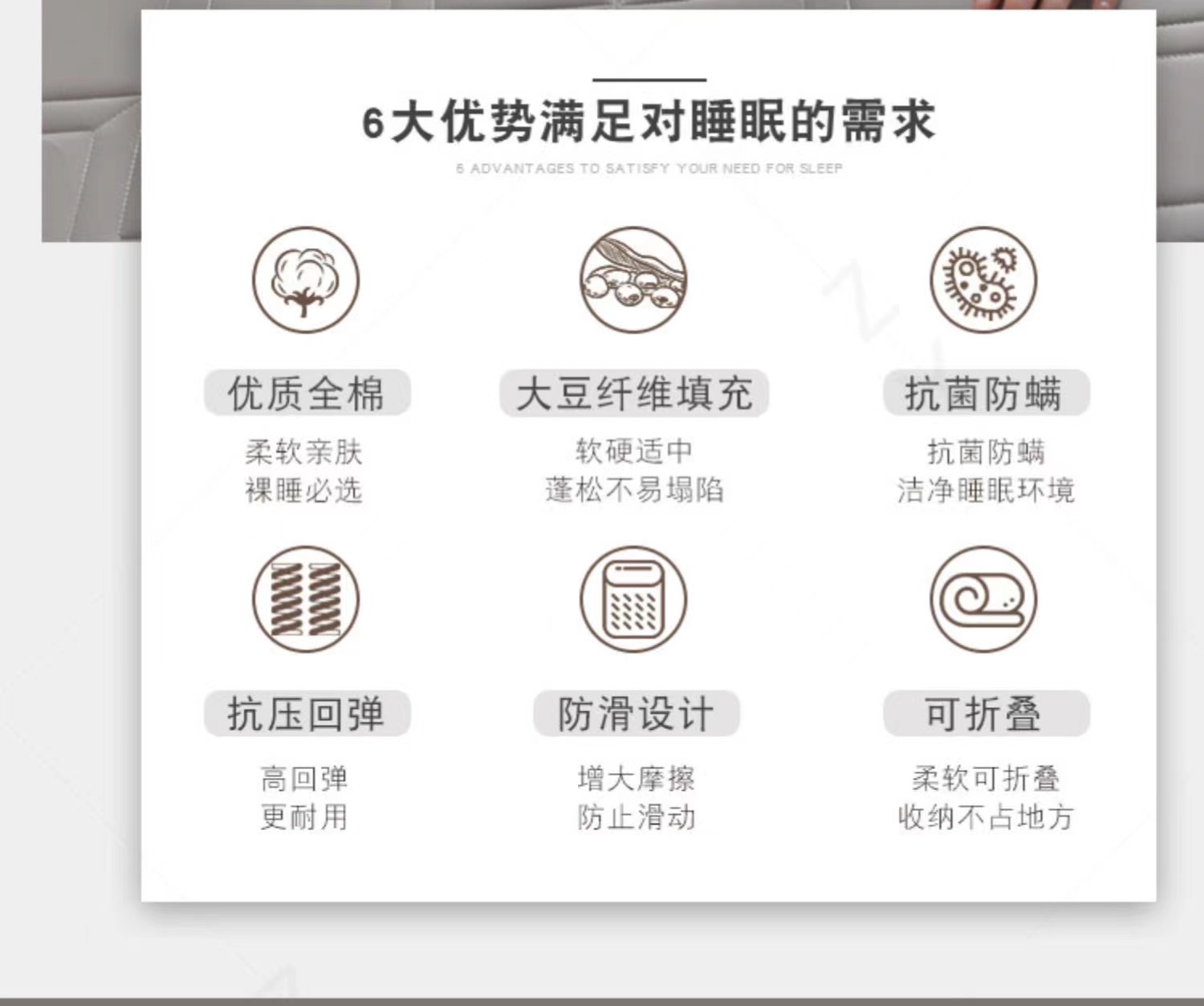 当前位置: 91家纺网 > 商品网购 > 床垫/床褥/床护垫 > 普通床垫 > (总)鑫钰 2023新款全棉加厚抗菌大豆纤维床垫