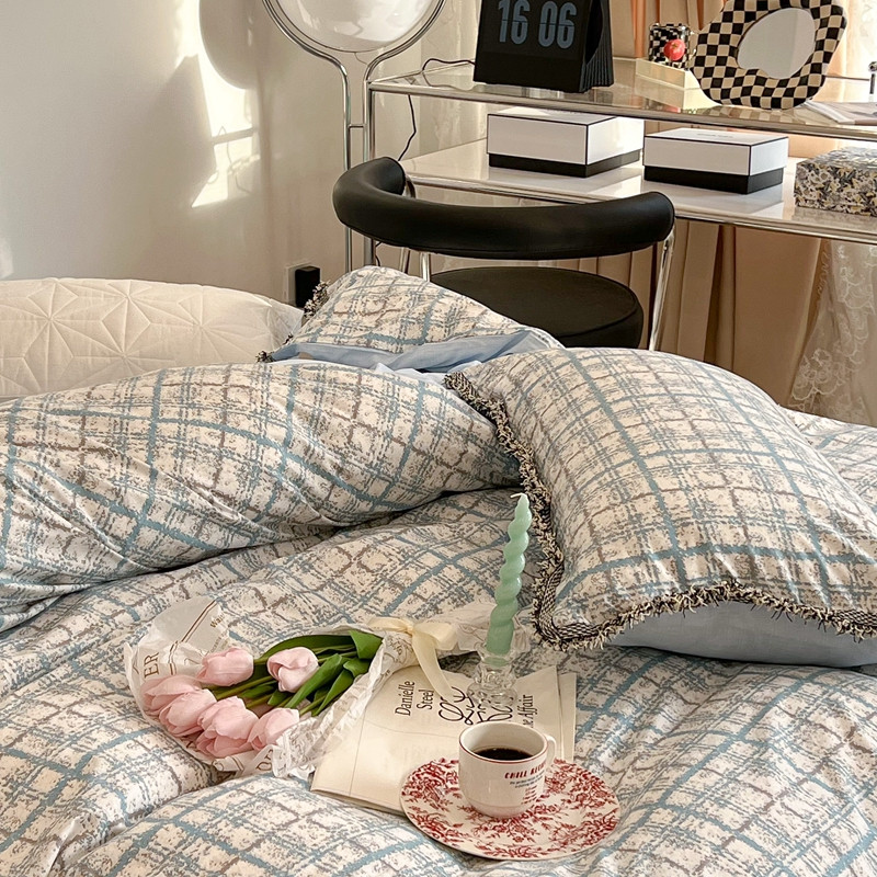 (总)昔可 2023新款全棉ins格子混搭系列四件套,ins简约绿格,粉蓝格,开心果格,学院格纹,粉绿格,海盐兰格,黄绿格,夏日蓝条,芝士黄条,紫芋泥芝士格