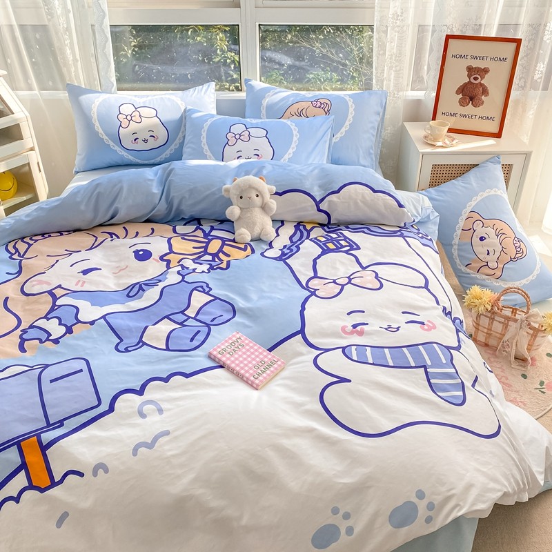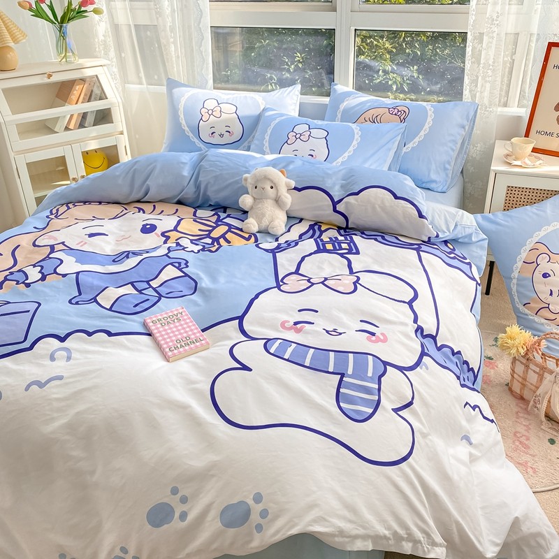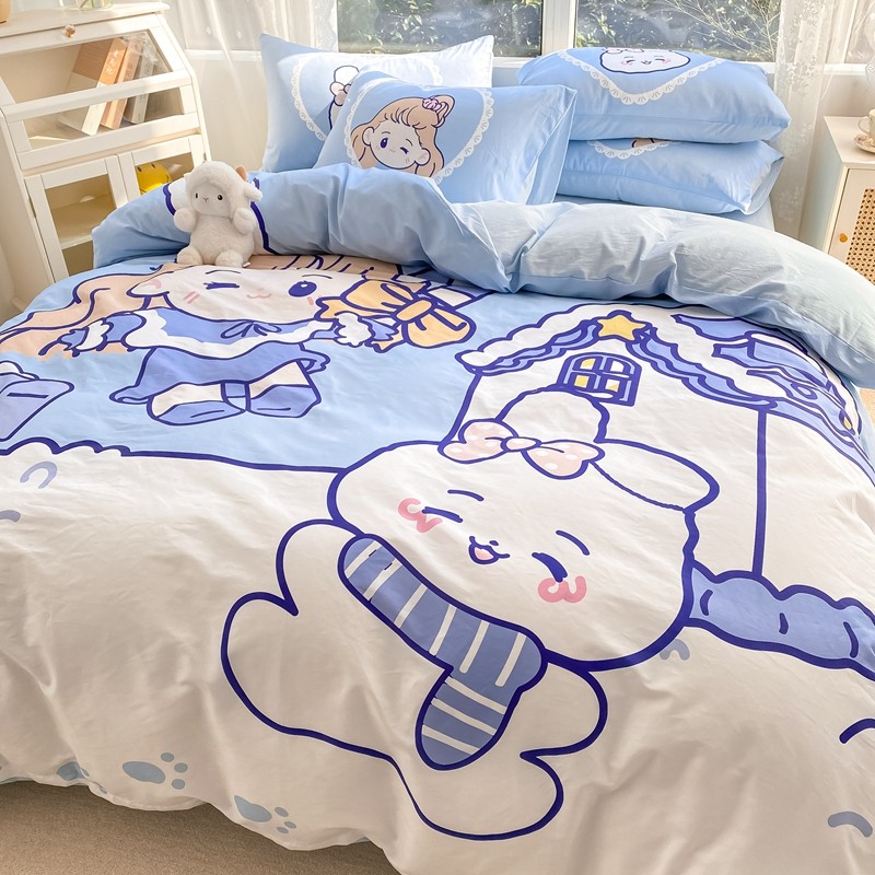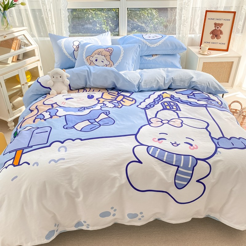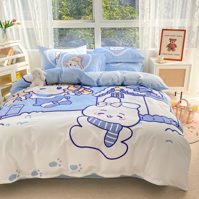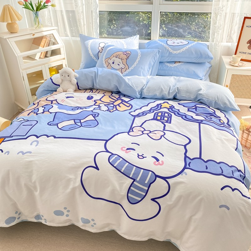 商品名称:星期八 2022新款二次元水洗棉四件套 雪屋女孩