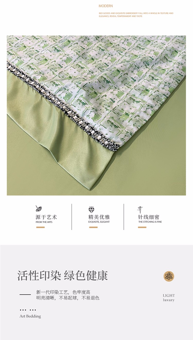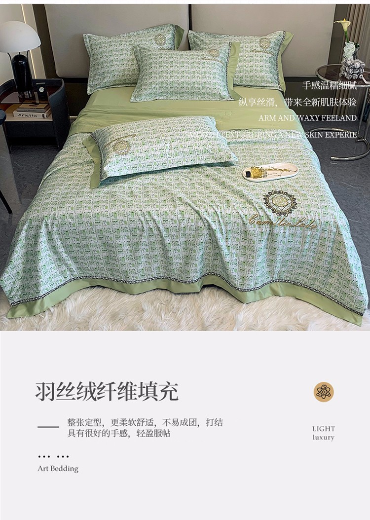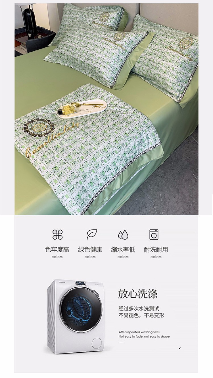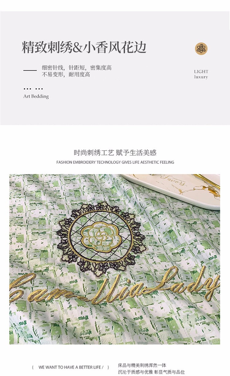 商品名称:澳洲羽 2024新款小香风刺绣夏被四件套 千鸟格-高级绿