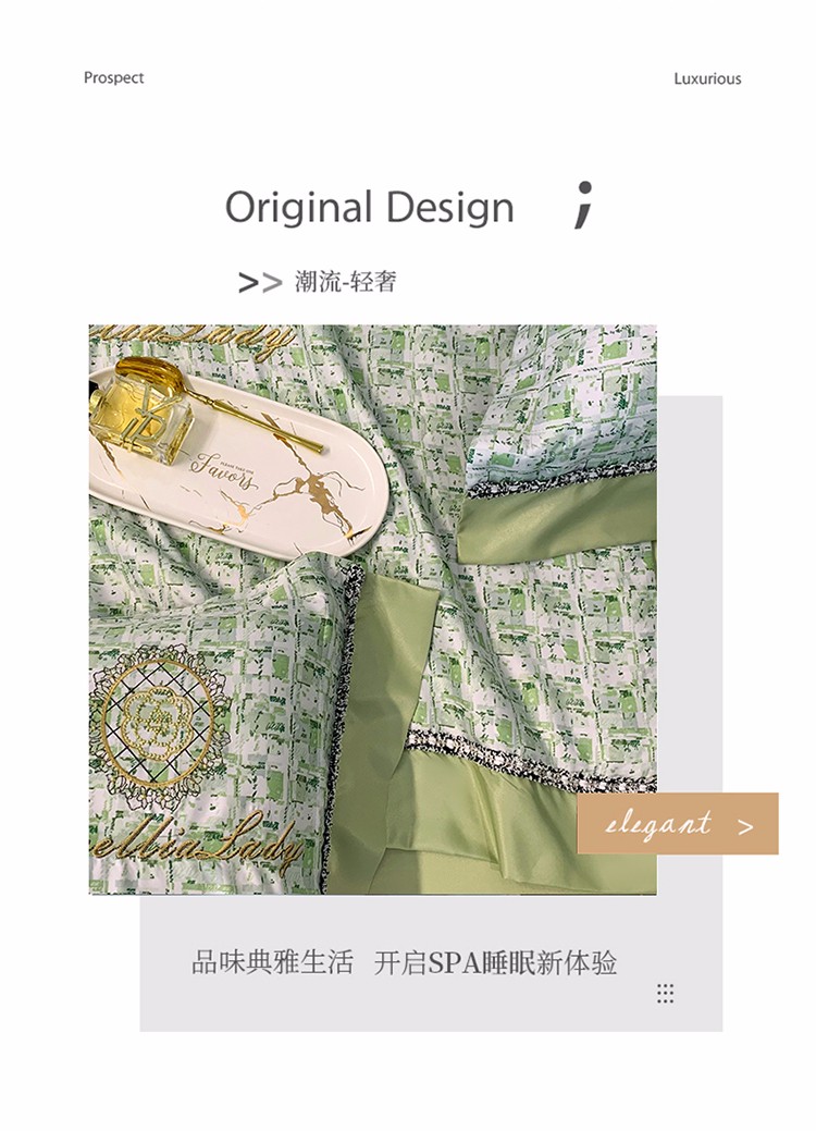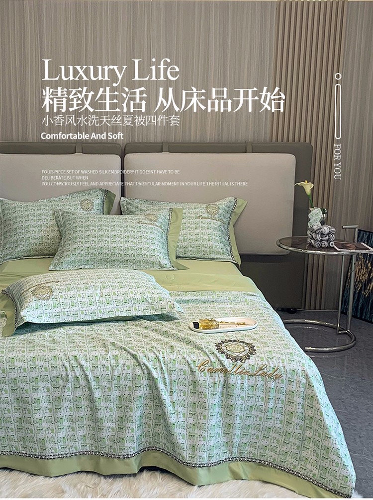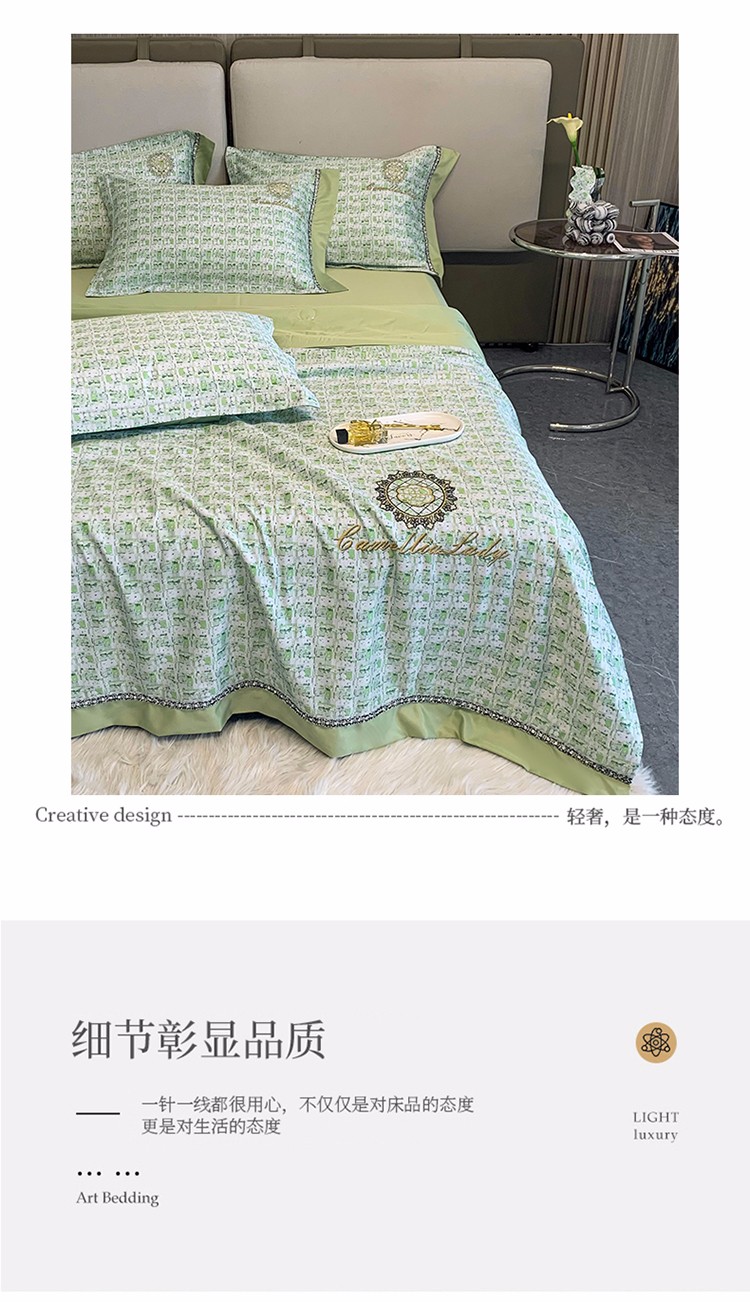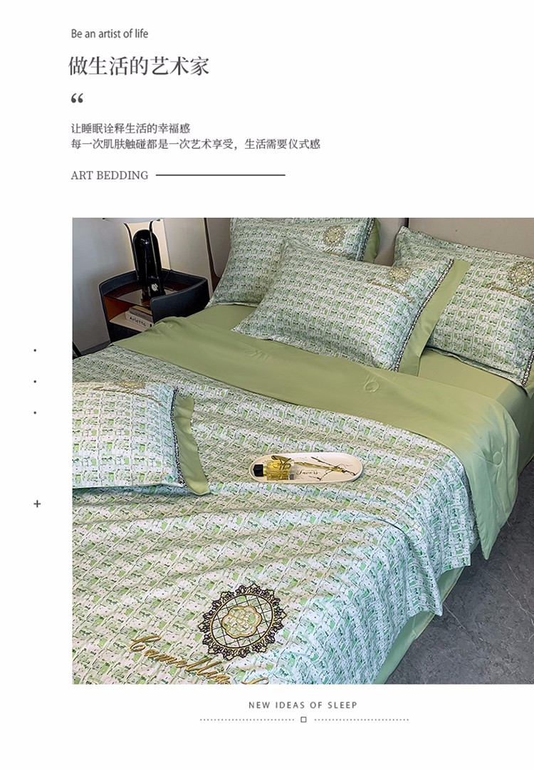 商品名称:澳洲羽 2024新款小香风刺绣夏被四件套 千鸟格-高级绿