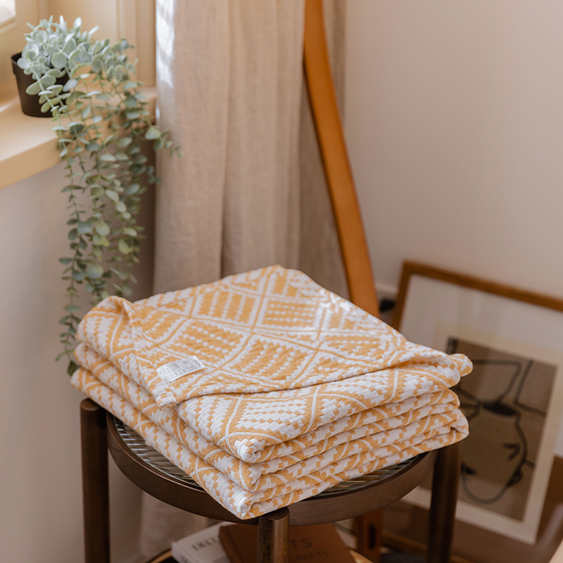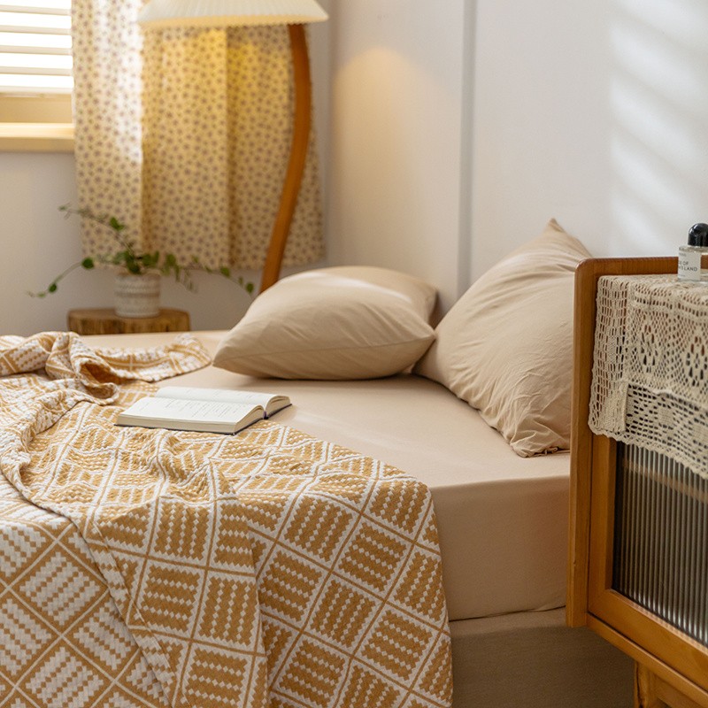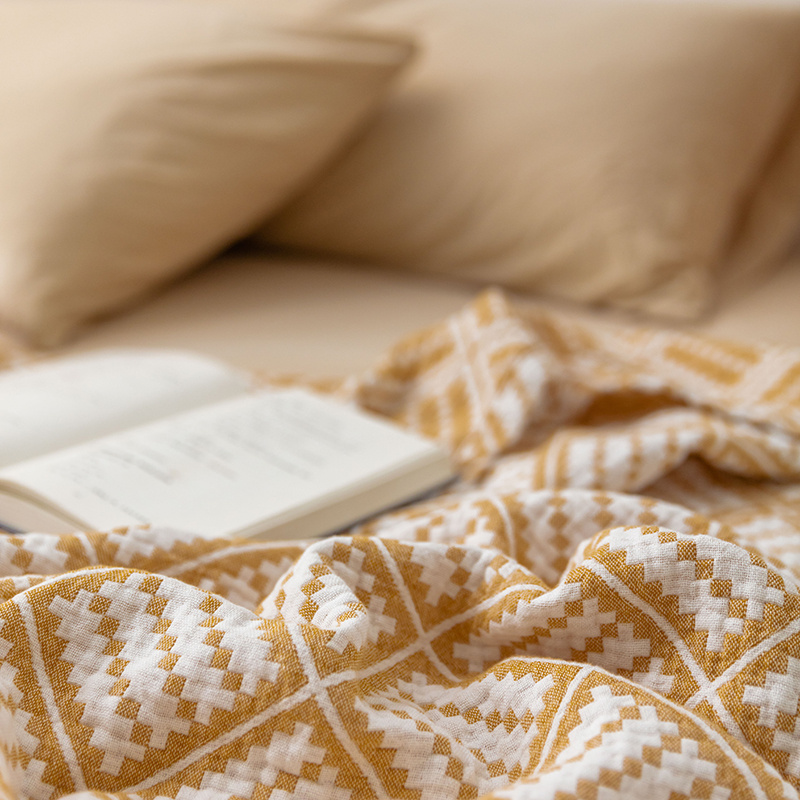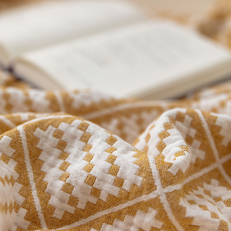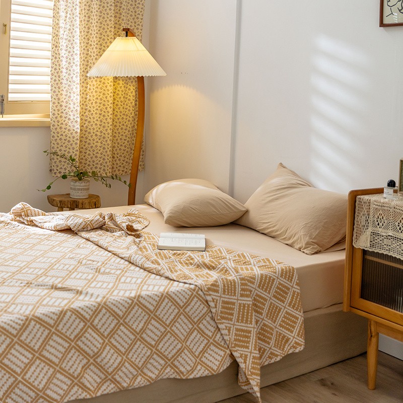 雯雨 2022新款无印风纱布毛巾被夏被直播方格圆点黄