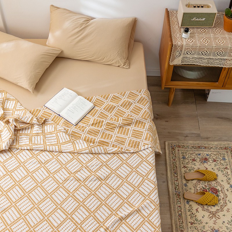 商品名称:雯雨 2022新款无印风纱布毛巾被夏被直播方格圆点黄