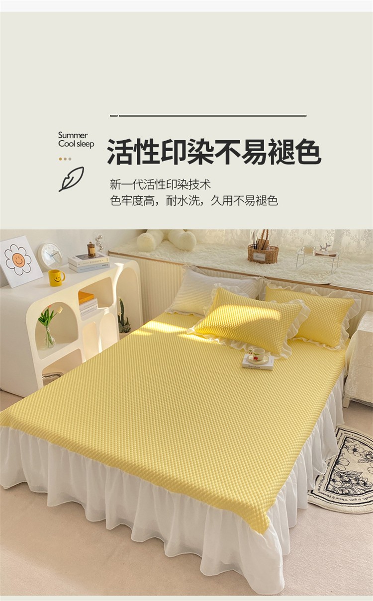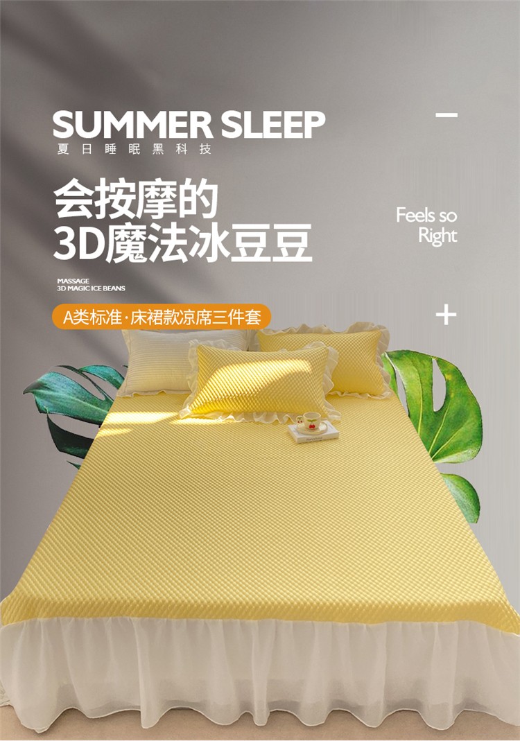 桃子家居 2022新款A类3D魔法冰豆豆科技凉席三件套床裙款 床裙款-黄