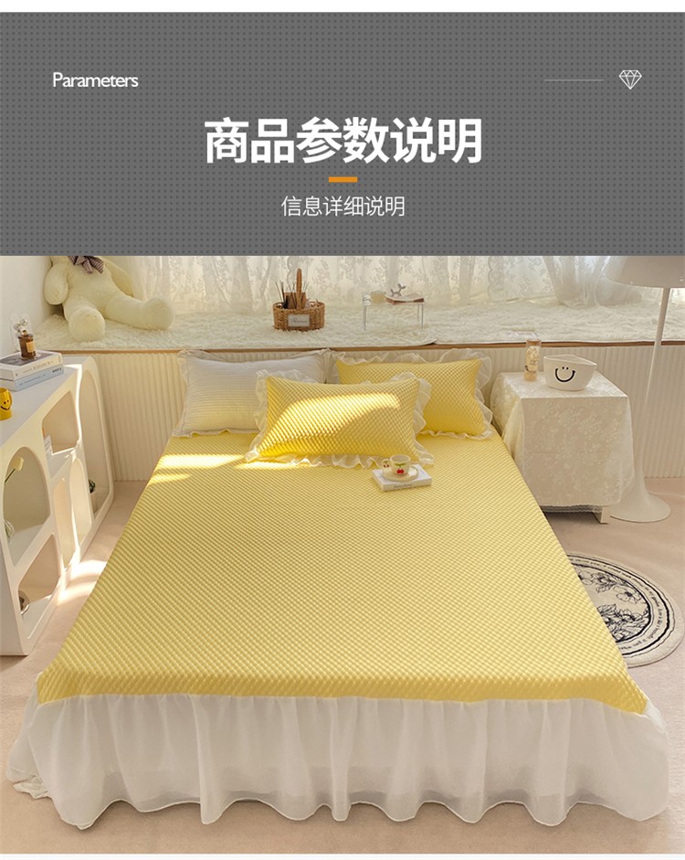 商品名称:桃子家居 2022新款A类3D魔法冰豆豆科技凉席三件套床裙款 床裙款-黄