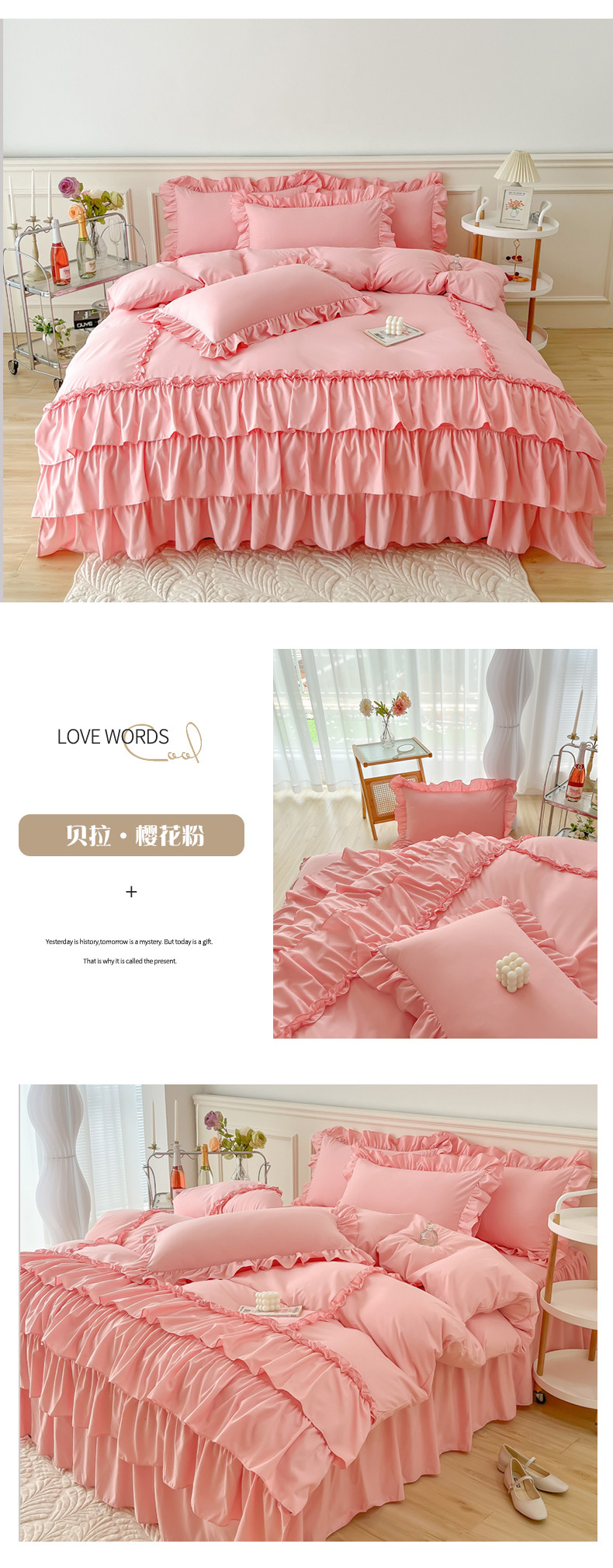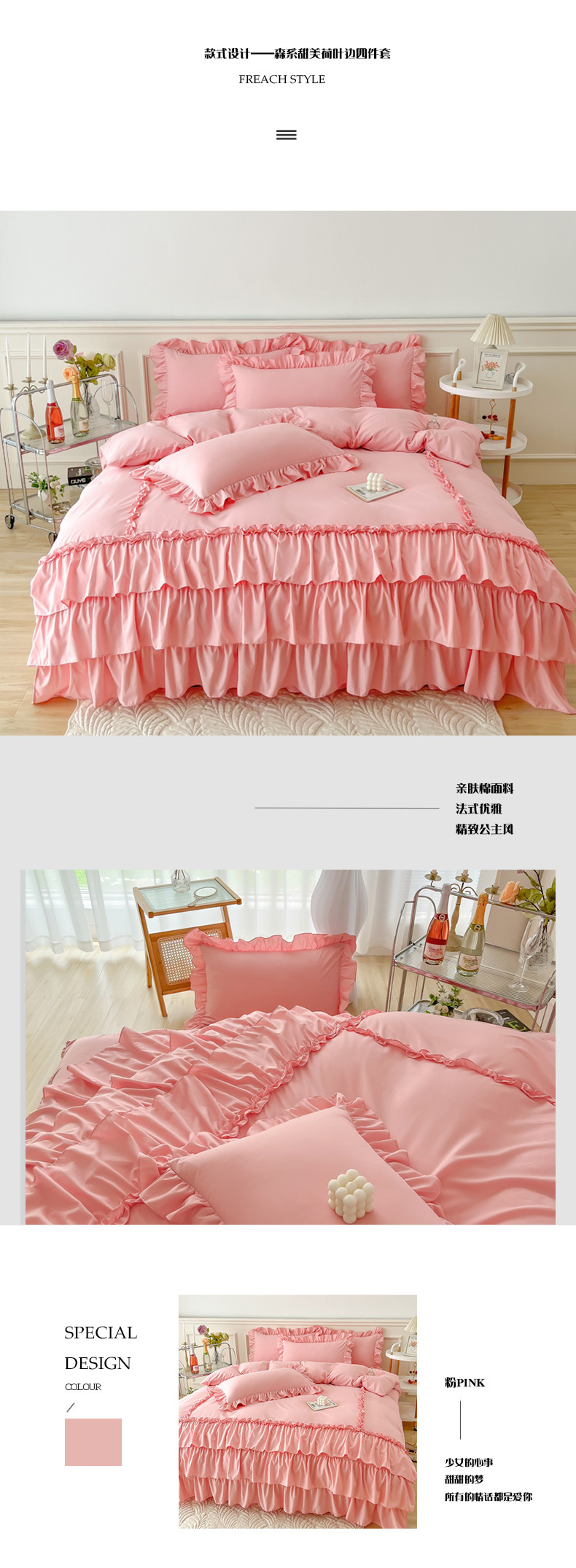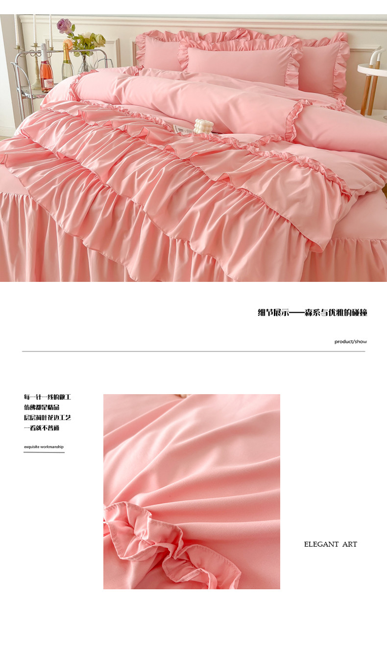商品名称:乐卧家居 2026新款贝拉花边系列四件套 贝拉-樱花粉