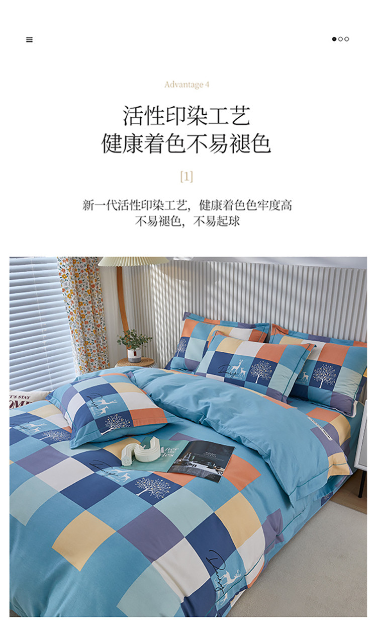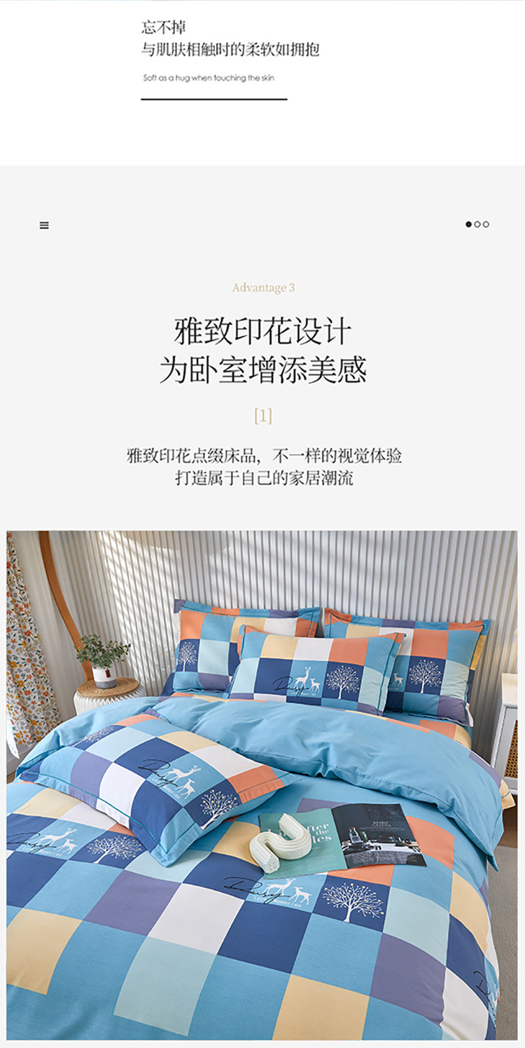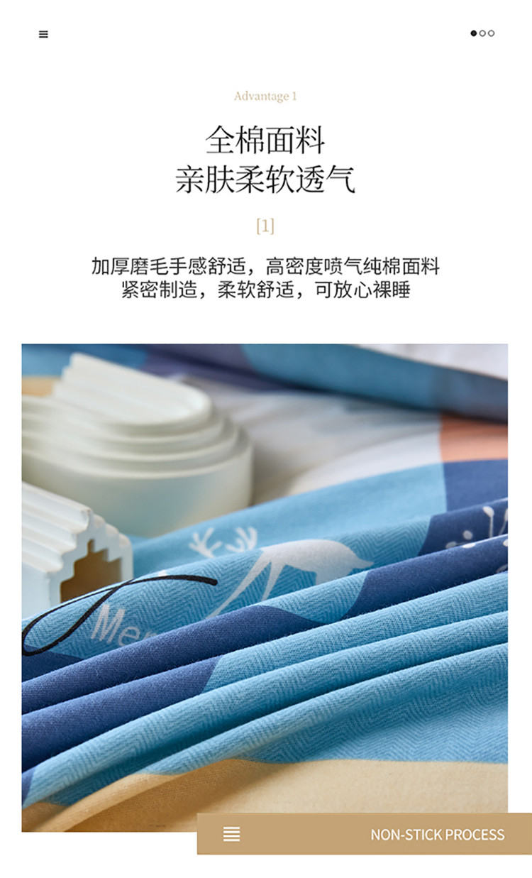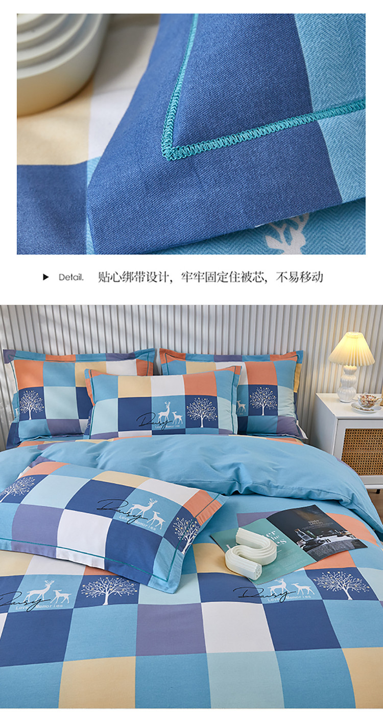 商品名称:杜先生 2023新款全棉加厚磨毛系列四件套鹿角小镇-蓝