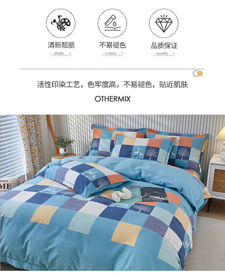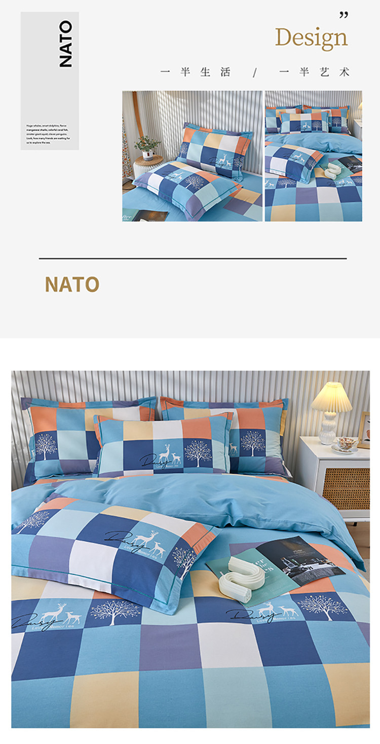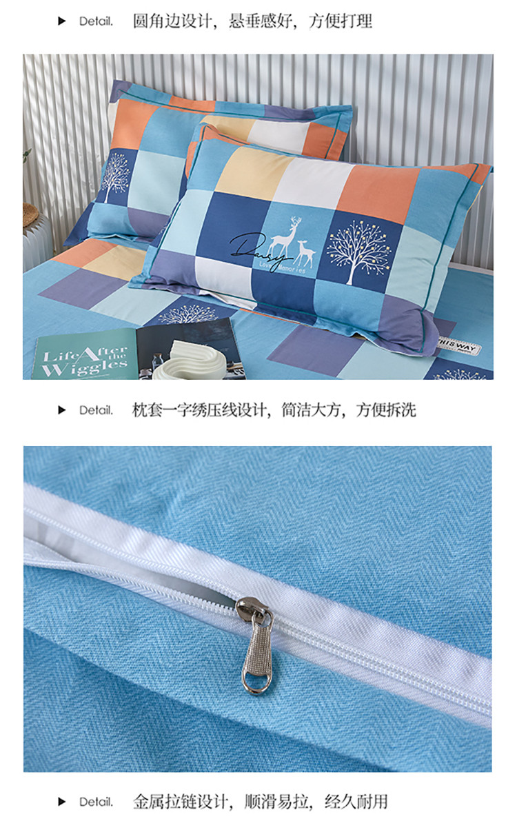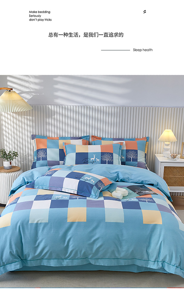 商品名称:杜先生 2023新款全棉加厚磨毛系列四件套鹿角小镇-蓝