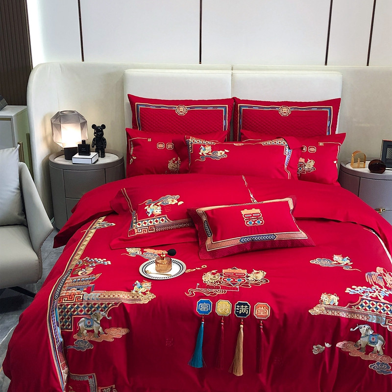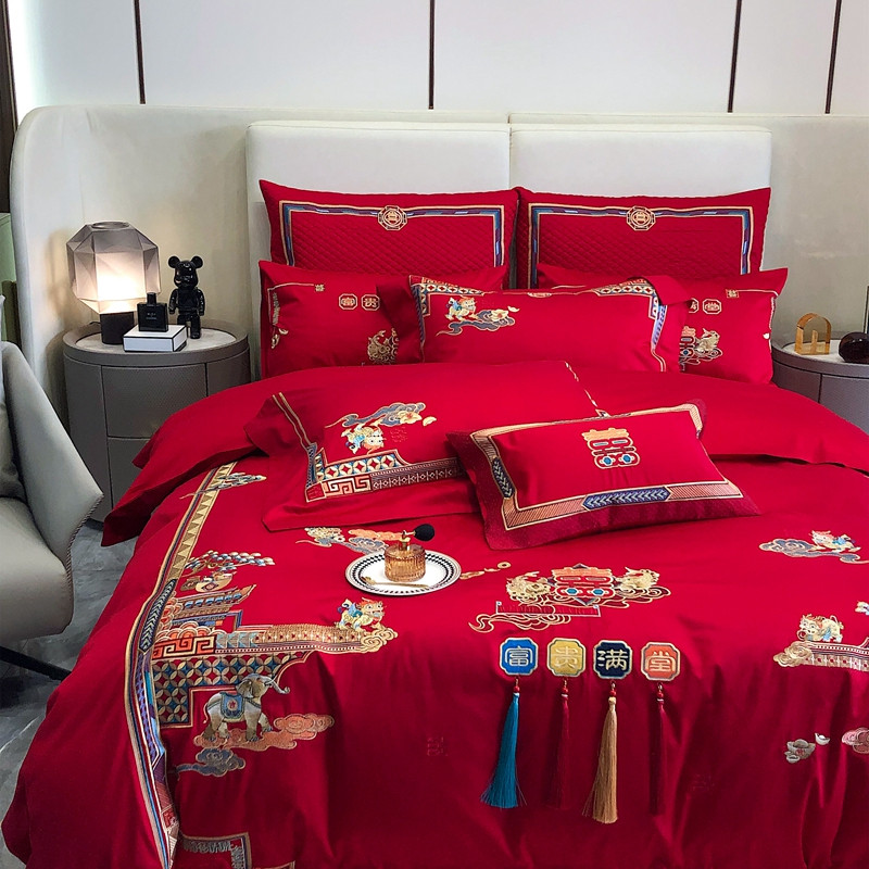 当前位置: 91家纺网 > 商品网购 > 床品套件 > 四件套 > 婚庆四件套 > 馨蕊家居 2022新款120S全棉长绒棉高端婚庆四件套 富贵满堂