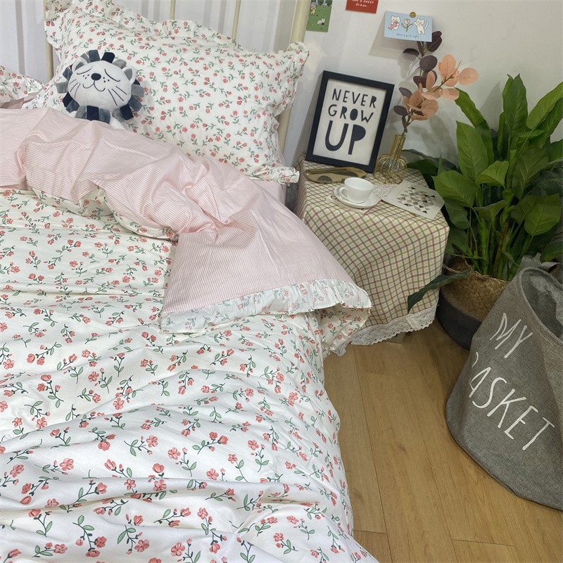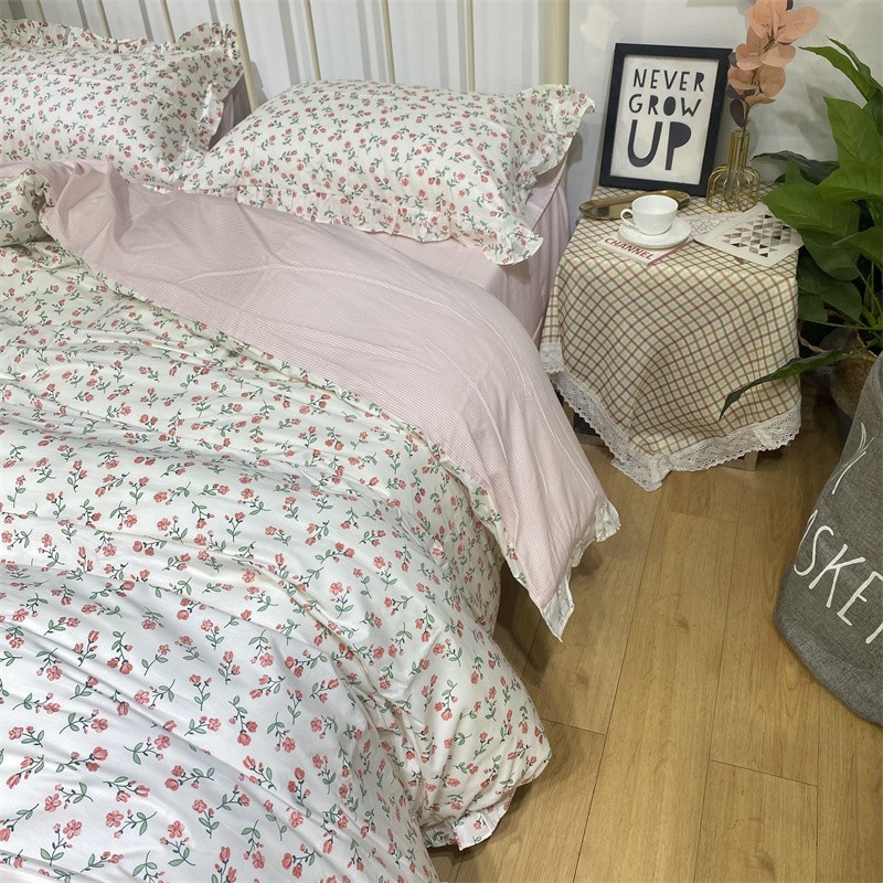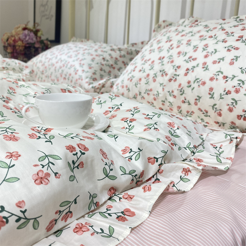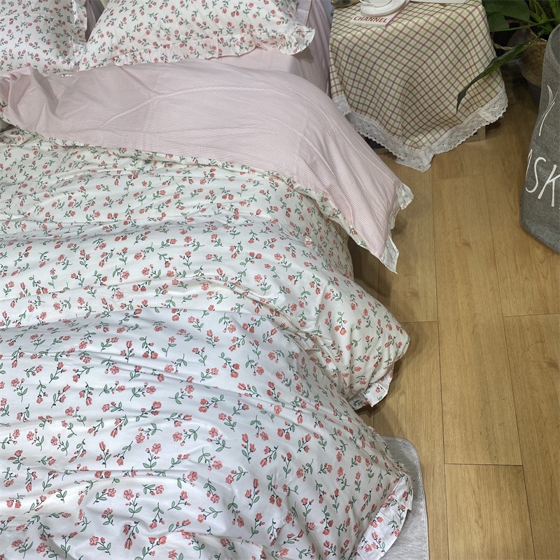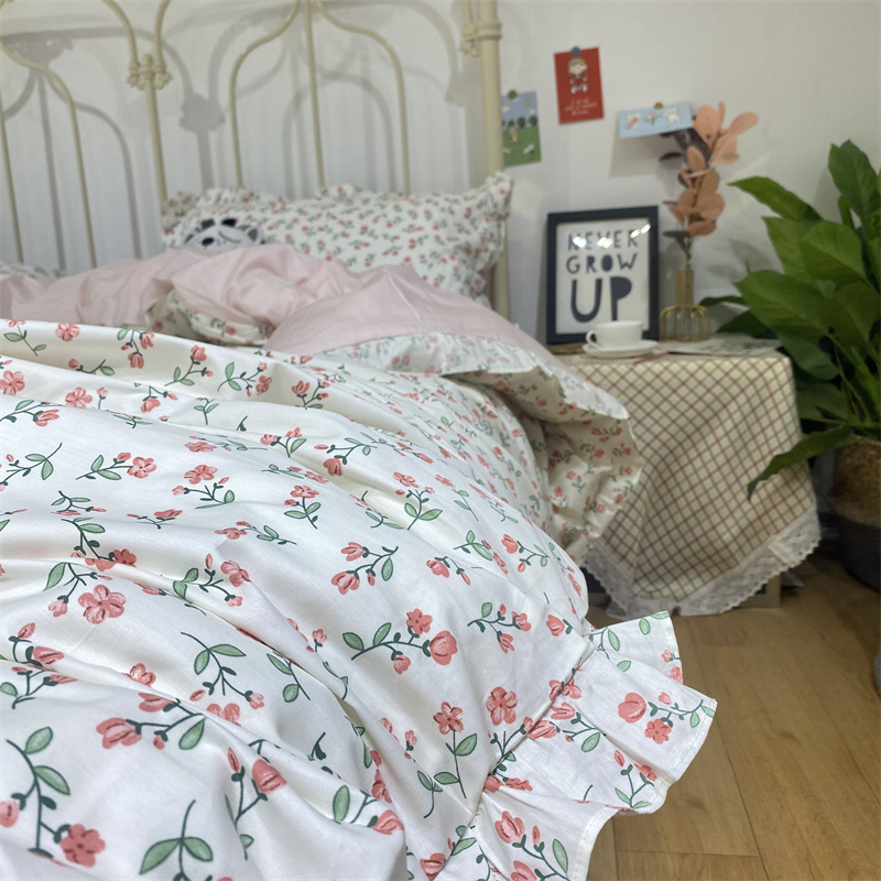棉生活 2022新款韩系花边碎花四件套 花季物语-红