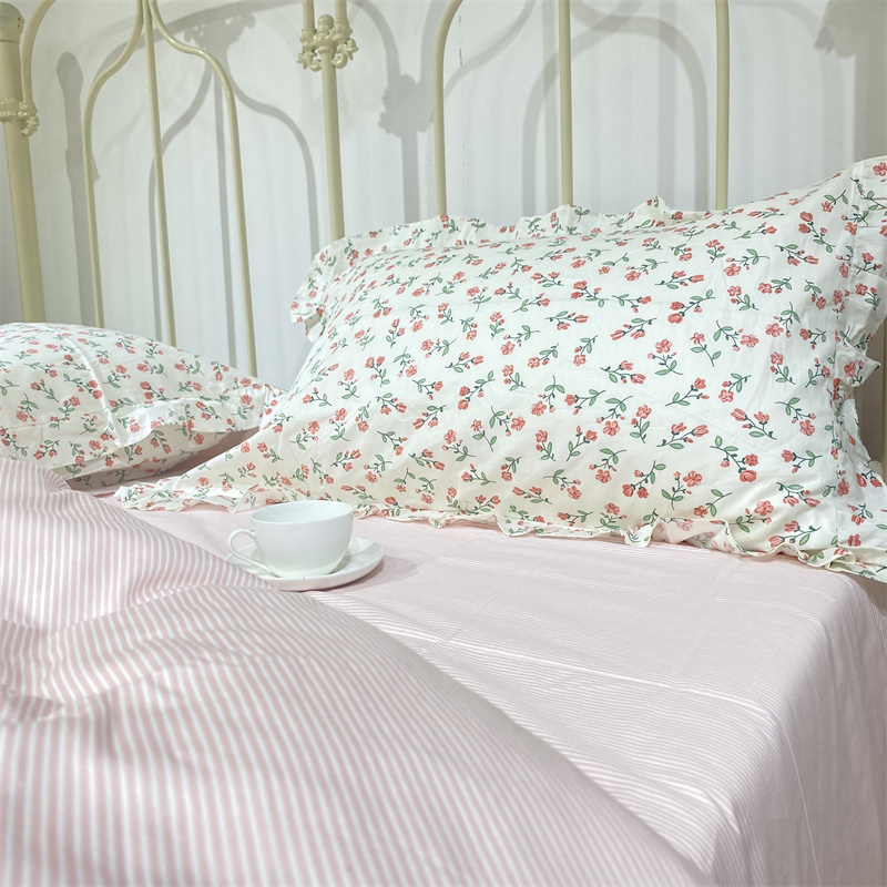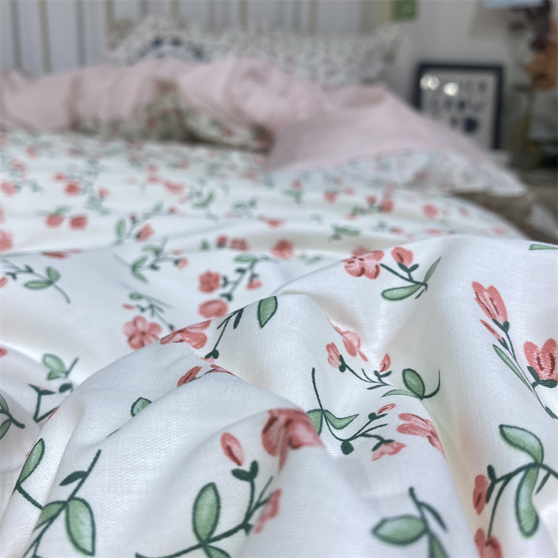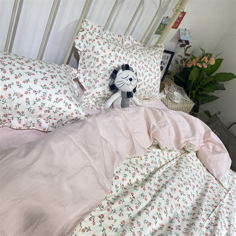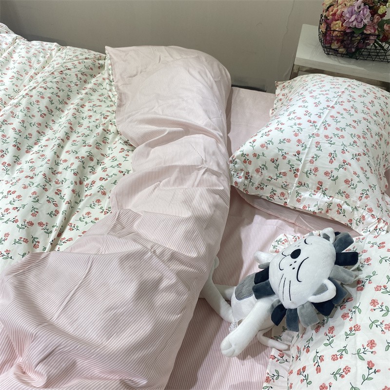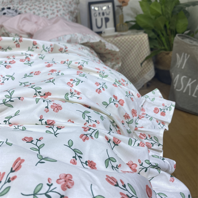 棉生活 2022新款韩系花边碎花四件套 花季物语-红