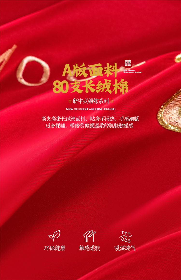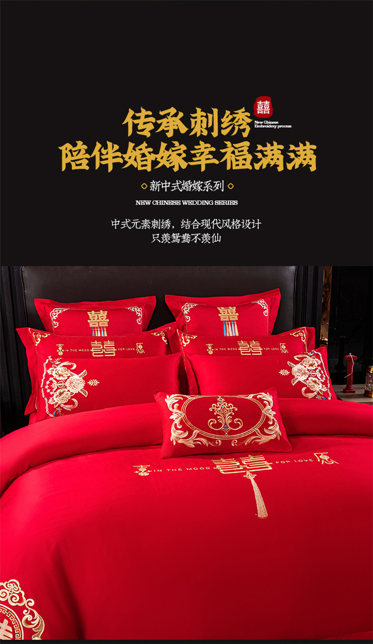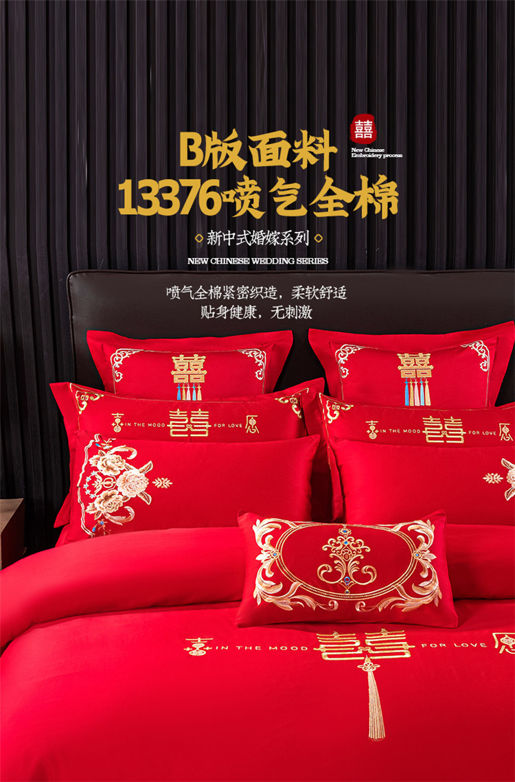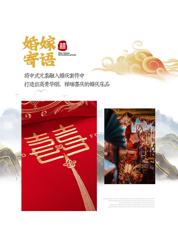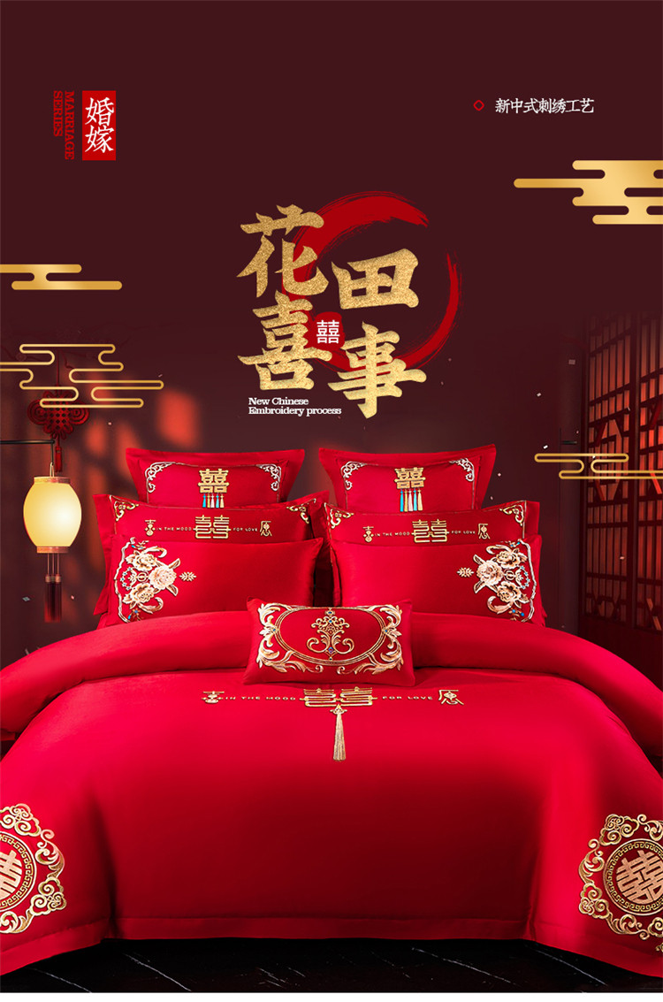 当前位置: 91家纺网 > 商品网购 > 床品套件 > 四件套 > 长绒棉四件套 > 千禧 2022新款婚庆绣花套件 花田喜事
