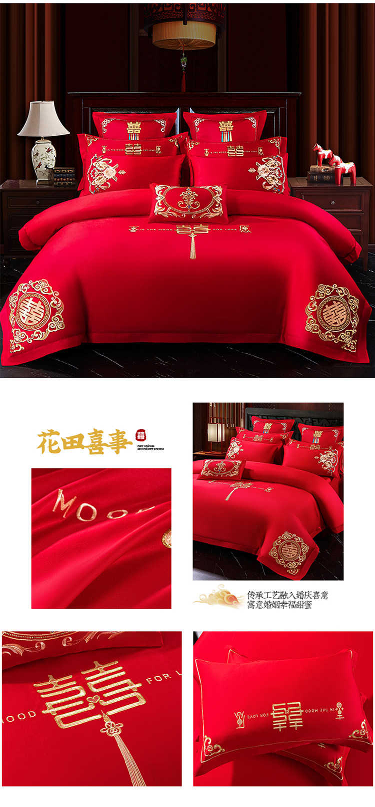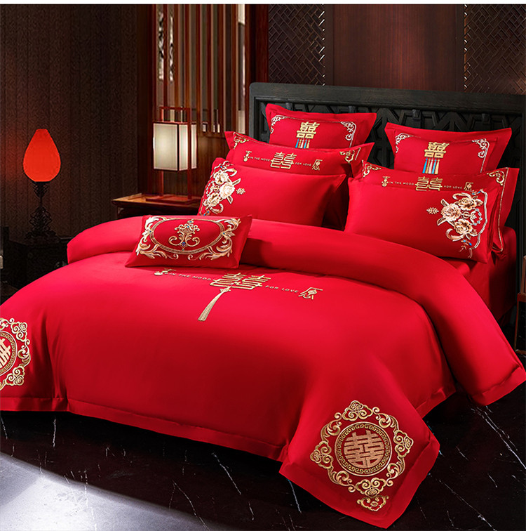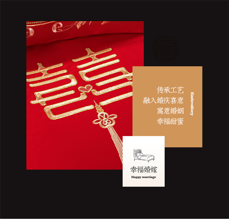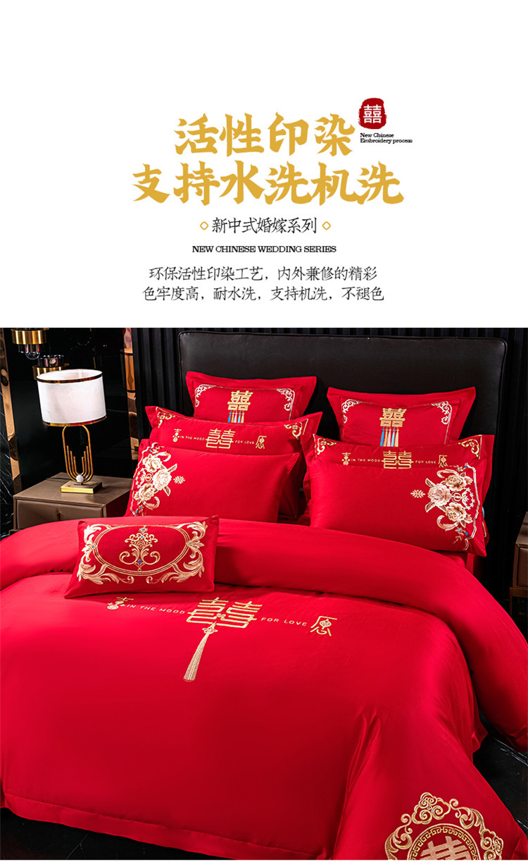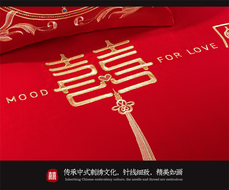 当前位置: 91家纺网 > 商品网购 > 床品套件 > 四件套 > 长绒棉四件套 > 千禧 2022新款婚庆绣花套件 花田喜事