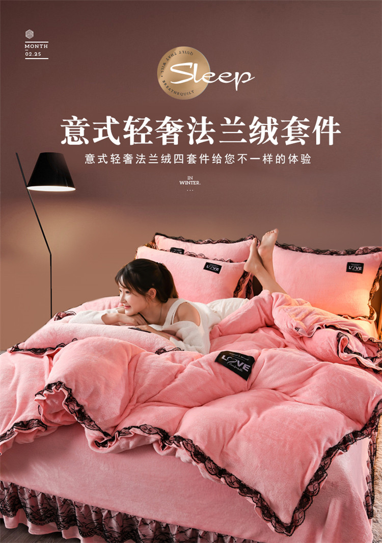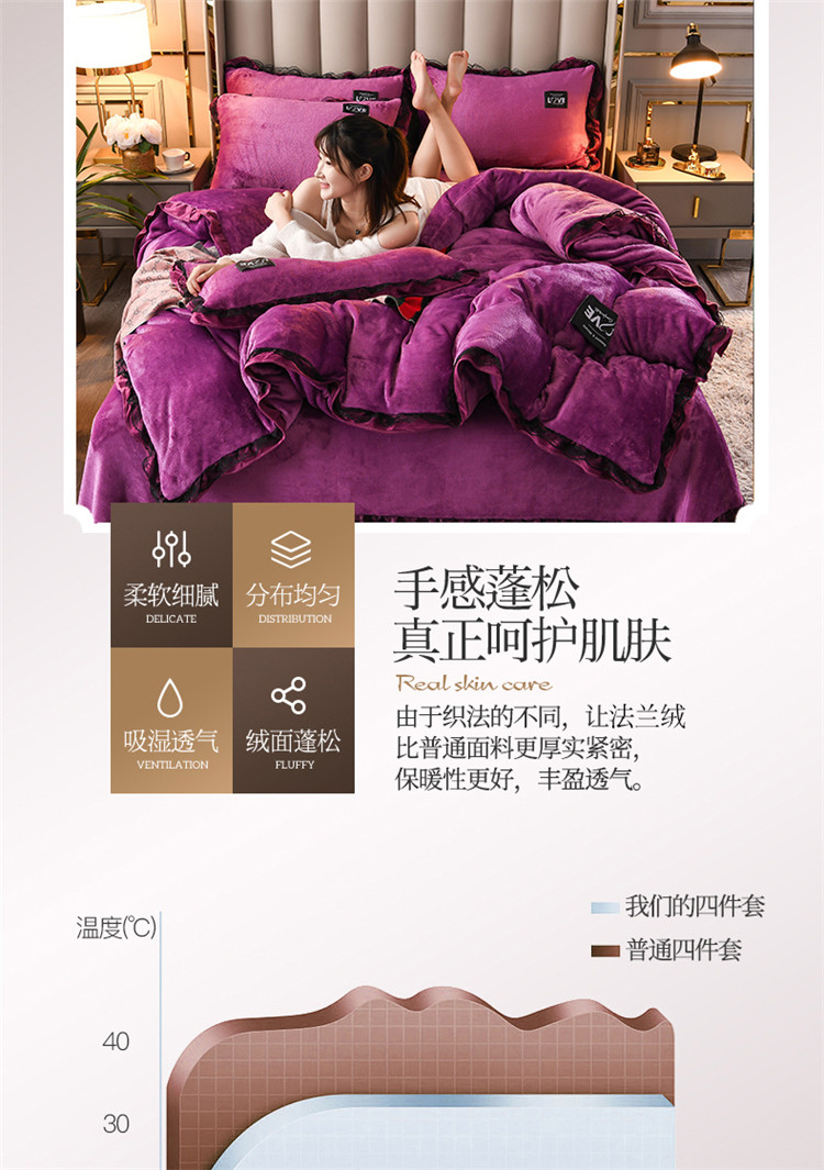 商品名称:铠畅 2022新款牛奶绒四件套-倾城系列 倾城玉色