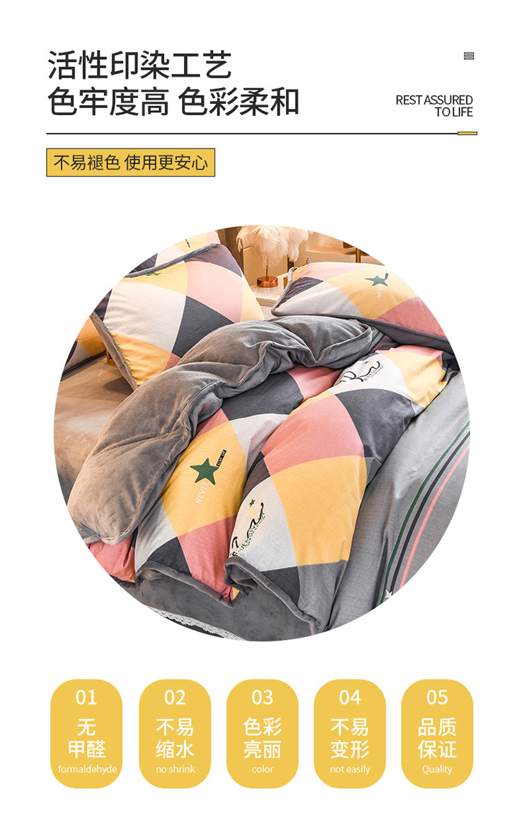 琪琪阁 2023新款A棉B绒棉加绒牛奶绒四件套单被套 简约人生,简约人生