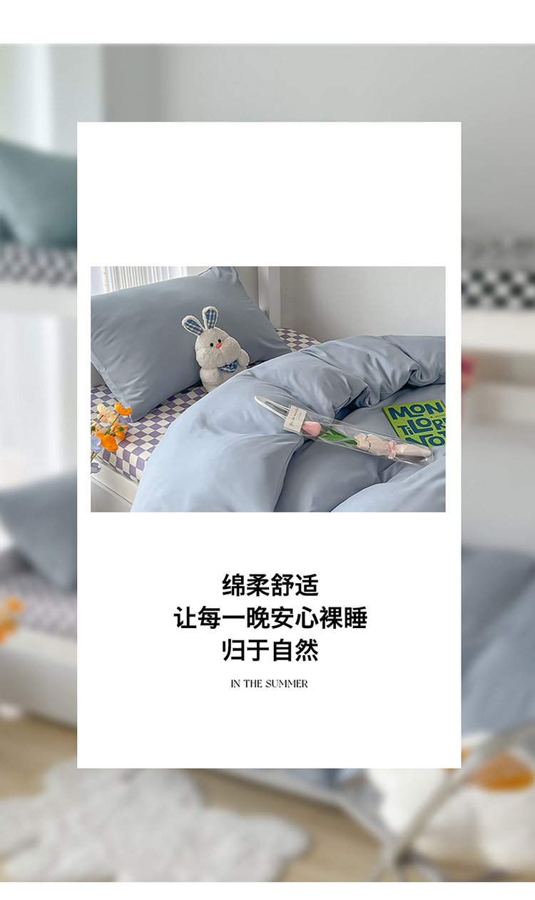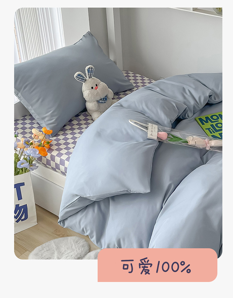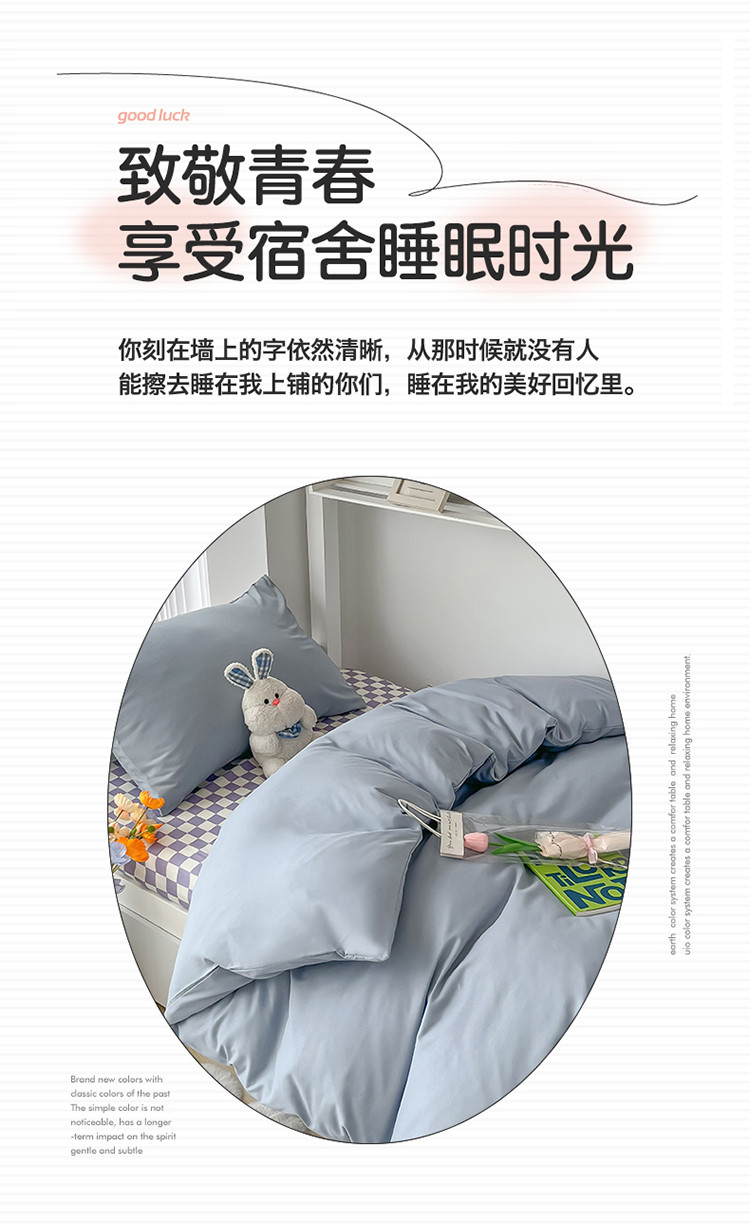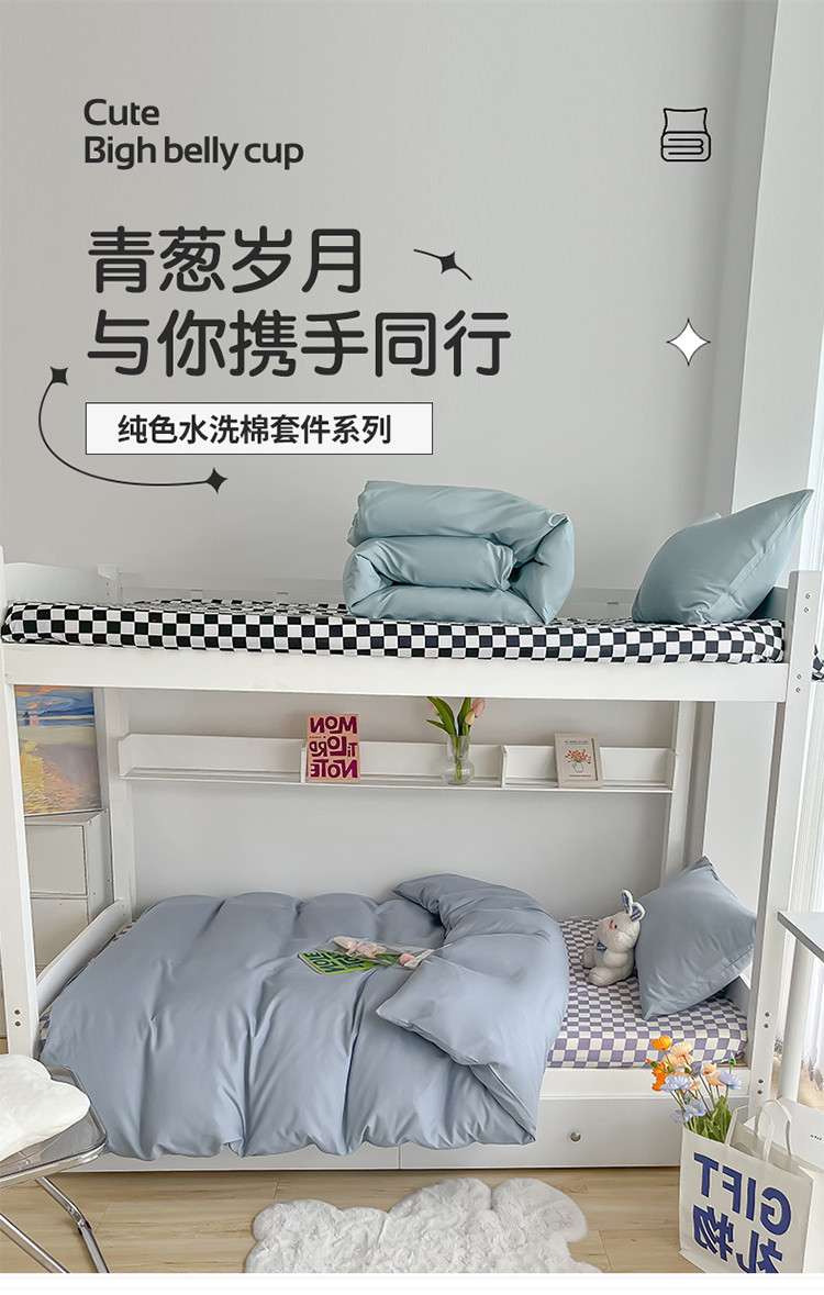 商品名称:眠帛 2022新款水洗棉混搭学生床三件套 蓝灰