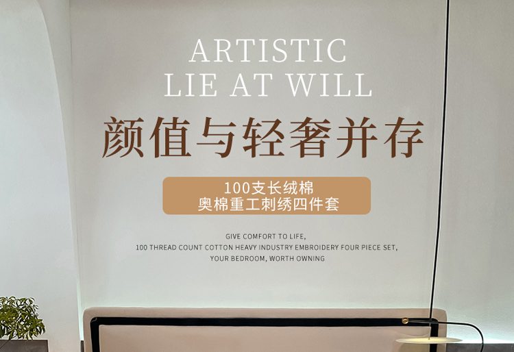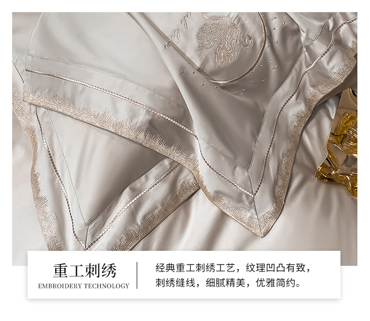 (总)爱缦 2026新款100S全棉CR工艺极简轻奢刺绣四件套-福纳醒狮(券后控价:标准378,大号398),福纳醒狮