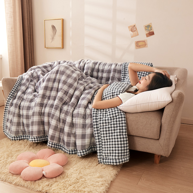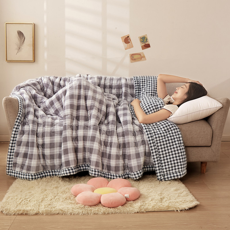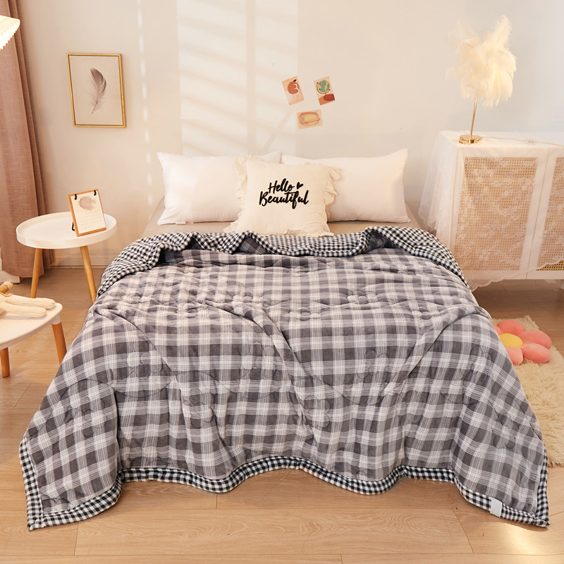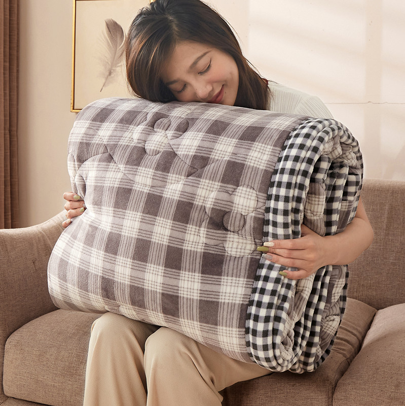 (总)云木里 2025新款A版牛奶绒B版菠萝格夹棉绗绣三层毯盖毯毯子,格子恐龙,好看女孩,灰蓝,灰色,卡其,墨绿,奶黄,浅粉,浅蓝,秋风绿,小猫鱼,中格灰