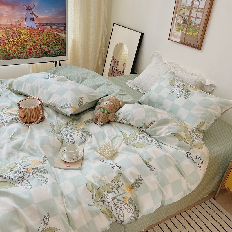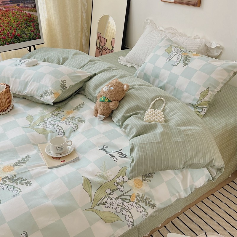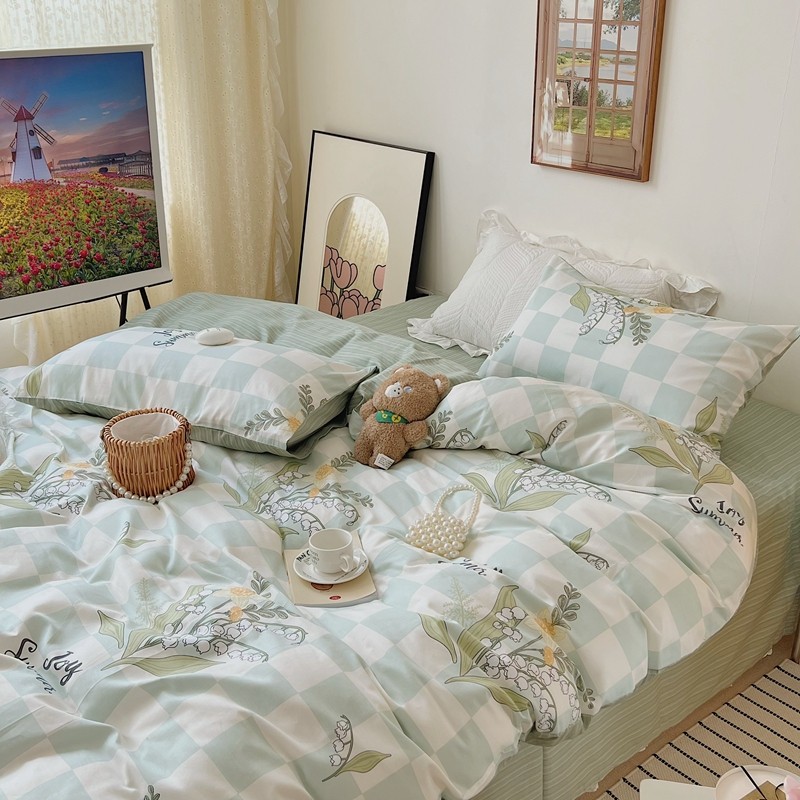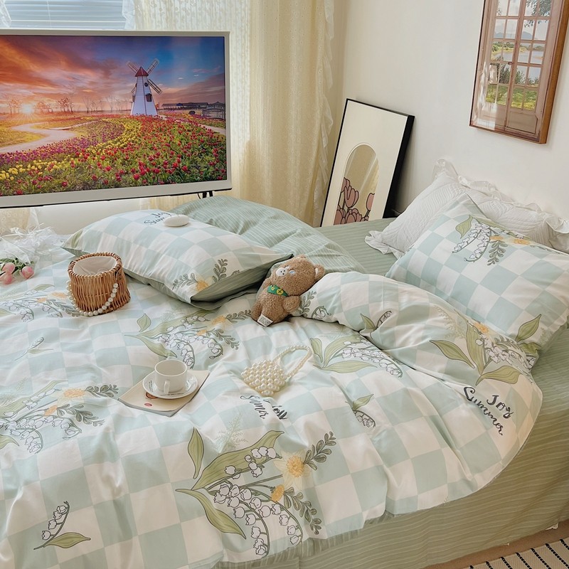 顾里家纺 2022ins韩系全棉四件套韩系花花系列 绿铃兰