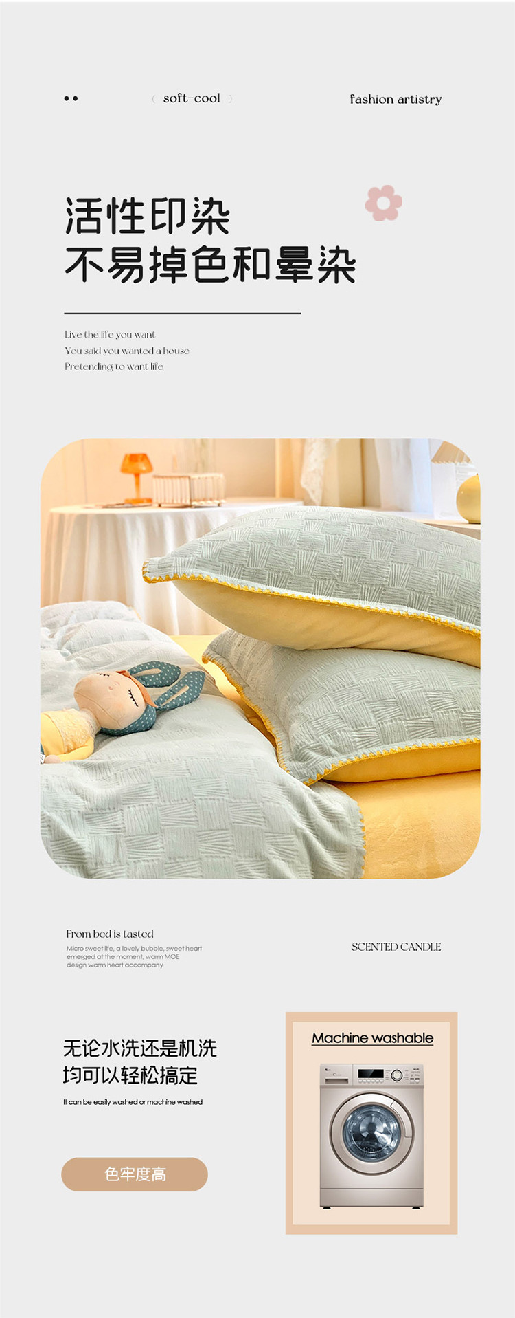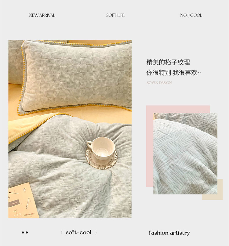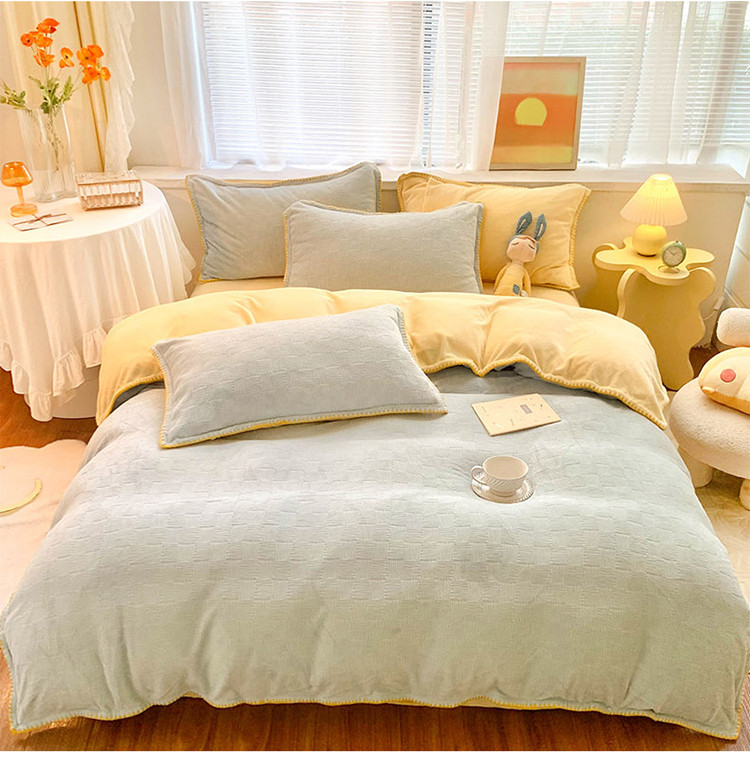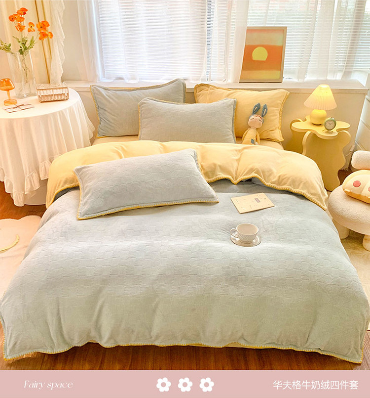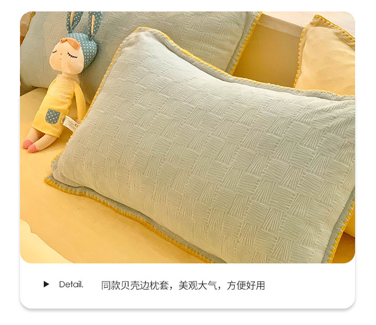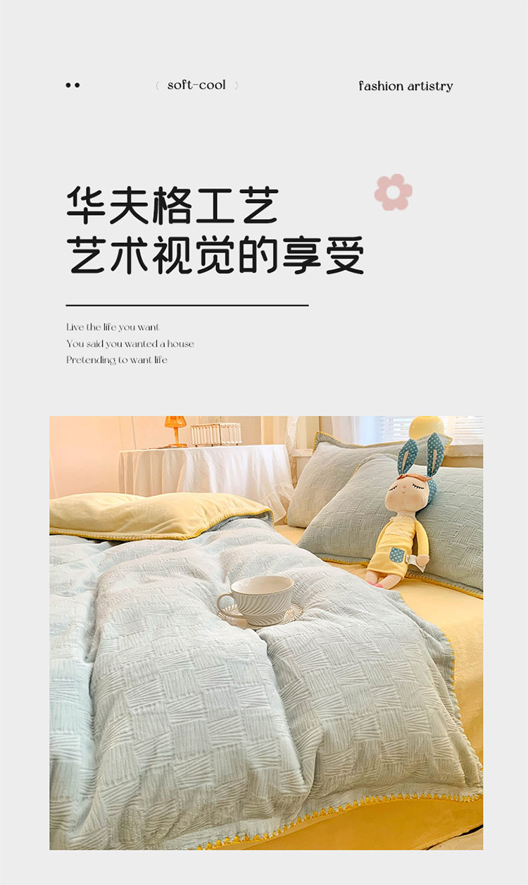 当前位置: 91家纺网 > 商品网购 > 床品套件 > 四件套 > 牛奶绒四件套 > 莱茵 2023秋冬新款ins华夫格贝壳边牛奶绒四件套 晴空蓝