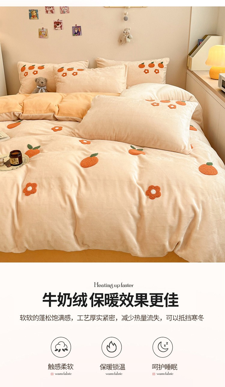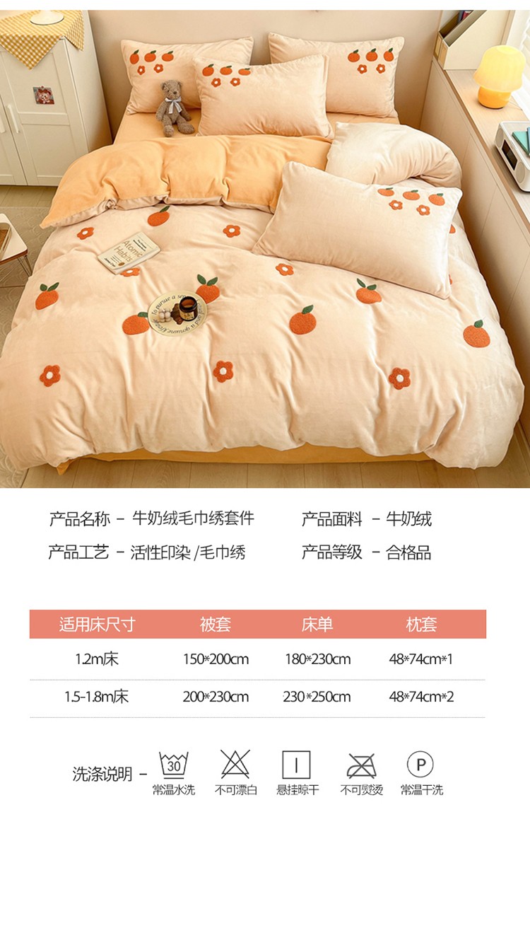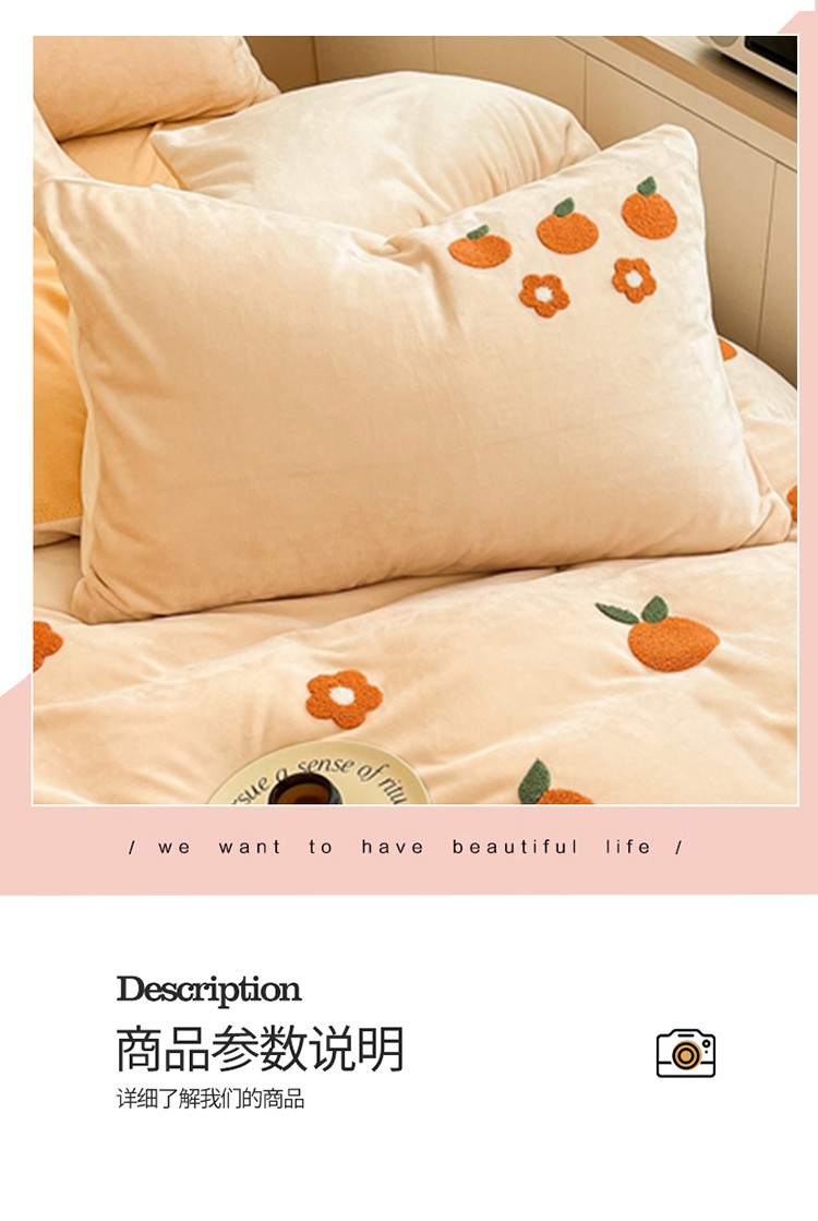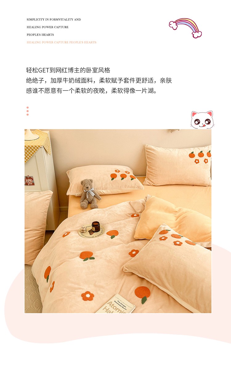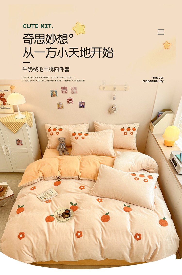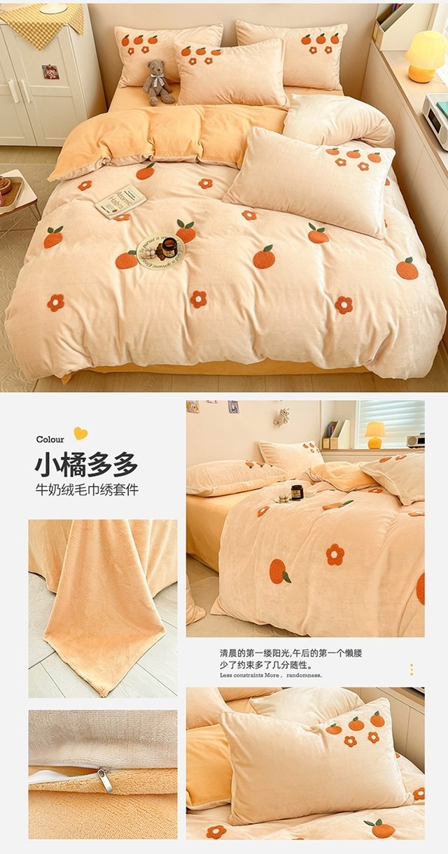 商品名称:川悦生活 2022新款牛奶绒毛巾绣四件套 小橘多多