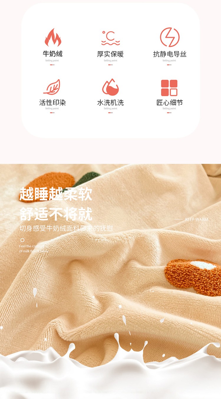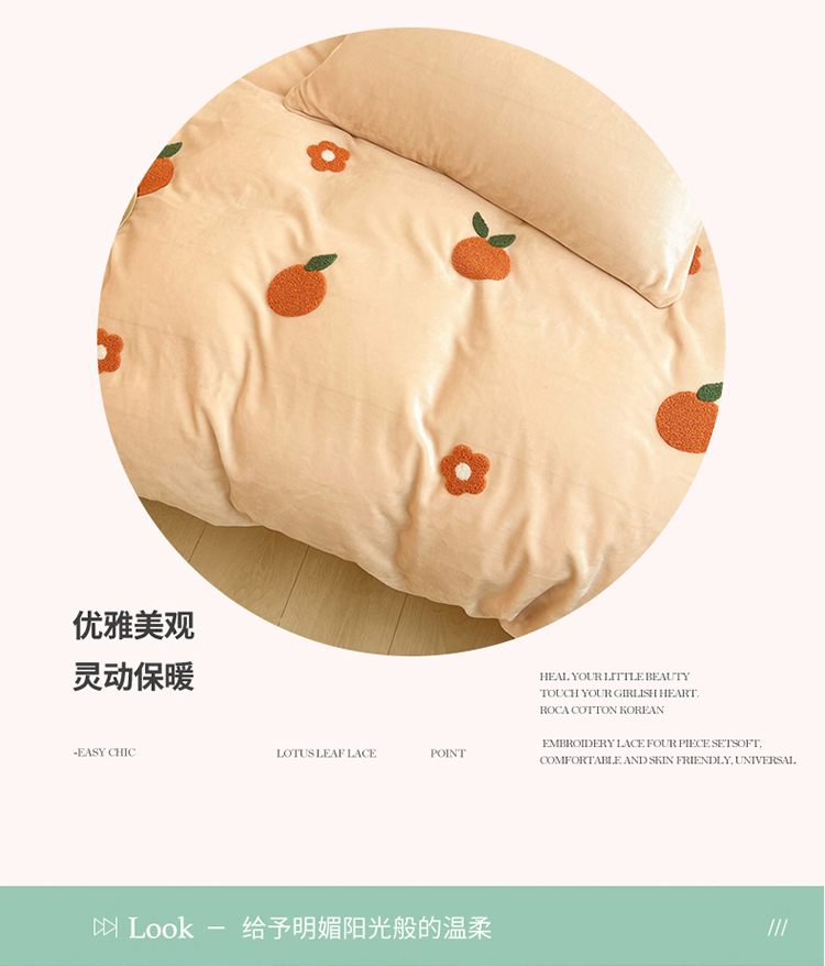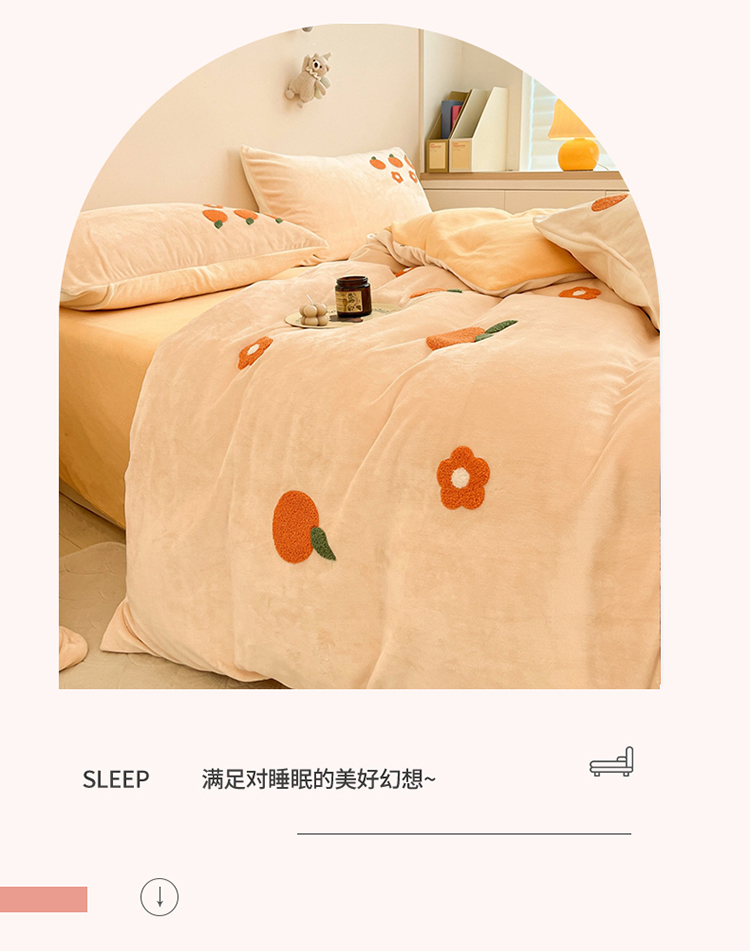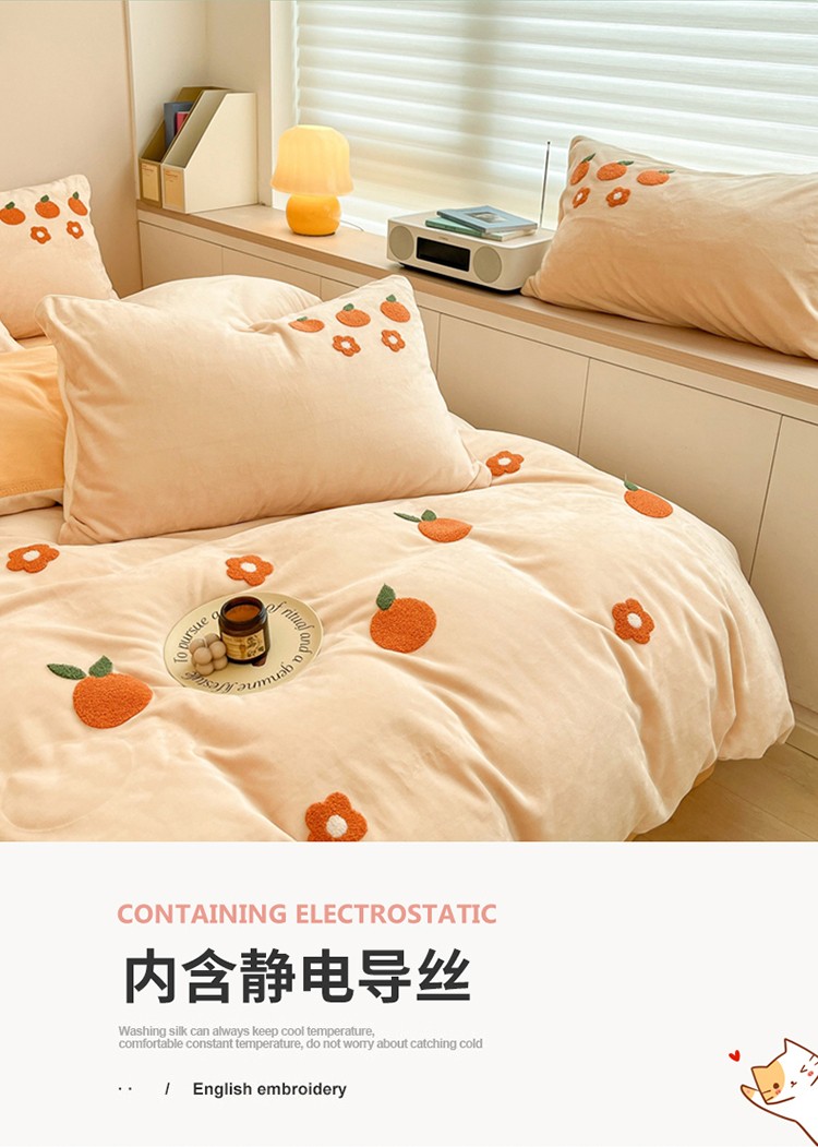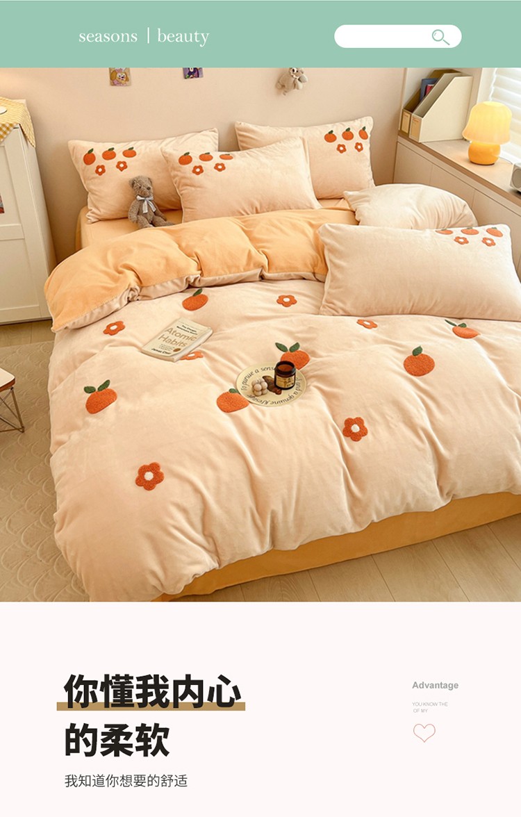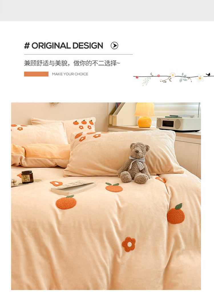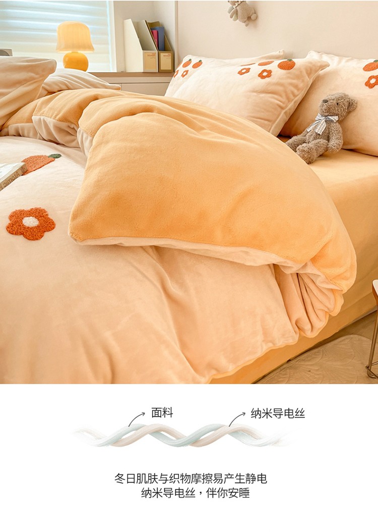 商品名称:川悦生活 2022新款牛奶绒毛巾绣四件套 小橘多多