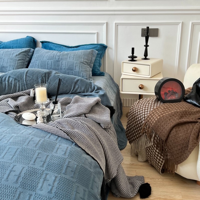 (总)安莱生活 2025春夏新款空气层色织提花四件套费尔岛系列,费尔岛-茶棕,费尔岛-咖啡,费尔岛-银灰