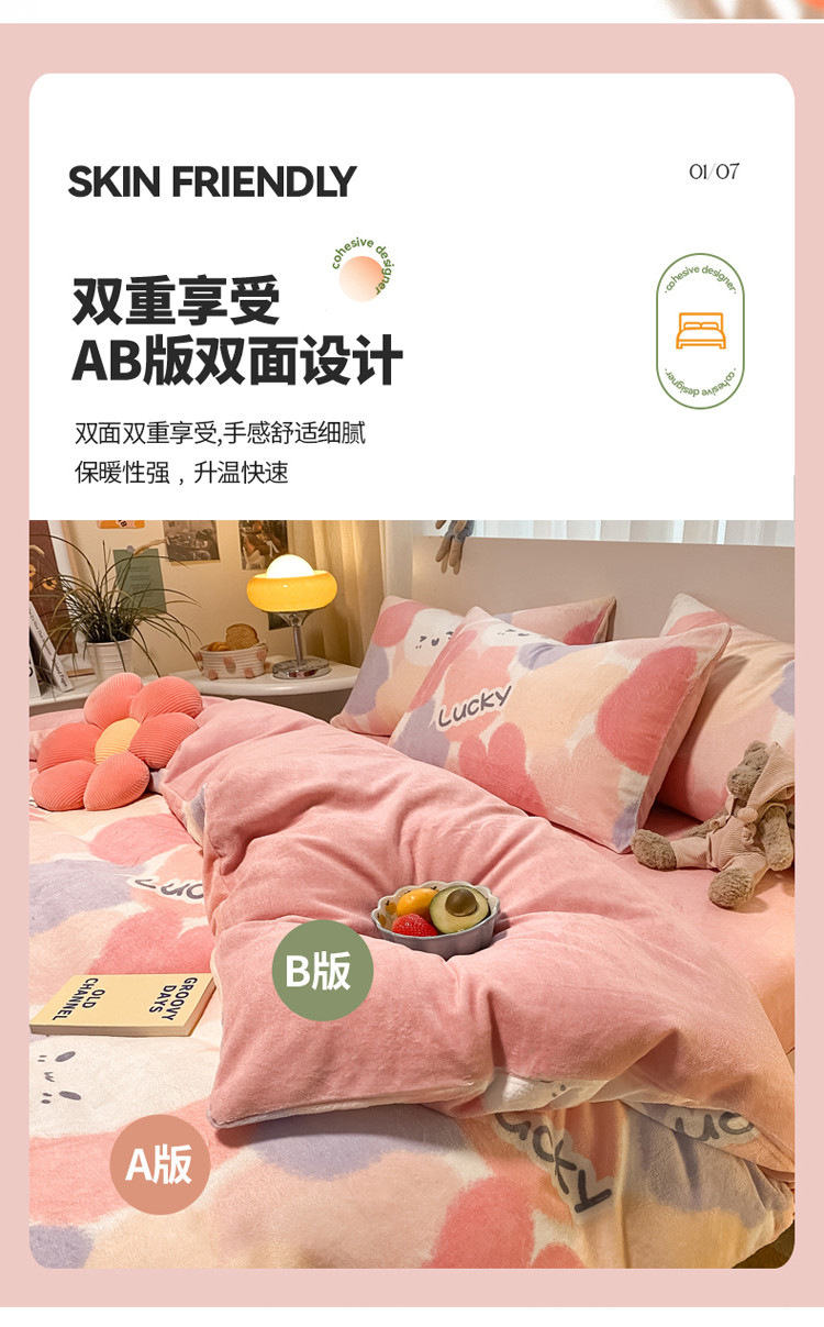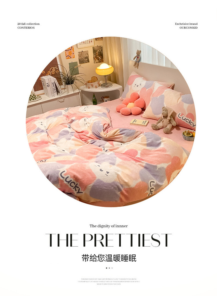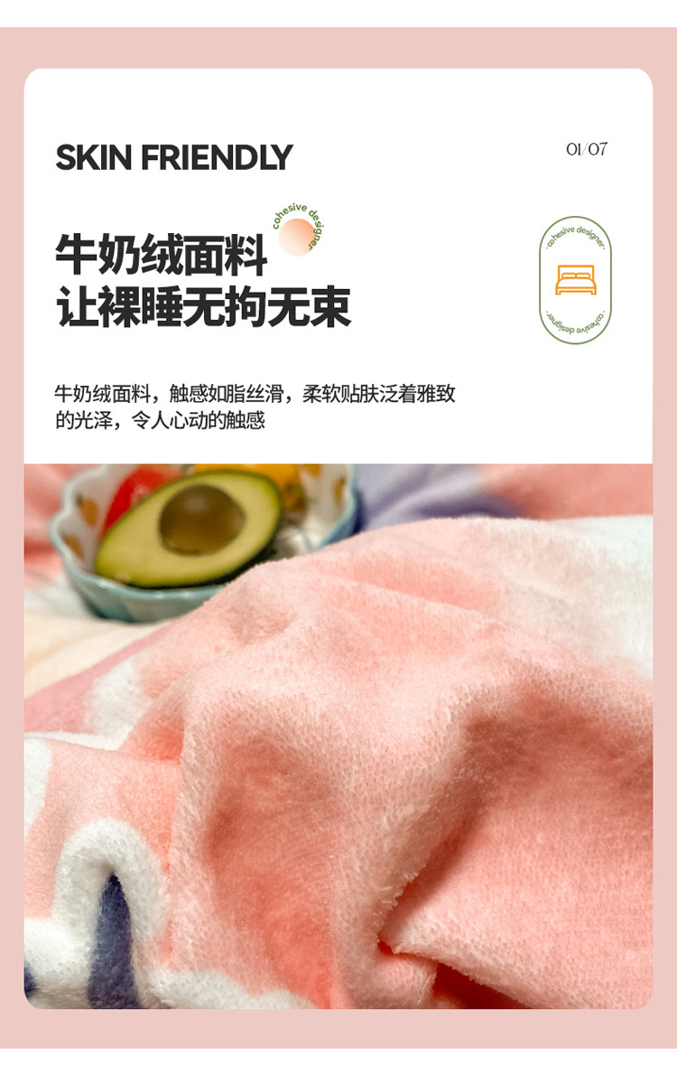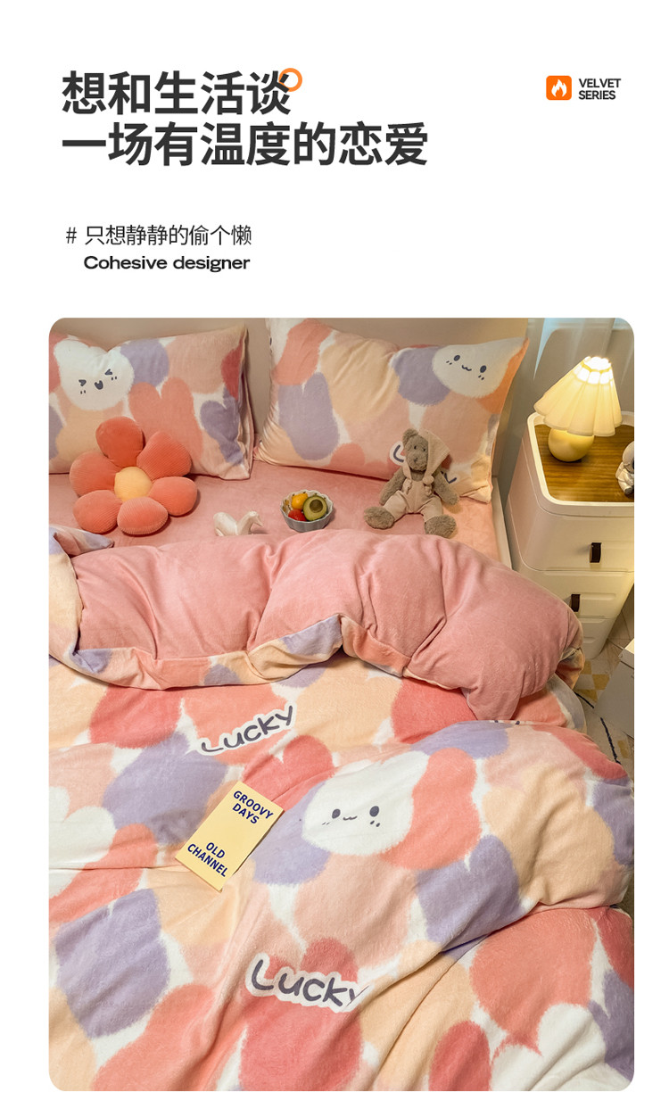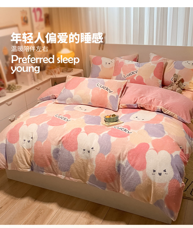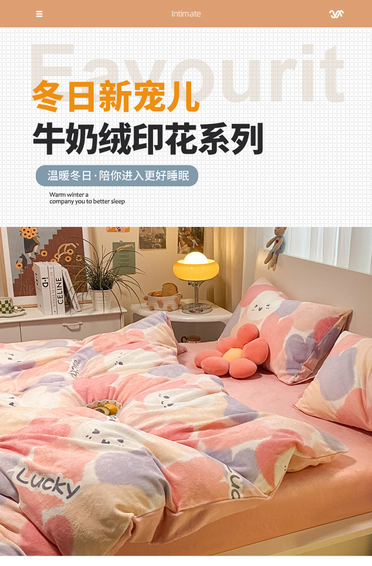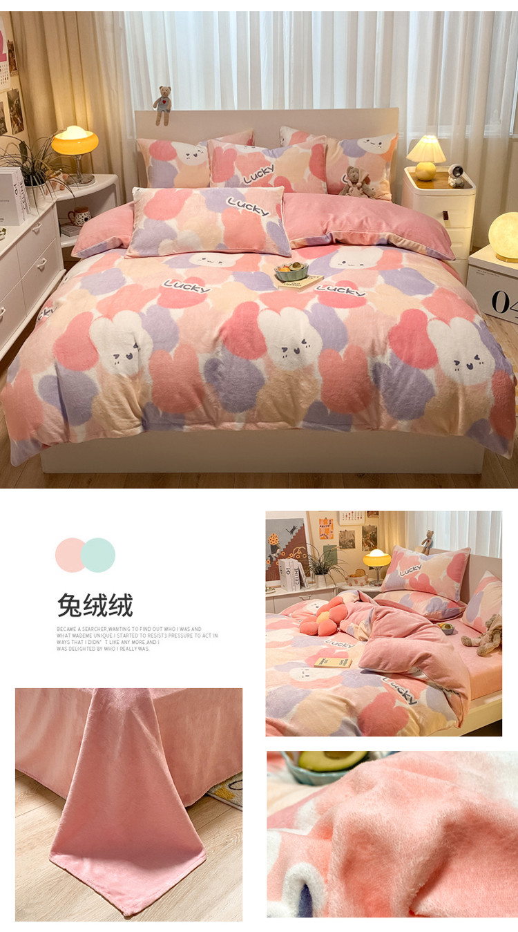 大渔生活 2024新款牛奶绒印花系列四件套 兔绒绒