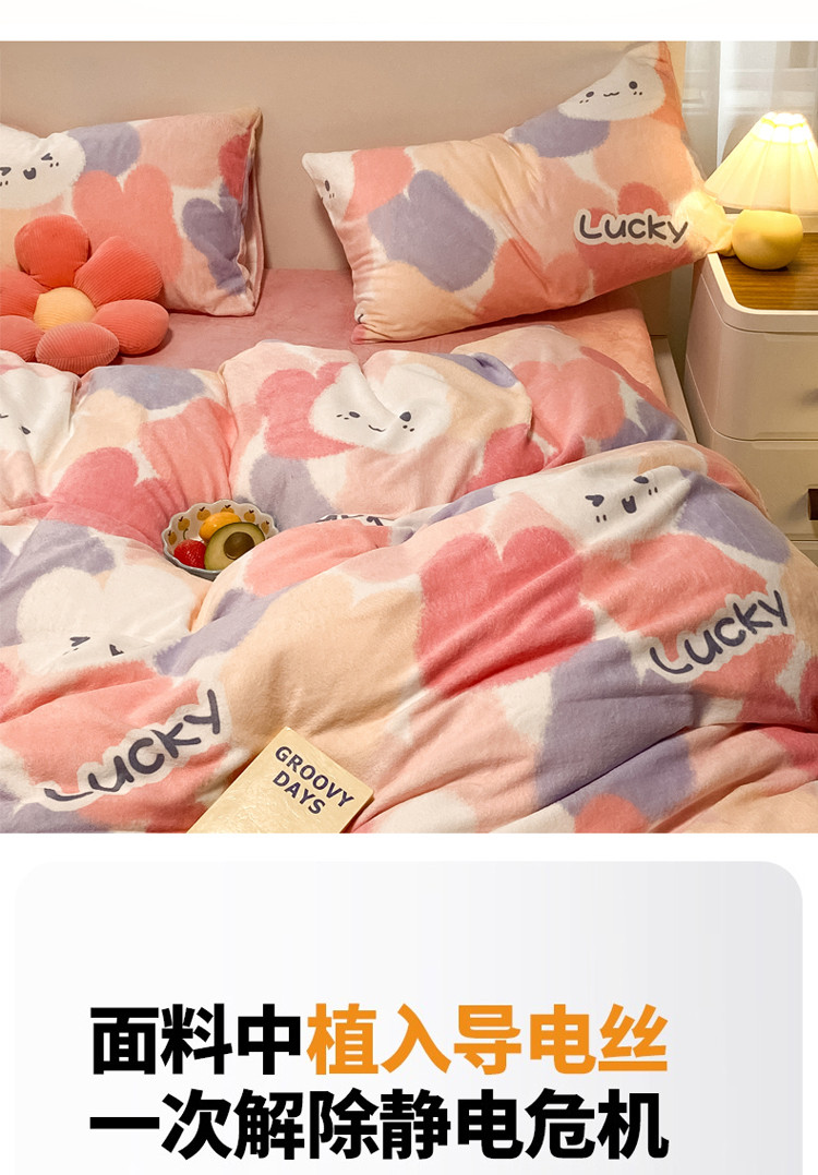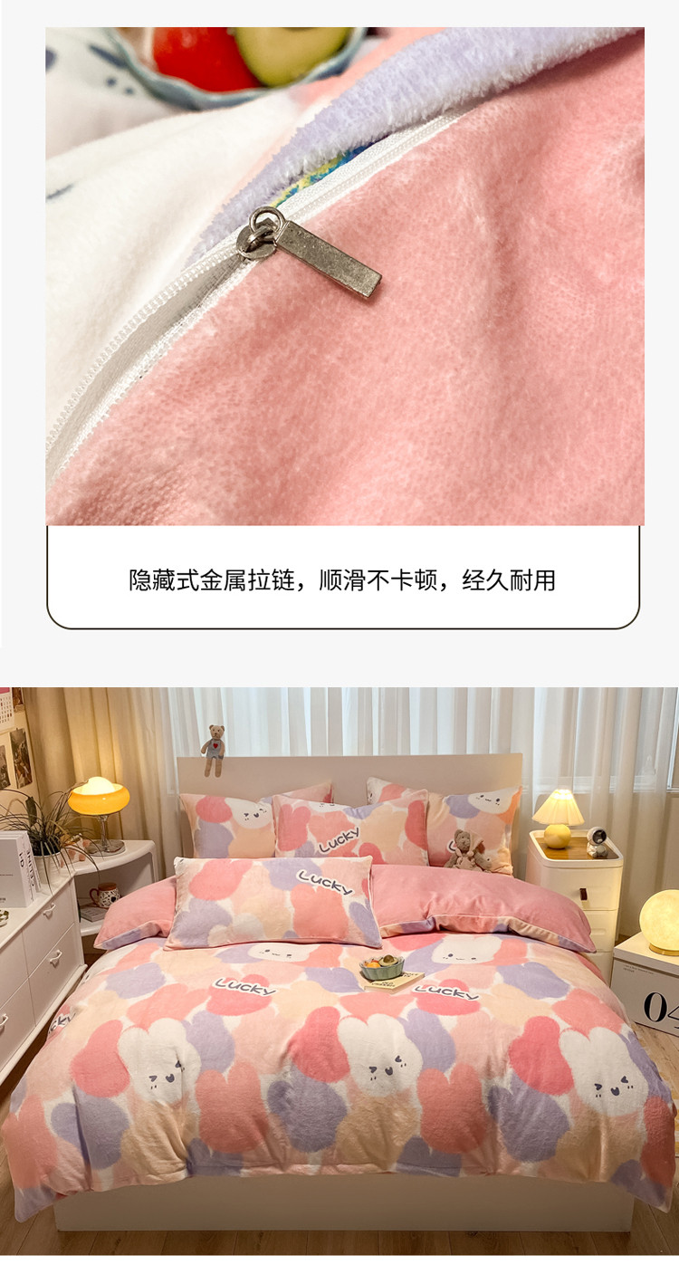 商品名称:大渔生活 2024新款牛奶绒印花系列四件套 兔绒绒