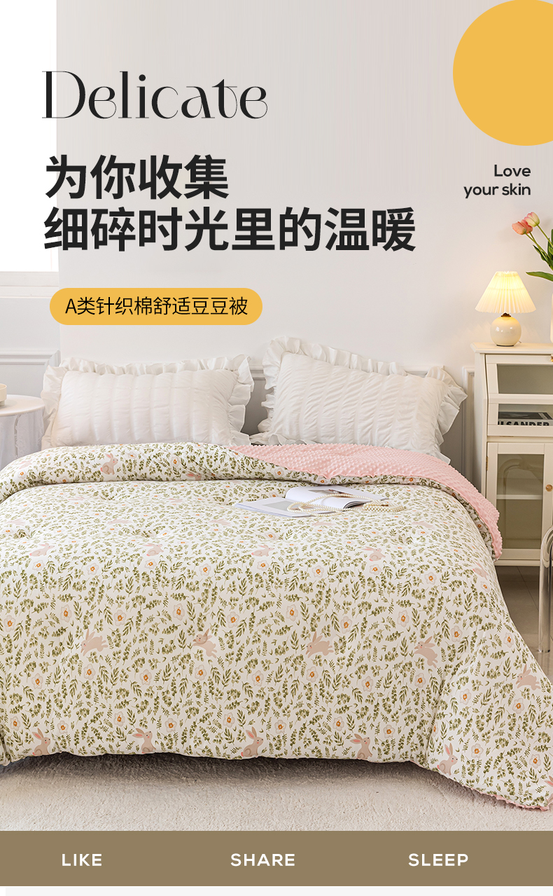 商品名称:亚龙工厂店 2023新款A类针织棉豆豆被 诗意花期