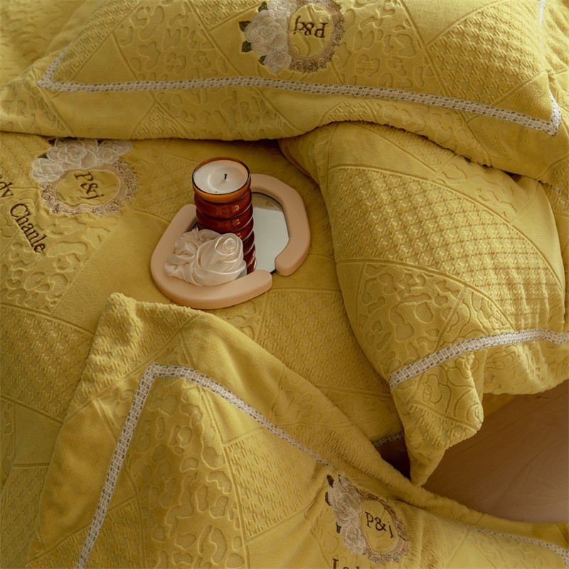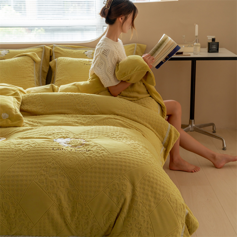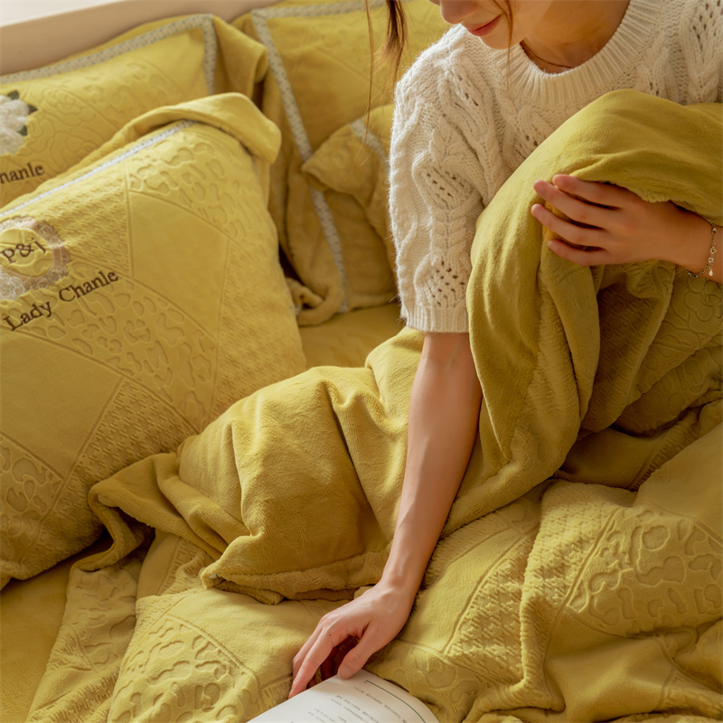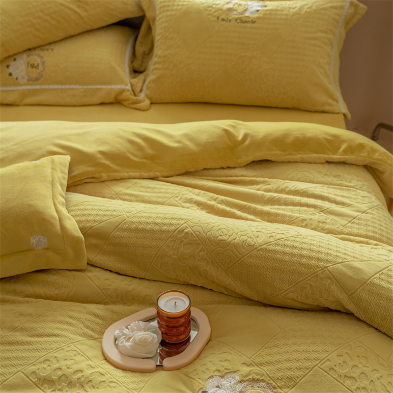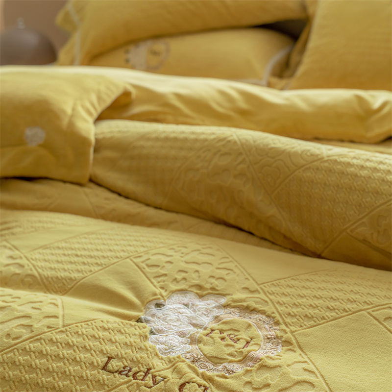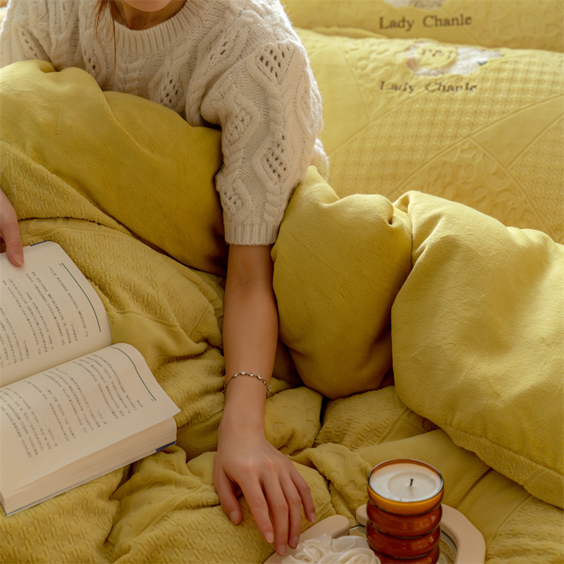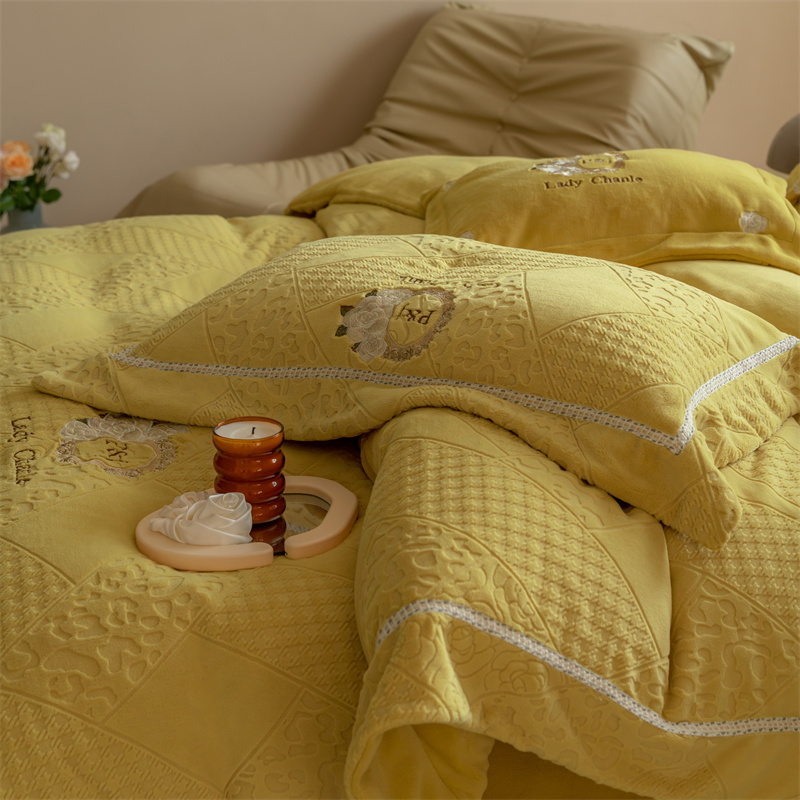 馨蕊家居 2022新款秋冬刺绣轻奢煦暖绒四件套-莫奈场景二 莫奈-氧气黄