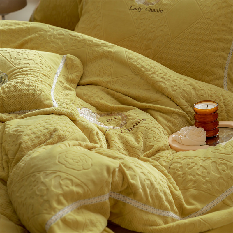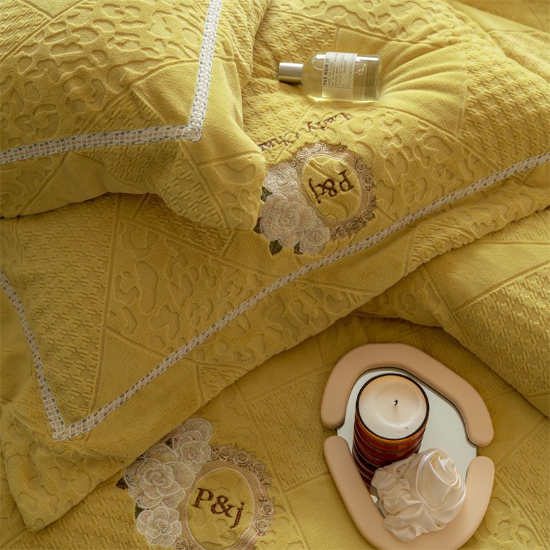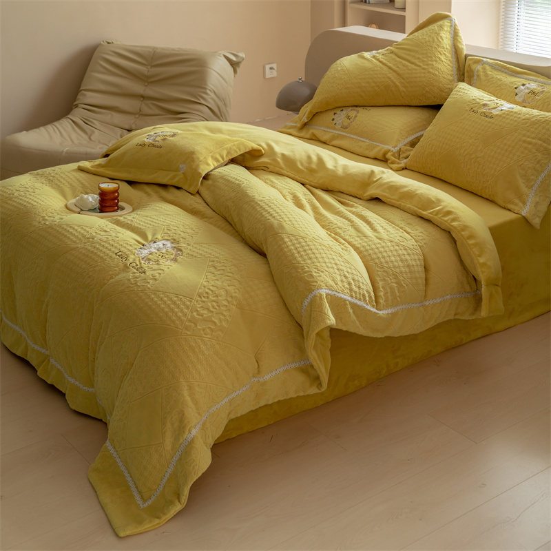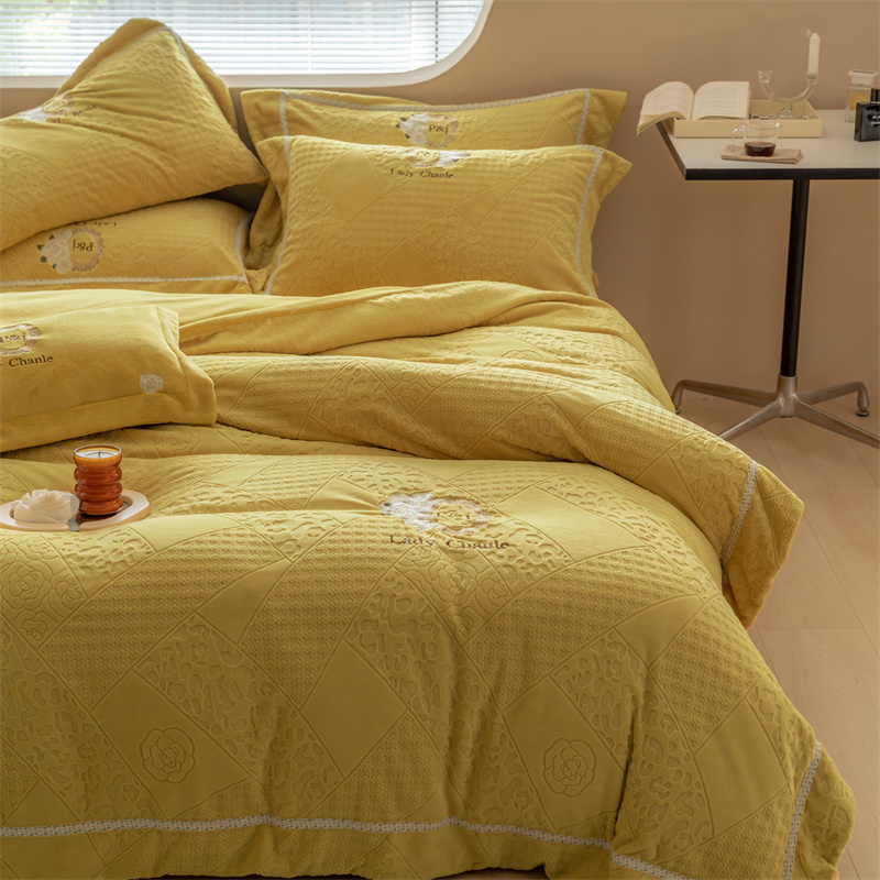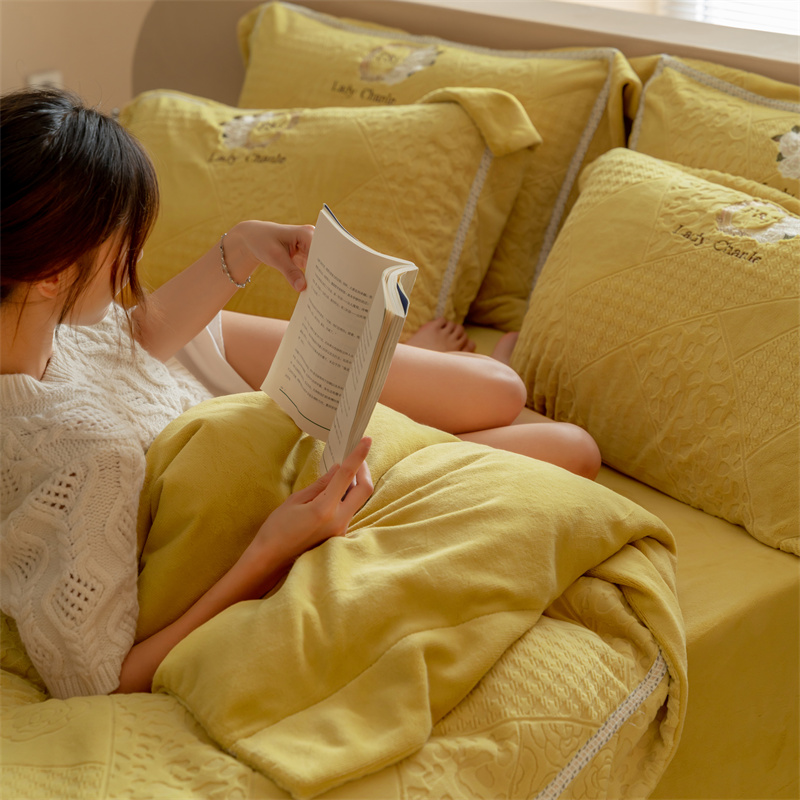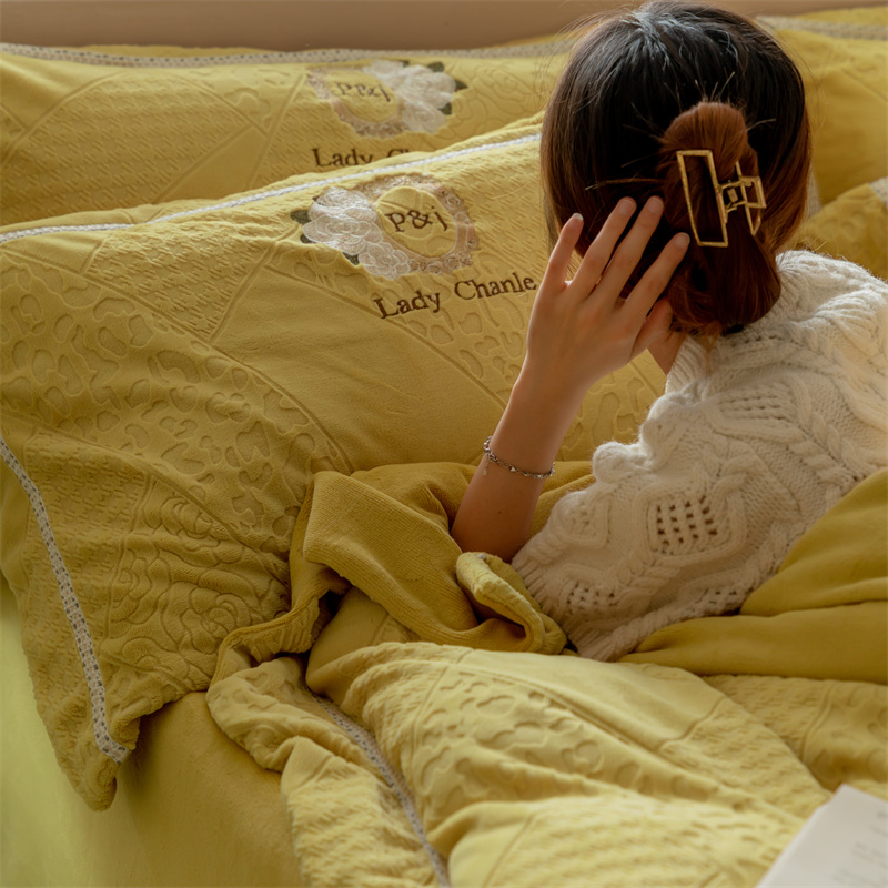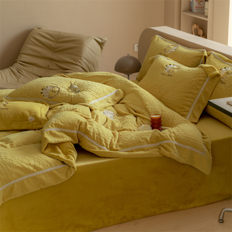 馨蕊家居 2022新款秋冬刺绣轻奢煦暖绒四件套-莫奈场景二 莫奈-氧气黄