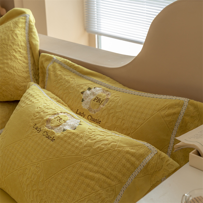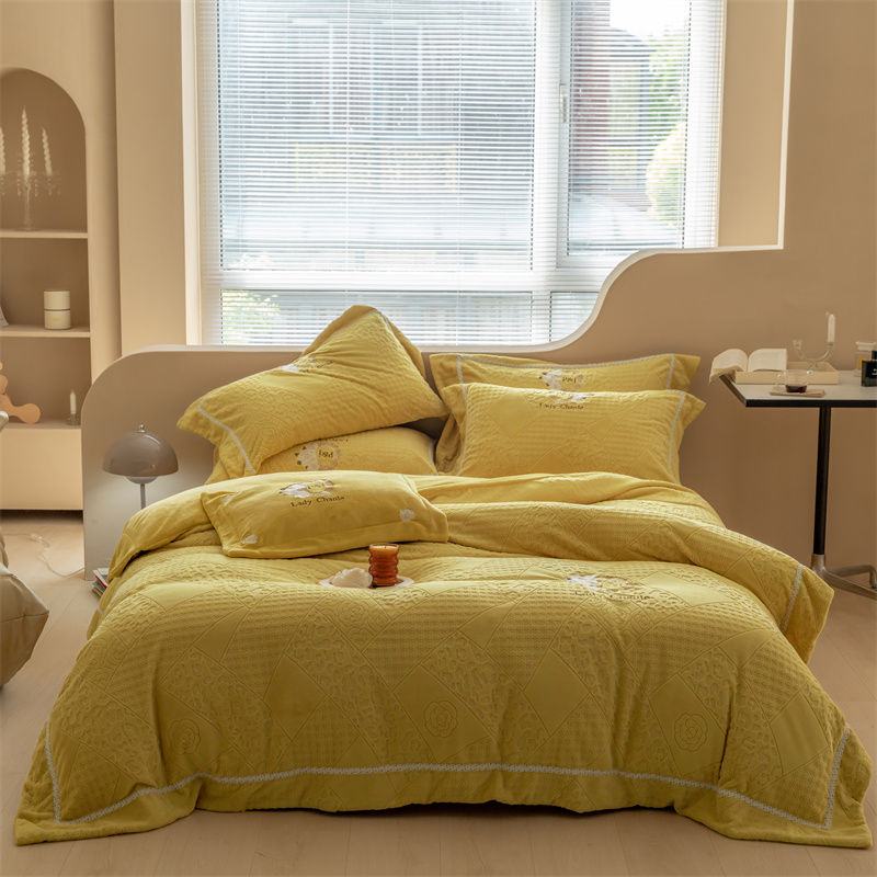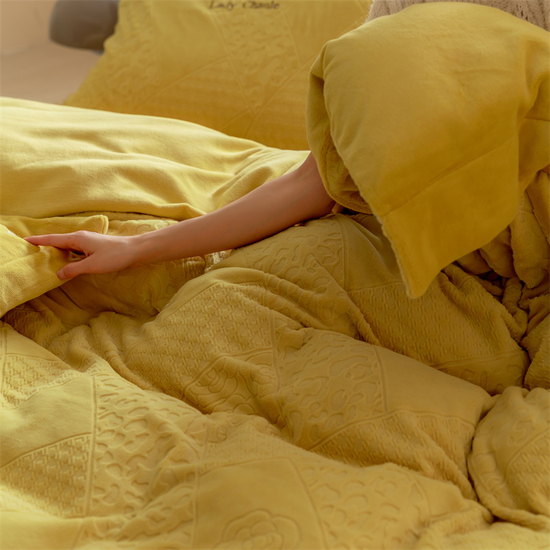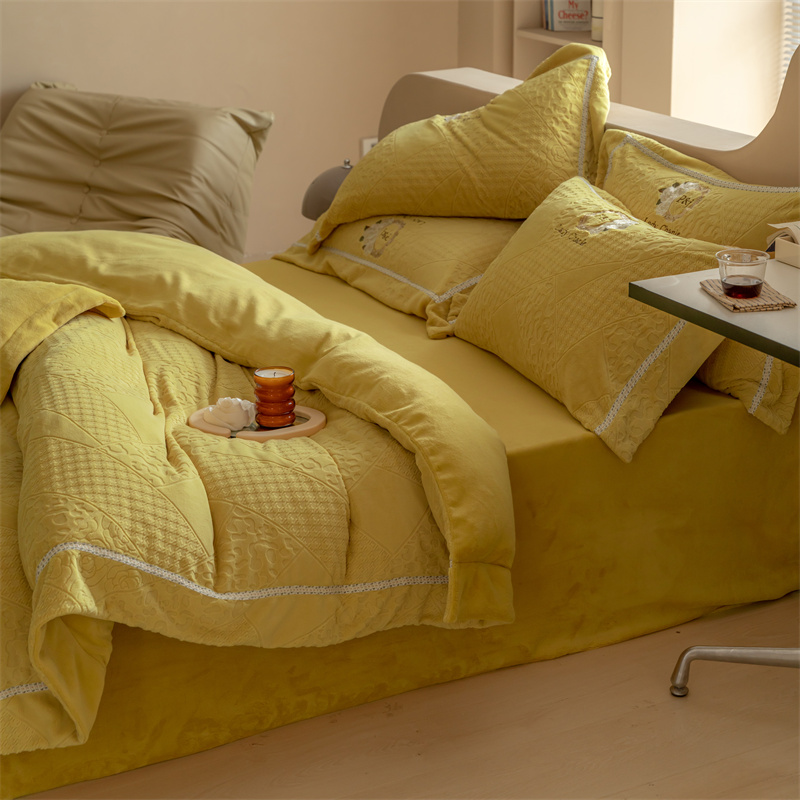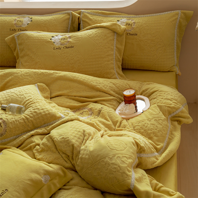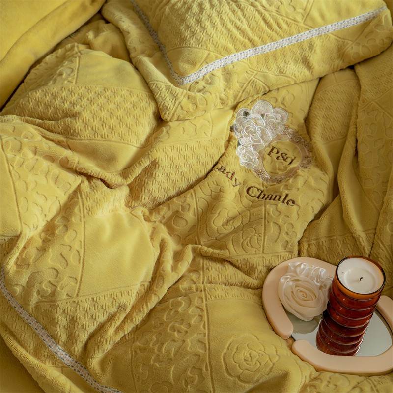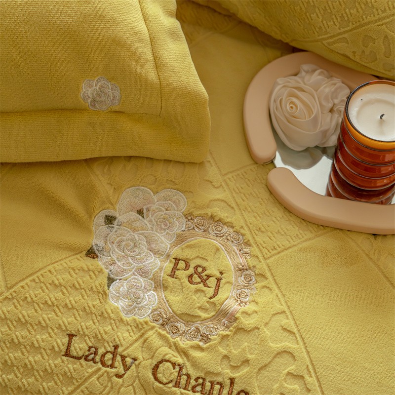 馨蕊家居 2022新款秋冬刺绣轻奢煦暖绒四件套-莫奈场景二 莫奈-氧气黄
