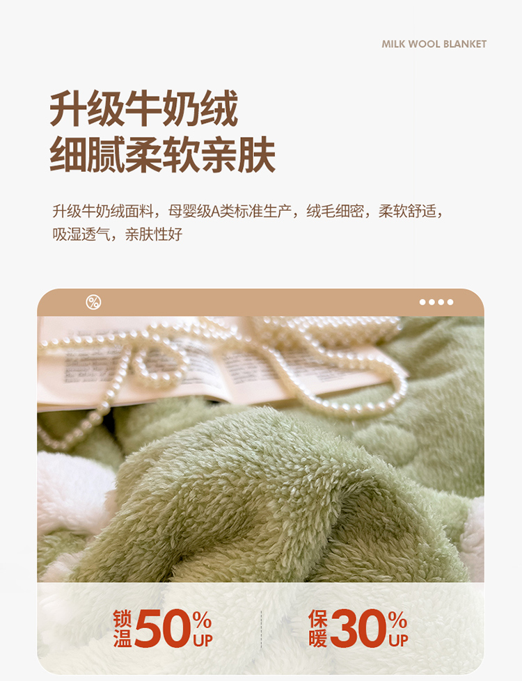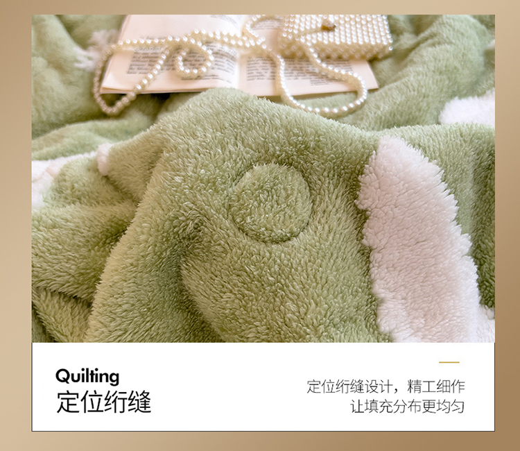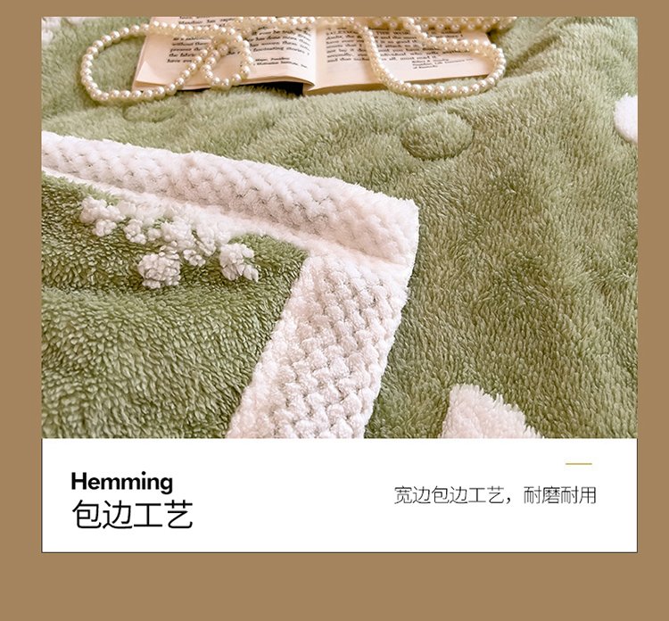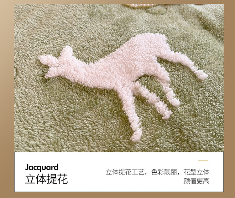 商品名称:慕木22新款保暖A类阳离子提花牛奶绒三层夹棉复合毯麋鹿森林绿